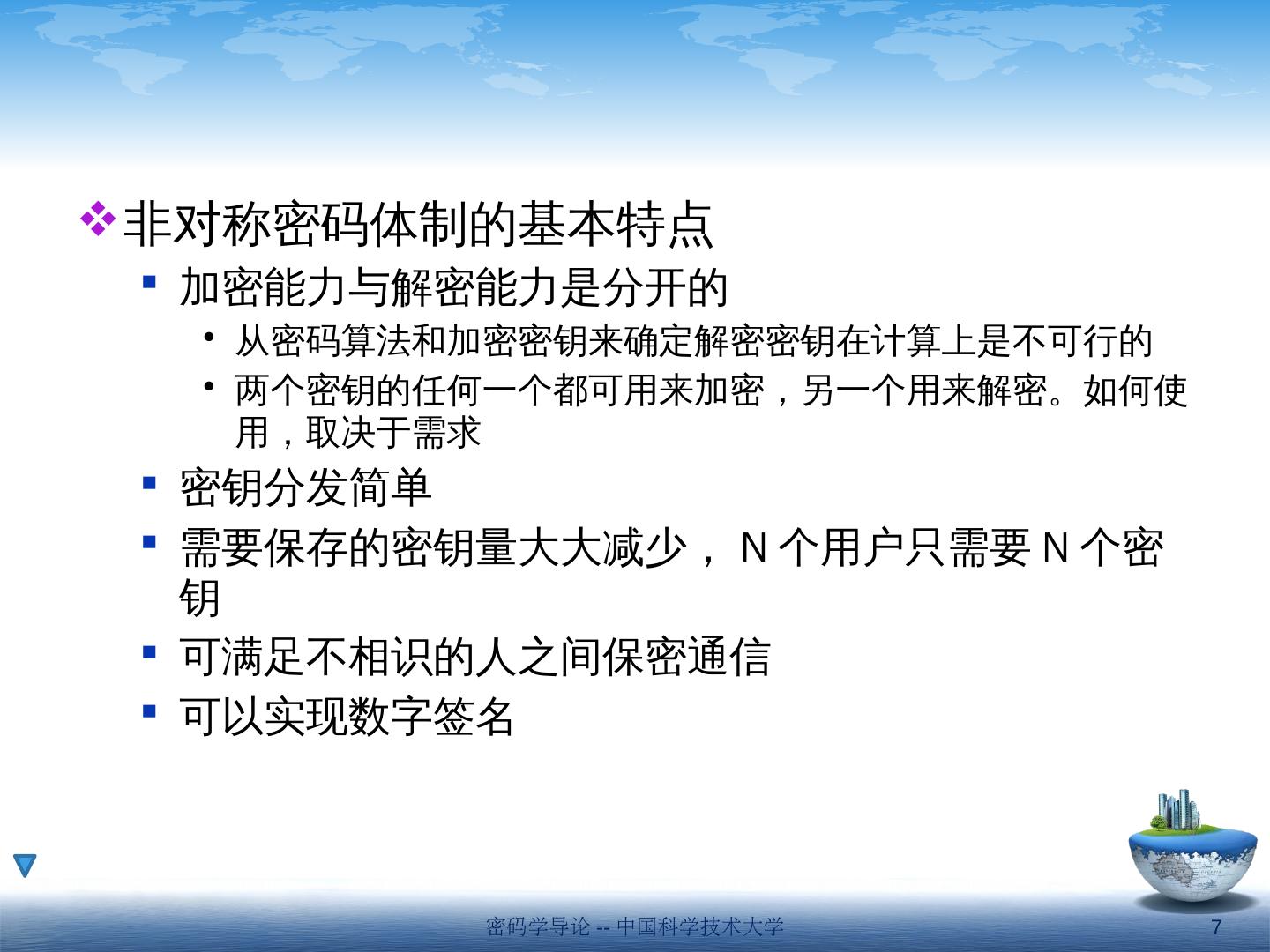 6 .对称和非对称密钥加密的主要区别 密码学导论 -- 中国科学技术大学 6