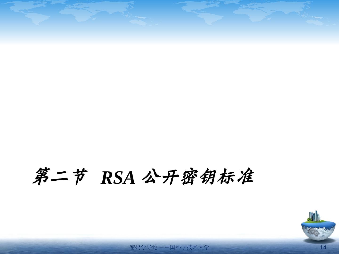 14 .第二节 RSA 公开密钥标准 密码学导论 -- 中国科学技术大学 14