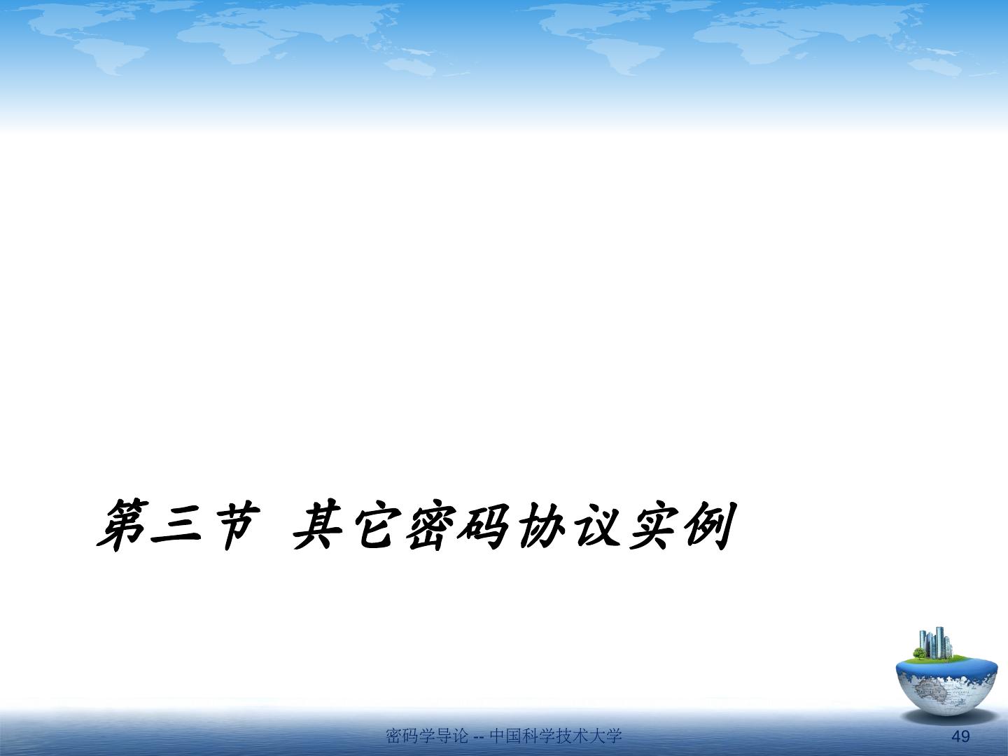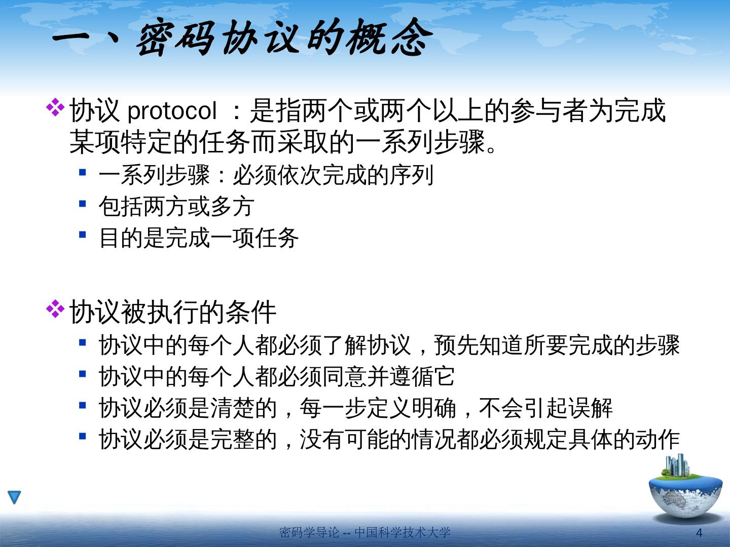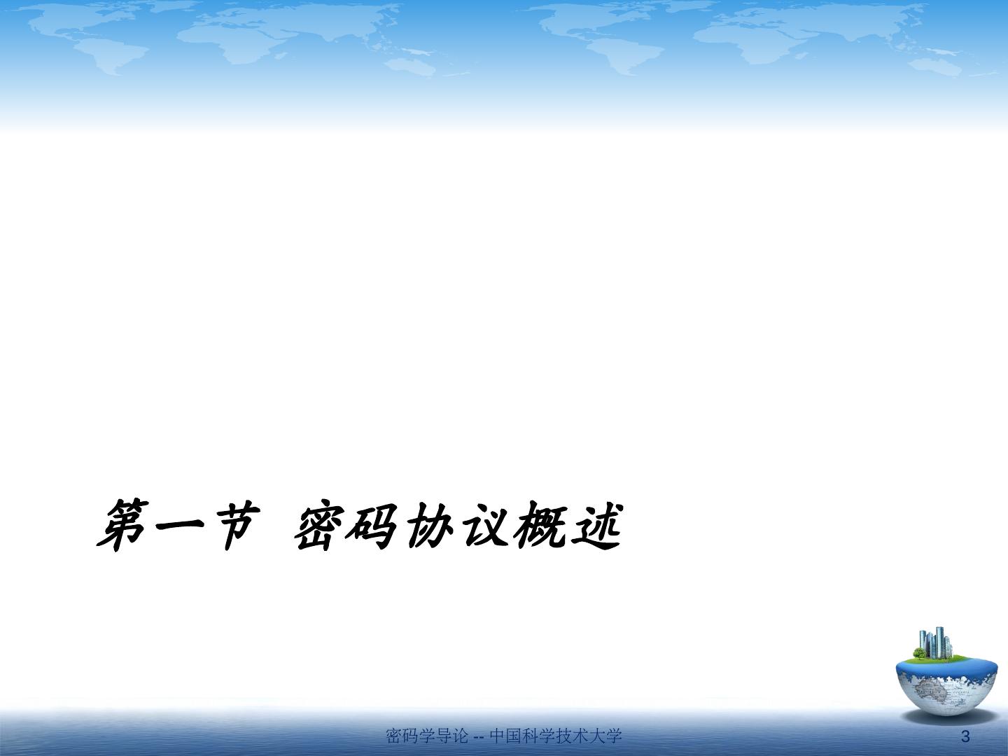 3 .第一节 密码协议概述 密码学导论 -- 中国科学技术大学 3