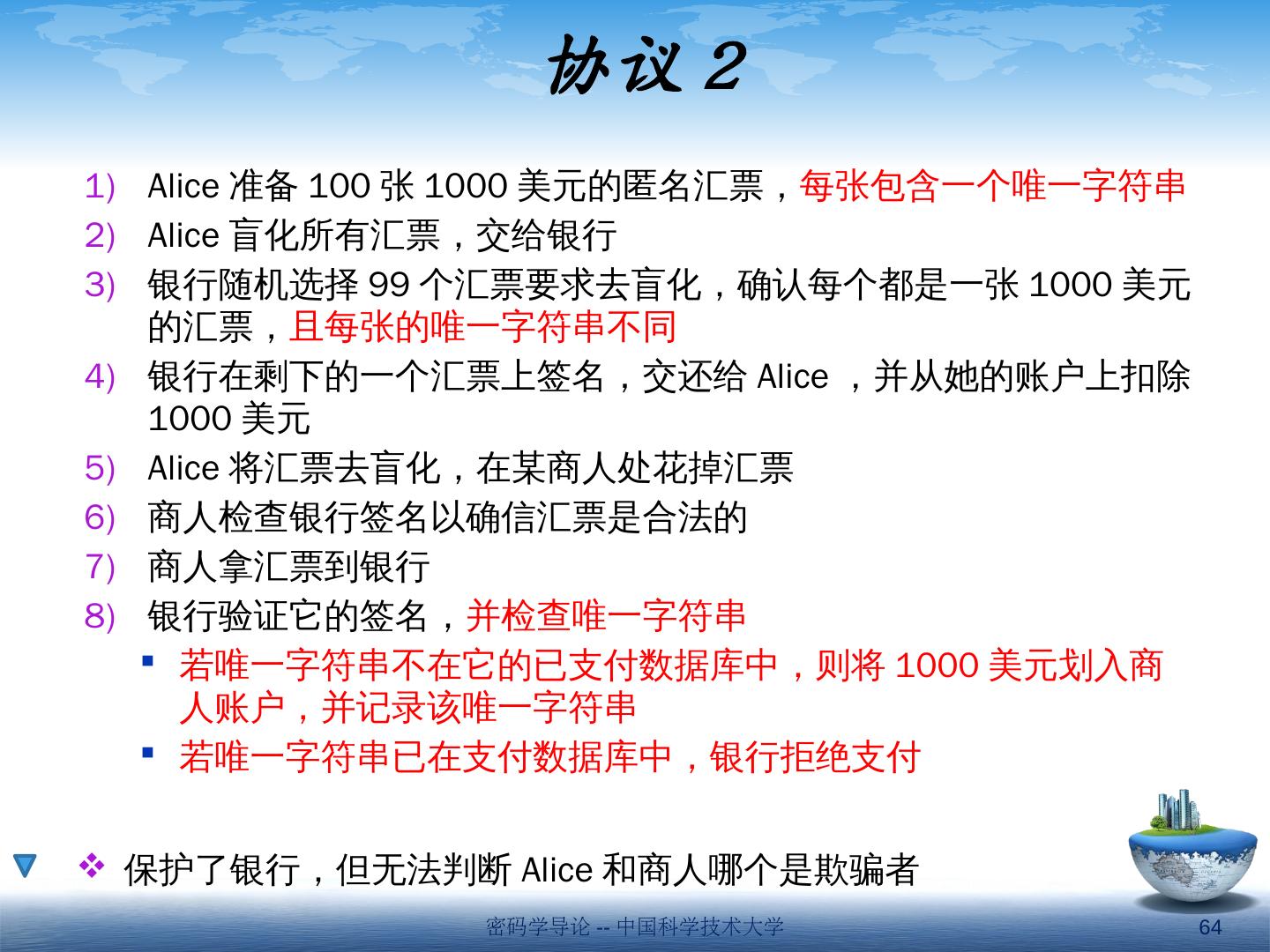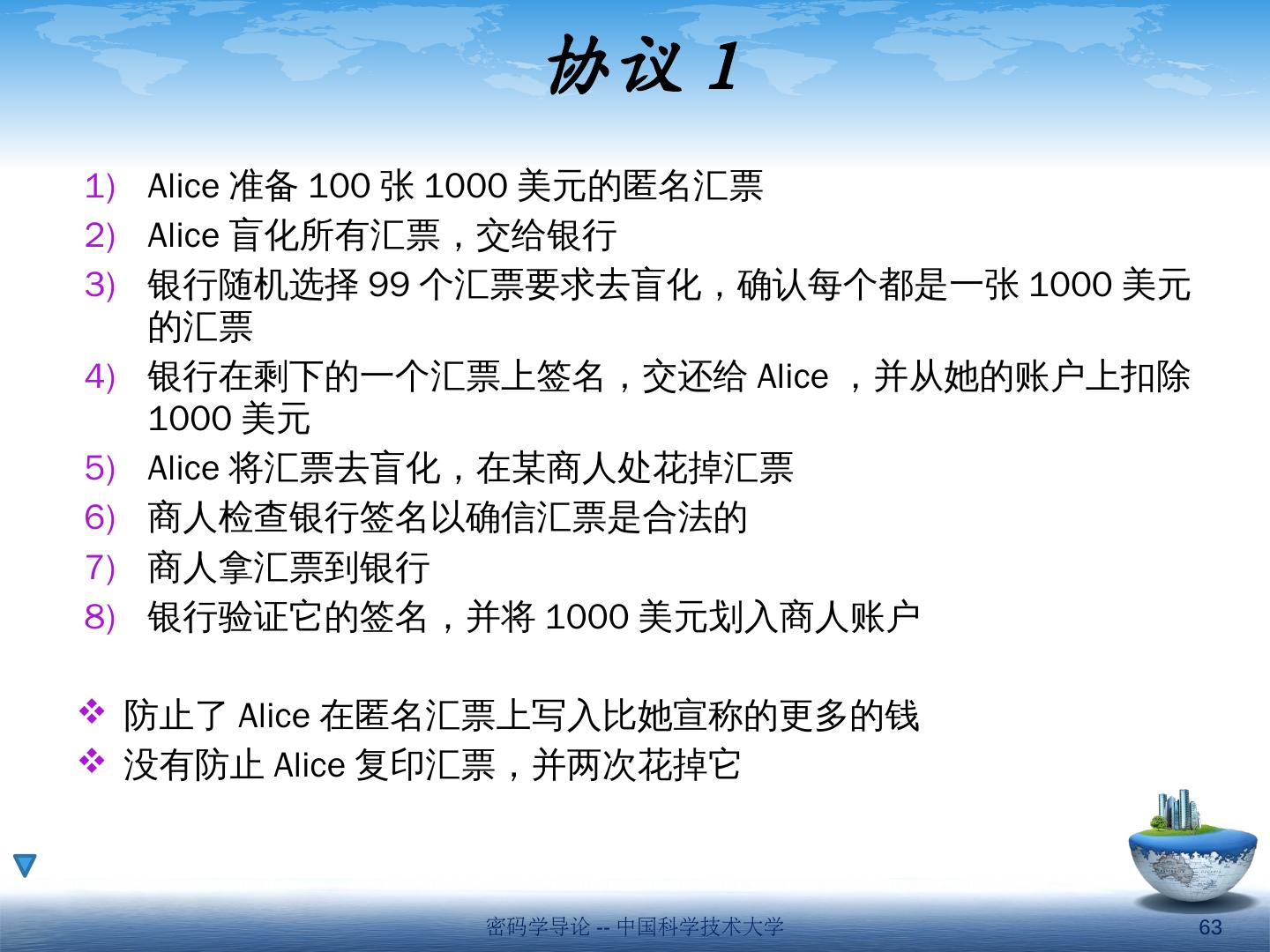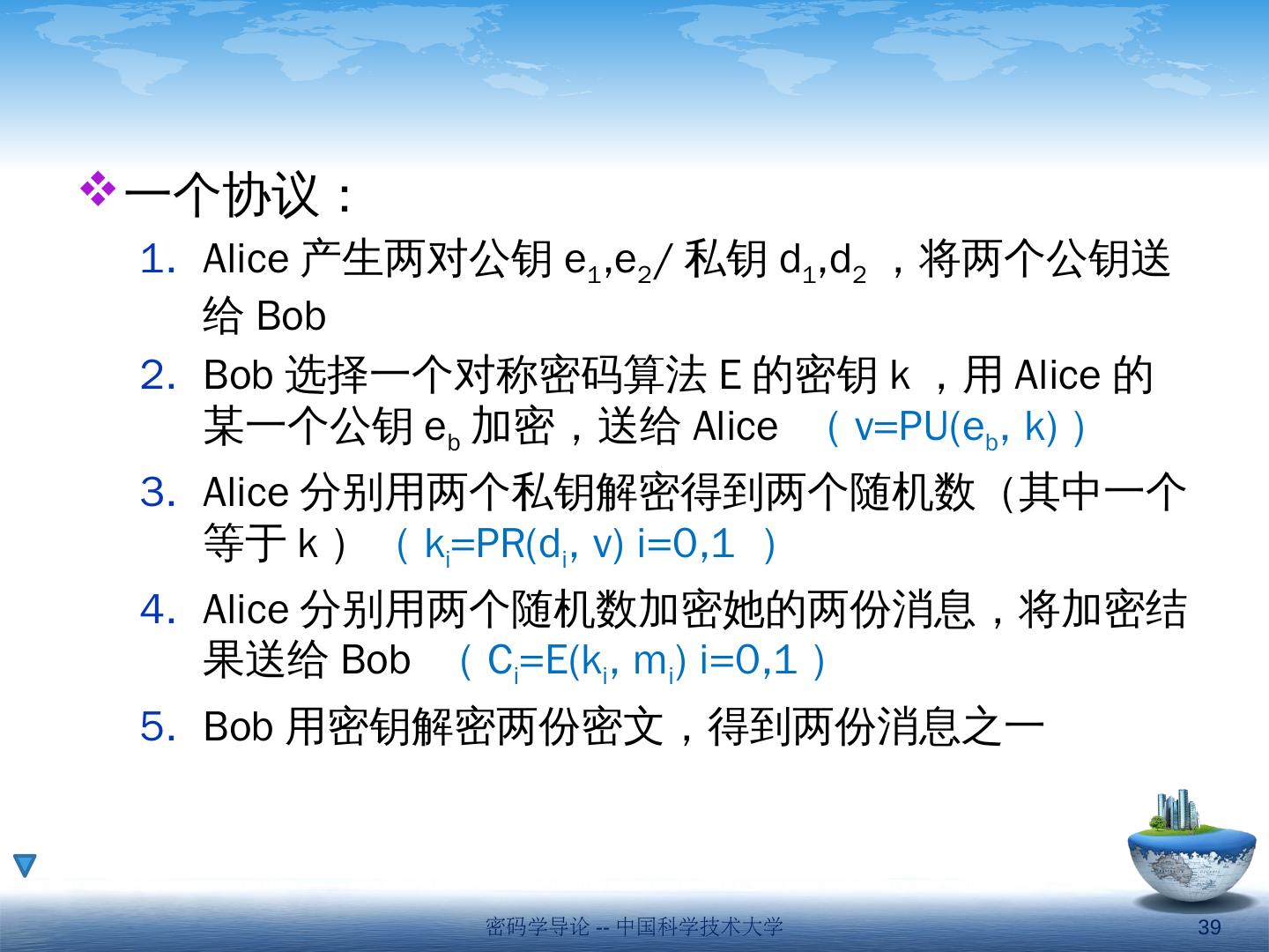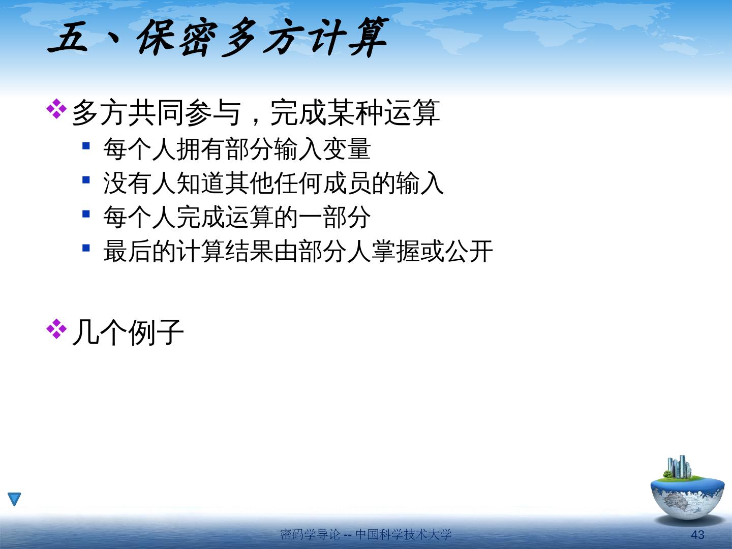 3 .第一节 密码协议概述 密码学导论 -- 中国科学技术大学 3