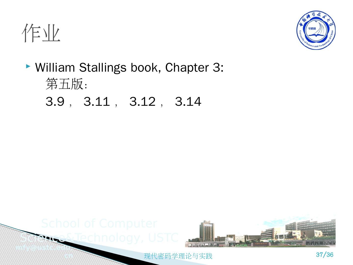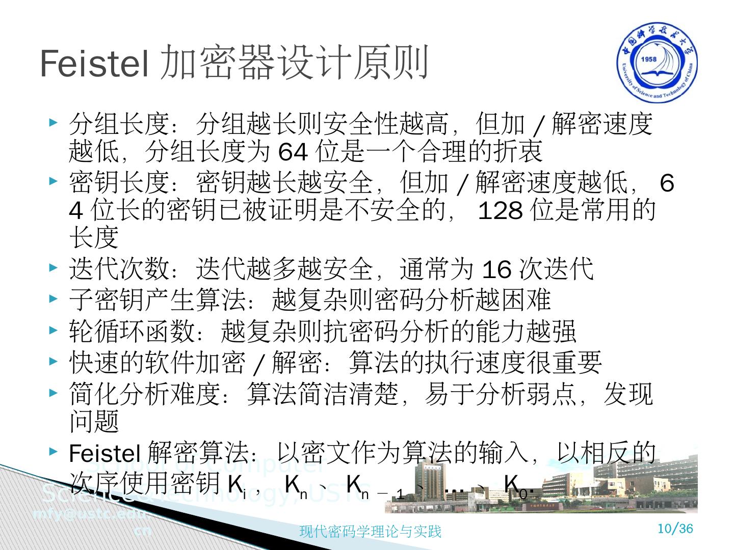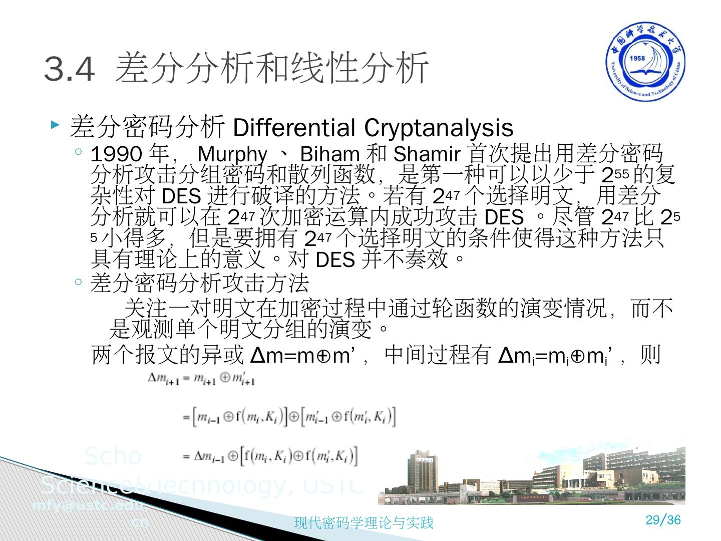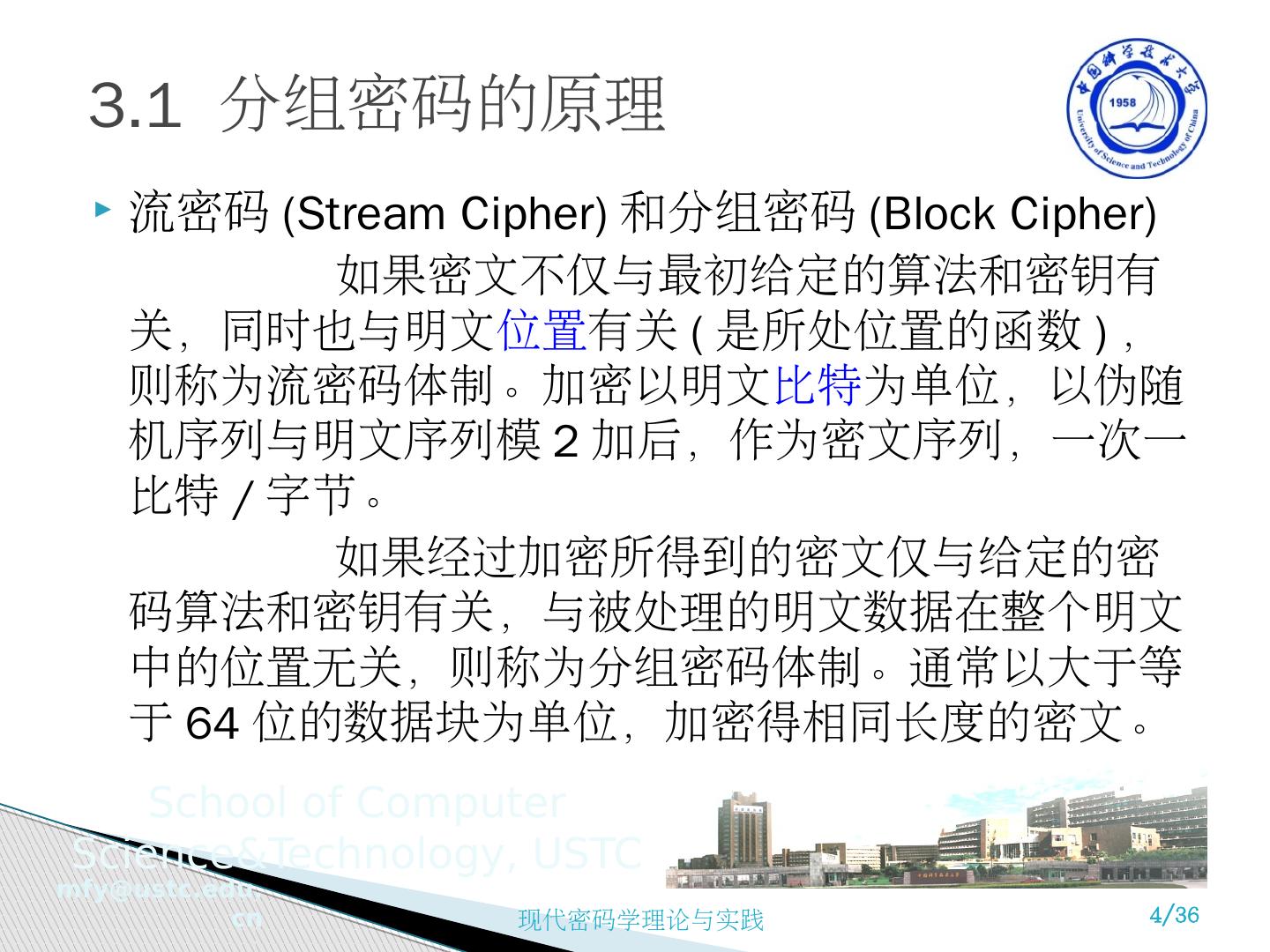 1 .现代密码学理论与实践 第 3 章 分组密码和数据加密标准 苗 付友 mfy@ustc.edu.cn http ://staff.ustc.edu.cn/~mfy 2018 年 9 月