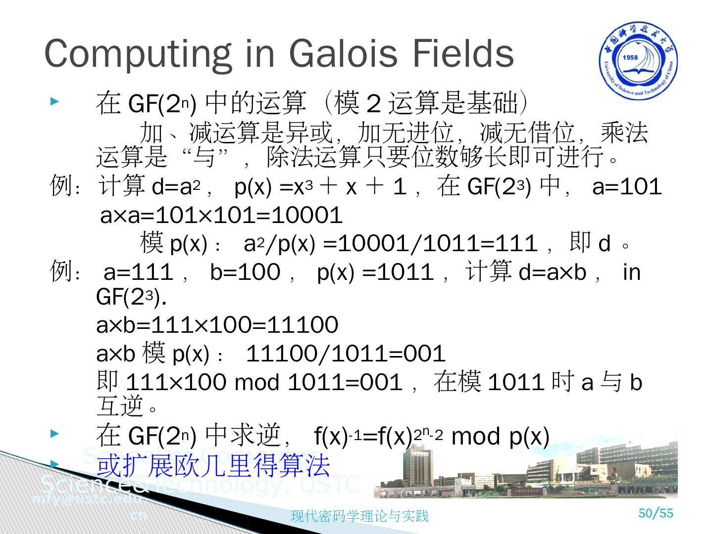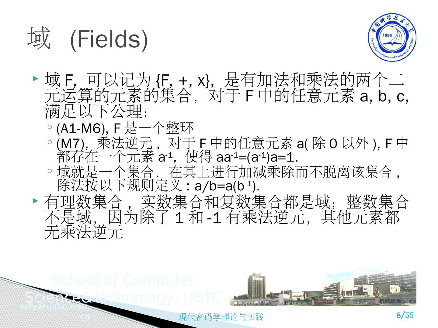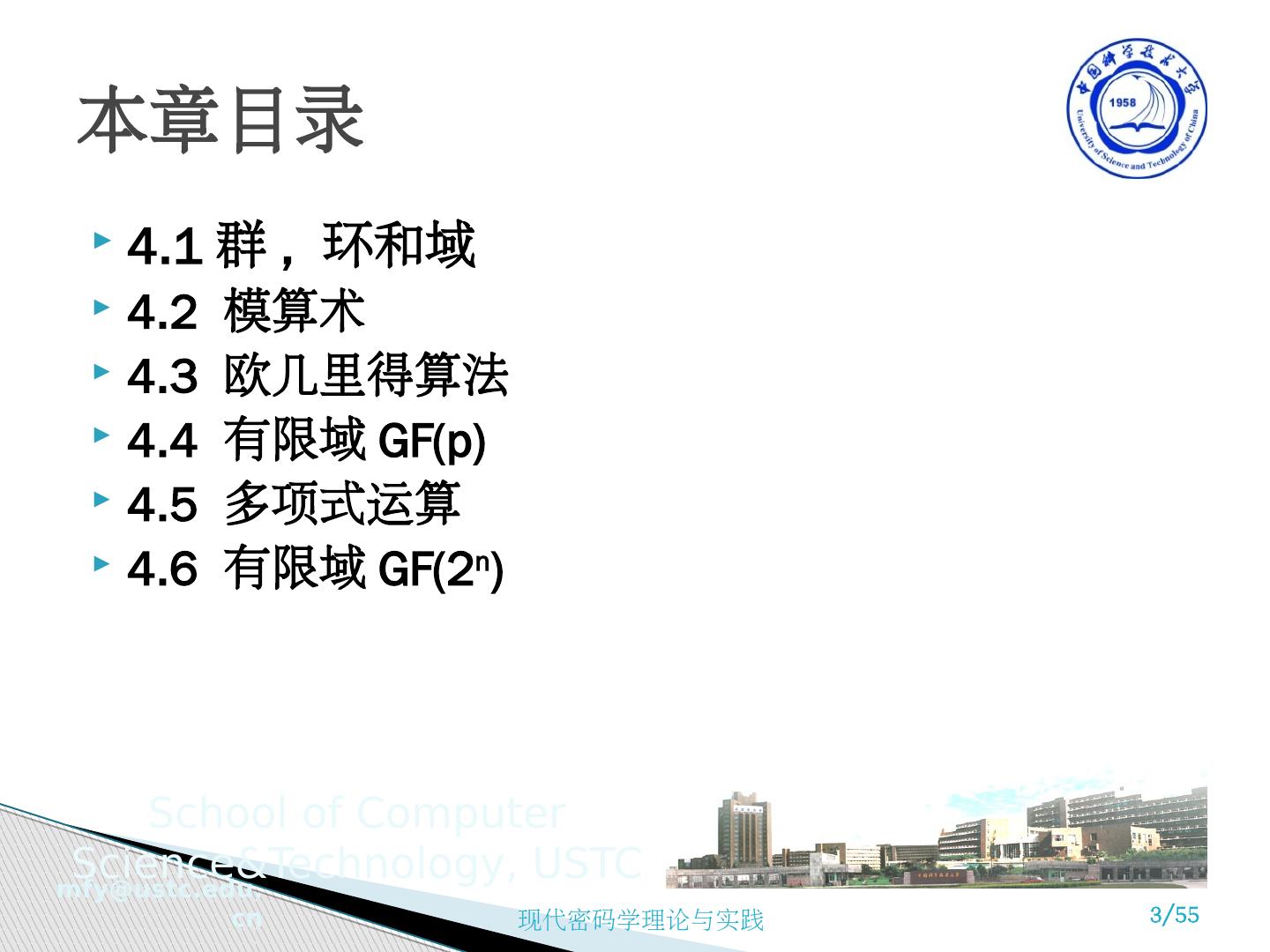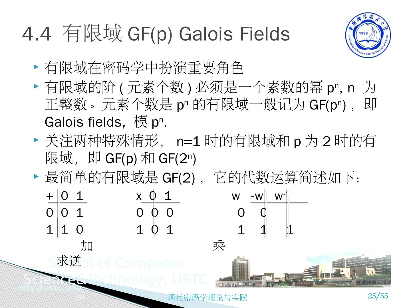 1 .现代密码学理论与实践 第 4 章 有限域 苗付友 mfy@ustc.edu.cn staff.ustc.edu.cn/~ mfy 2016 年 10 月