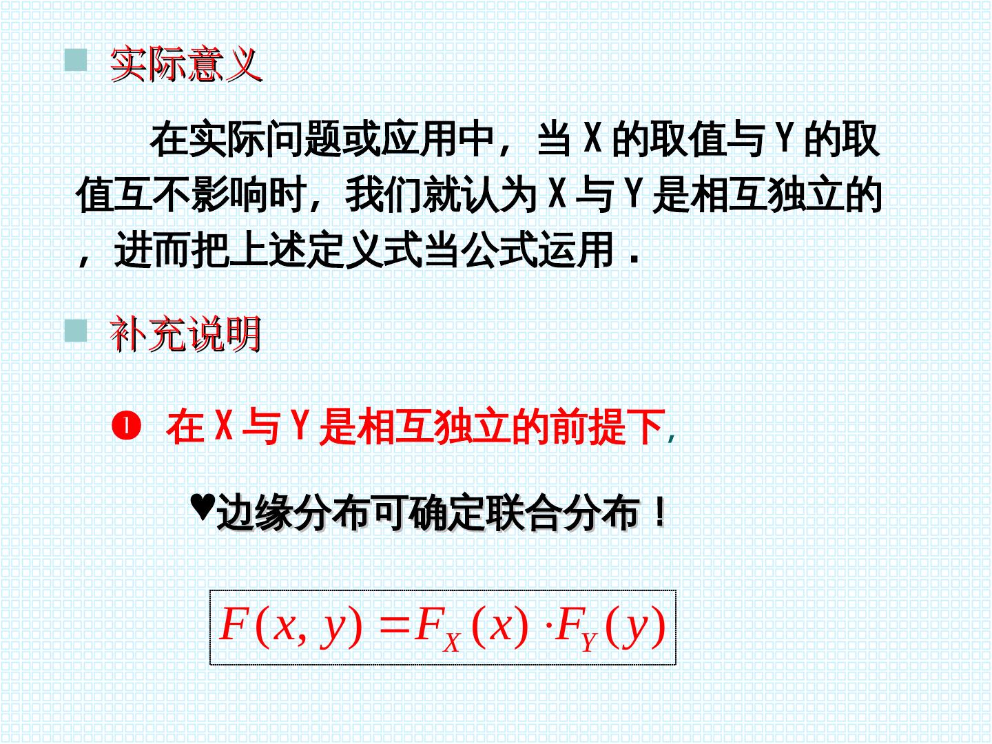 9 .§5.1 二维随机变量及分布函数 二、联合分布函数 性质 注:任何一个二维联合分布函数 F(X,Y)x,y) 必具有以 上五条基本性质,还可证明具有以上五条性质的 二元函数 F(X,Y)x,y) 一定是某个二维随机变量的分布 函数 . 即这五条性质是判定一个二元函数是否为 某个随机变量的分布函数的充要条件