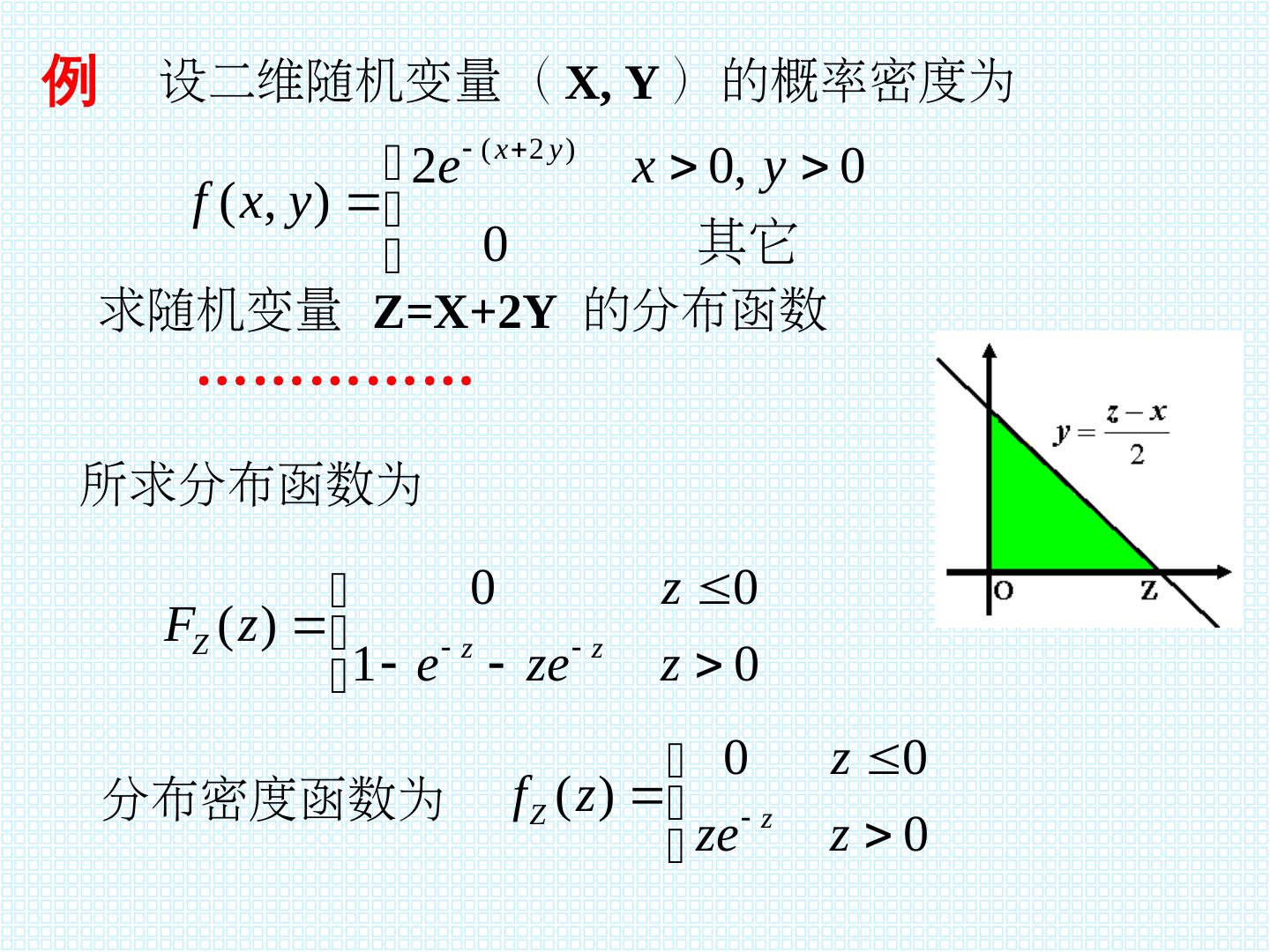 21 . 6.2 二维随机变量的函数的分布 一、 (X,P(XY)Y=X-1; (2)Y=-2X; (3)Y=X 为二维离散型随机变量 设 (X,P(XY)Y=X-1; (2)Y=-2X; (3)Y=X 为二维离散型随机变量 ,P(X 其分布律为 pij=P(X=xi,P(XY=yj)Y=X-1; (2)Y=-2X; (3)Y=X (i,P(Xj=1,P(X2,P(X…)Y=X-1; (2)Y=-2X; (3)Y=X g(x,P(Xy)Y=X-1; (2)Y=-2X; (3)Y=X 是一个二元函数, Z=g(X,P(XY)Y=X-1; (2)Y=-2X; (3)Y=X 是二维随机变量 (X,P(XY)Y=X-1; (2)Y=-2X; (3)Y=X 的函数,则随机变量 Z 的分布律为: P(Z=g(xi,P(Xyj)Y=X-1; (2)Y=-2X; (3)Y=X)Y=X-1; (2)Y=-2X; (3)Y=X=pij (i,P(Xj=1,P(X2,P(X…)Y=X-1; (2)Y=-2X; (3)Y=X 注 : g(xi,P(Xyj)Y=X-1; (2)Y=-2X; (3)Y=X 取相同值对应的那些概率要合并相加