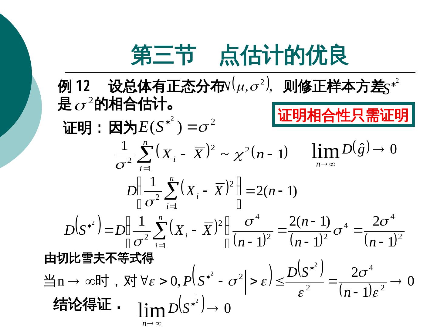 12 . 第一节 点估计问题 例如在例 4 中 1.90 P X 1.90 1 μ 的估计为 X ,σ 的估计为 S , 则 η 的估计是 1.90 X P X 1.90 1 说明 : S 1. 给出 , 等同于给出 θ 的一种估计规则 ( 估计程 的估计量 ˆ . 序 ), 有了观 察数据 , 如何算出估计值 2. 估计量不必唯一 , 同一参数可以构造k个统计量不同的统计量用以估计 . 因此有一个估计量好环的比较——评价估计量好环的准则 .