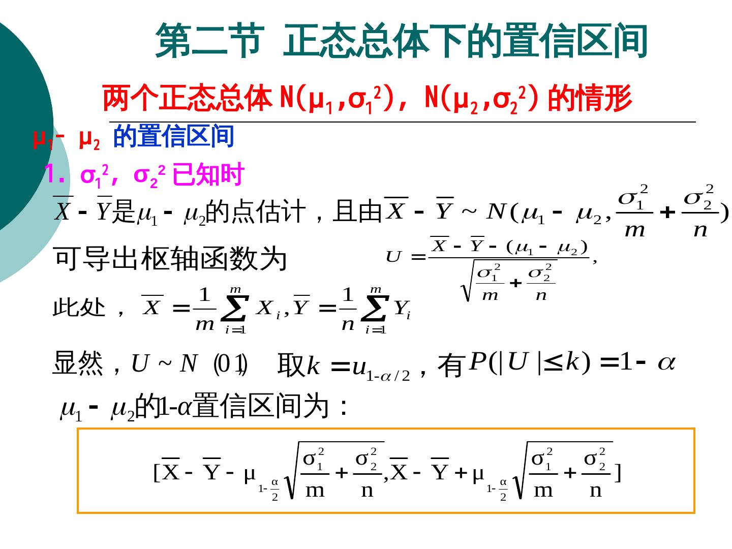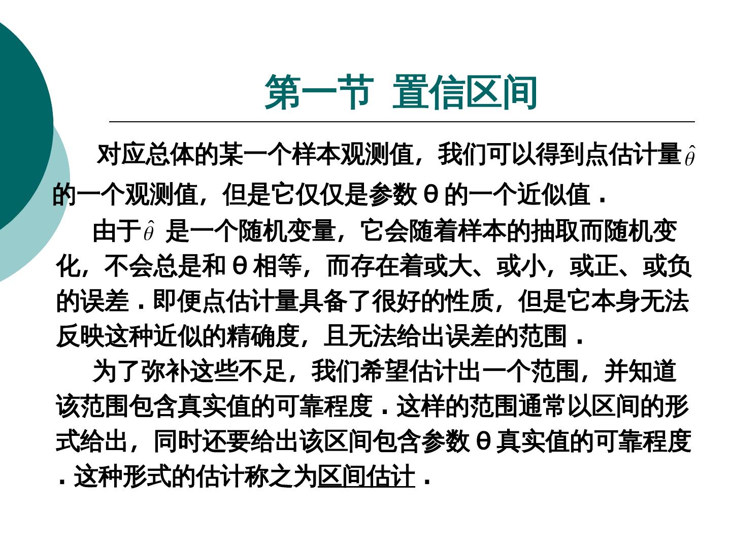 1 .第十一章 区间估计 置信区间 正态总体下的置信区间