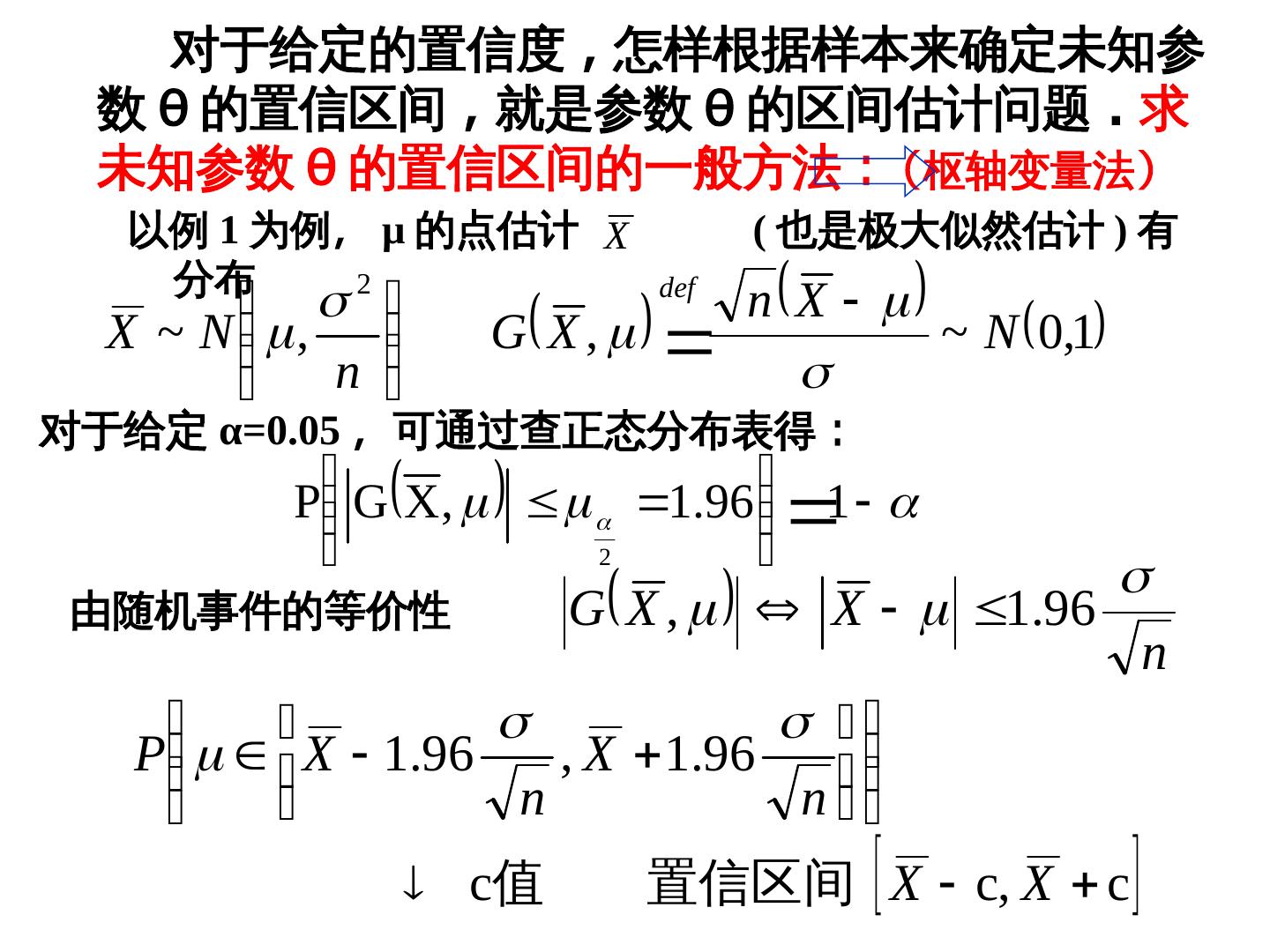 10 .G X , 称为枢轴函数,它有以下两个特点: 1. 枢轴函数除含有关心的未知参数 μ 外,不再有 其他未知参数; 2. 枢轴函数的分布式完全已知的或完全可以确定。