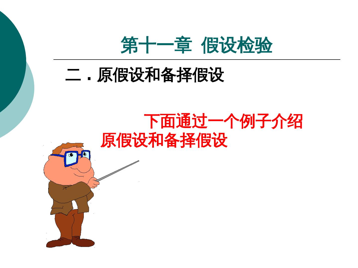 4 . 第十一章 假设检验 二 . 原假设和备择假设 下面通过一个例子介绍 原假设和备择假设