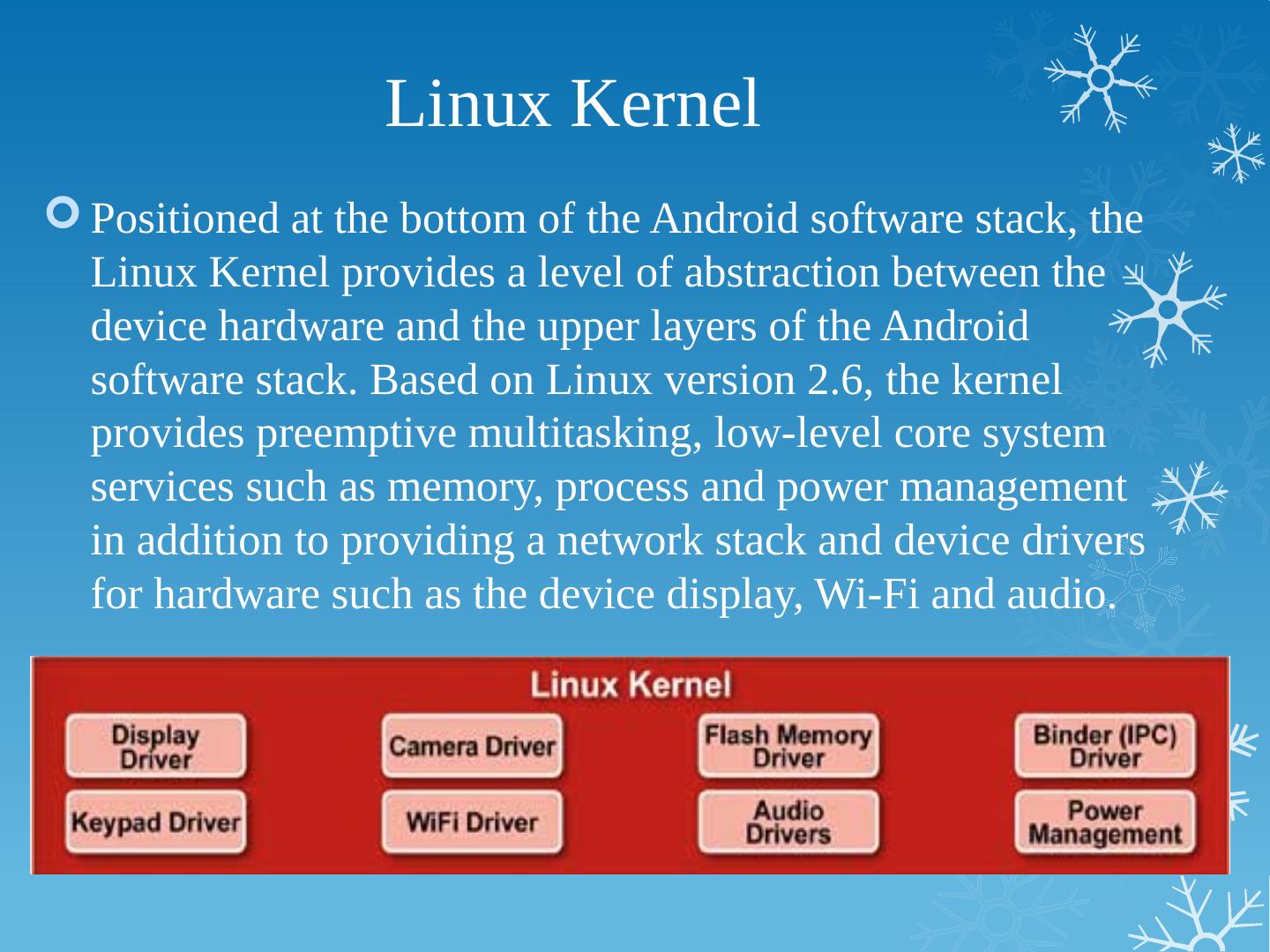 Positioned at the bottom of the Android software stack, the Linux Kernel provides a level of abstraction between the device hardware and the upper layers of the ...
