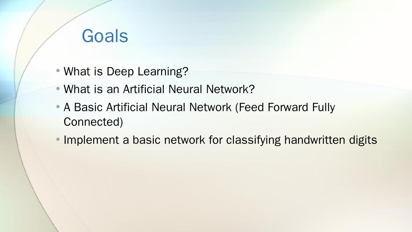 Deep Learning With TensorFlow. An Introduction To Artificial Neural Networks. By Brian Pugh. CMU Crash Course 1/28 2017. Goals. What is Deep Learning?