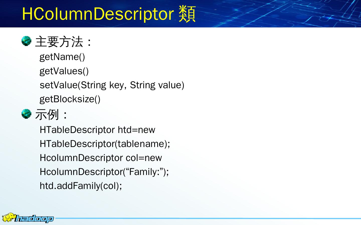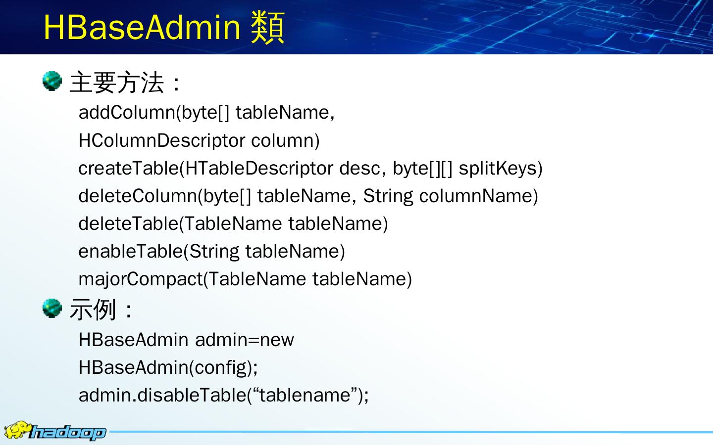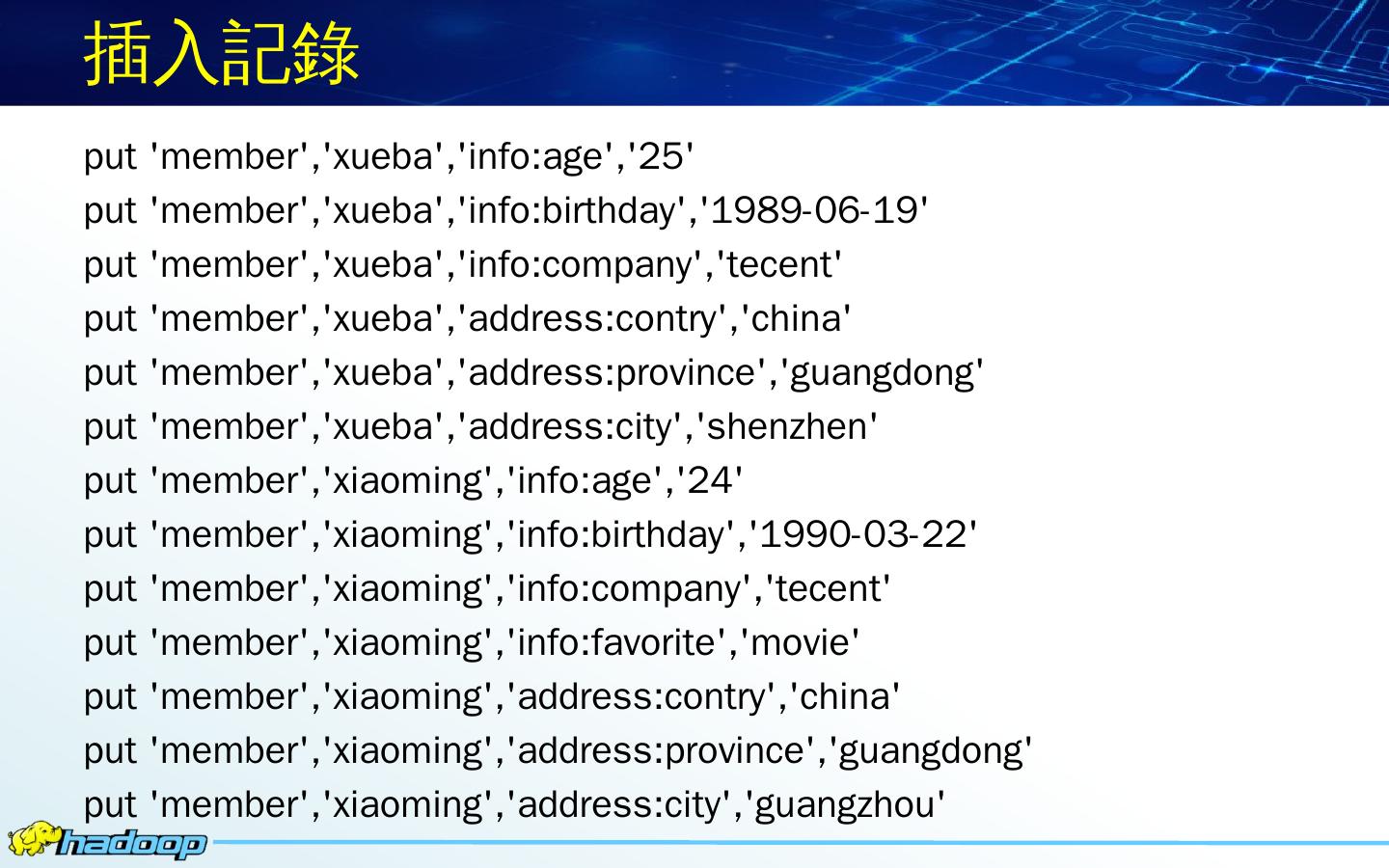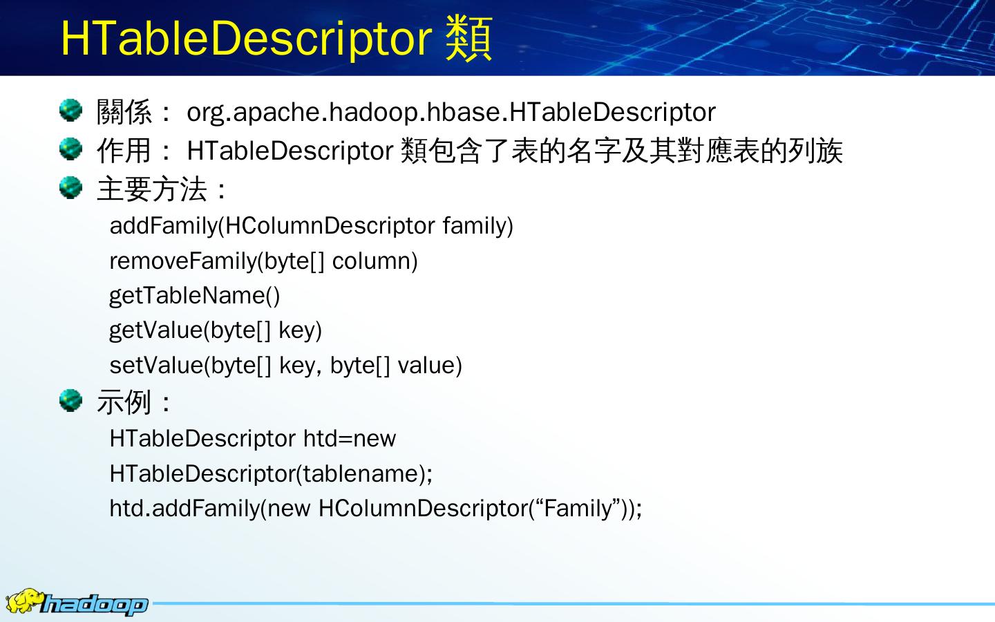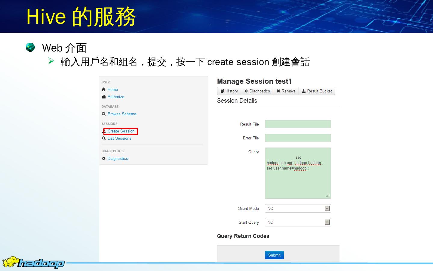 包含Apache Hadoop 0.23.x、2.x和CDH4,均包含HDFS Federation和YARN兩個 ... 生態系統由Hadoop、HBase、Hive、Pig、Sqoop、Flume、Mahout、Zookeeper等 ...