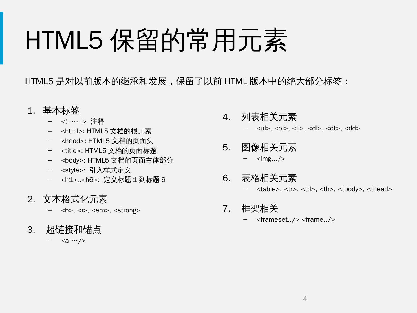 CSS3. 5. 语义. 6. 语义化的标签. HTML5 引入了新的HTML 元素,通过使用这些元素,开发者可以更细致的描述文档结构,让文档更加易读,搜索引擎 ...