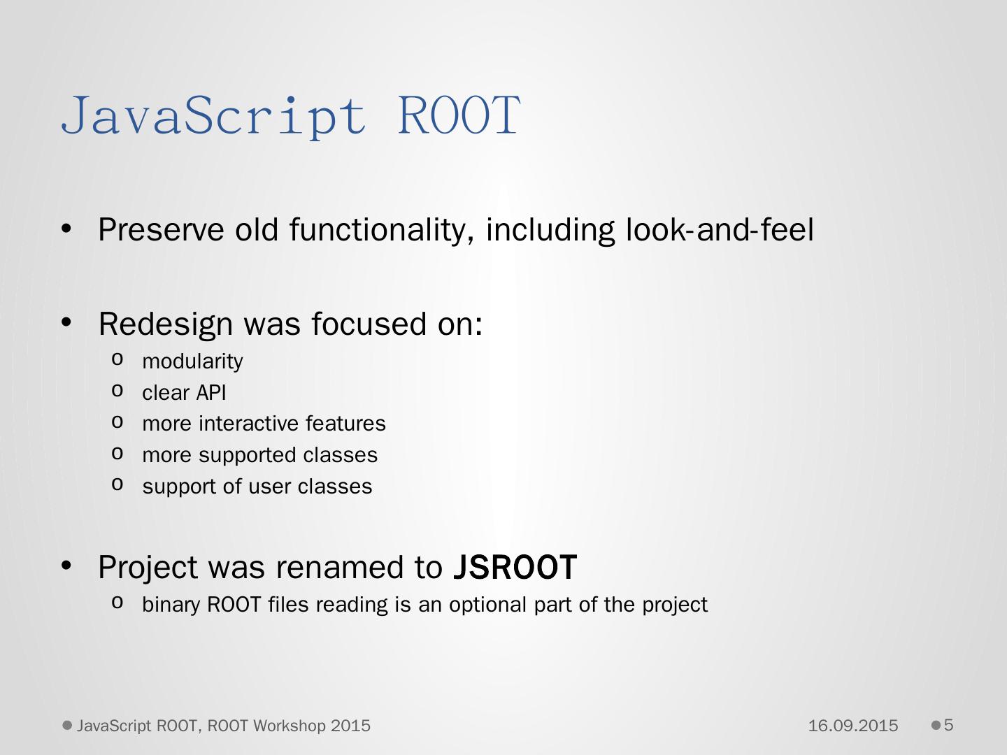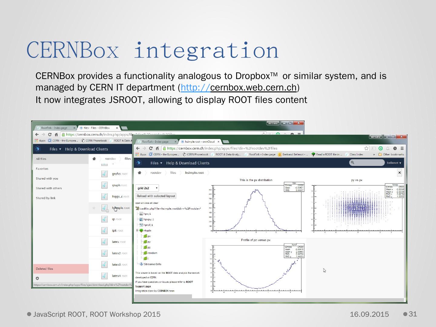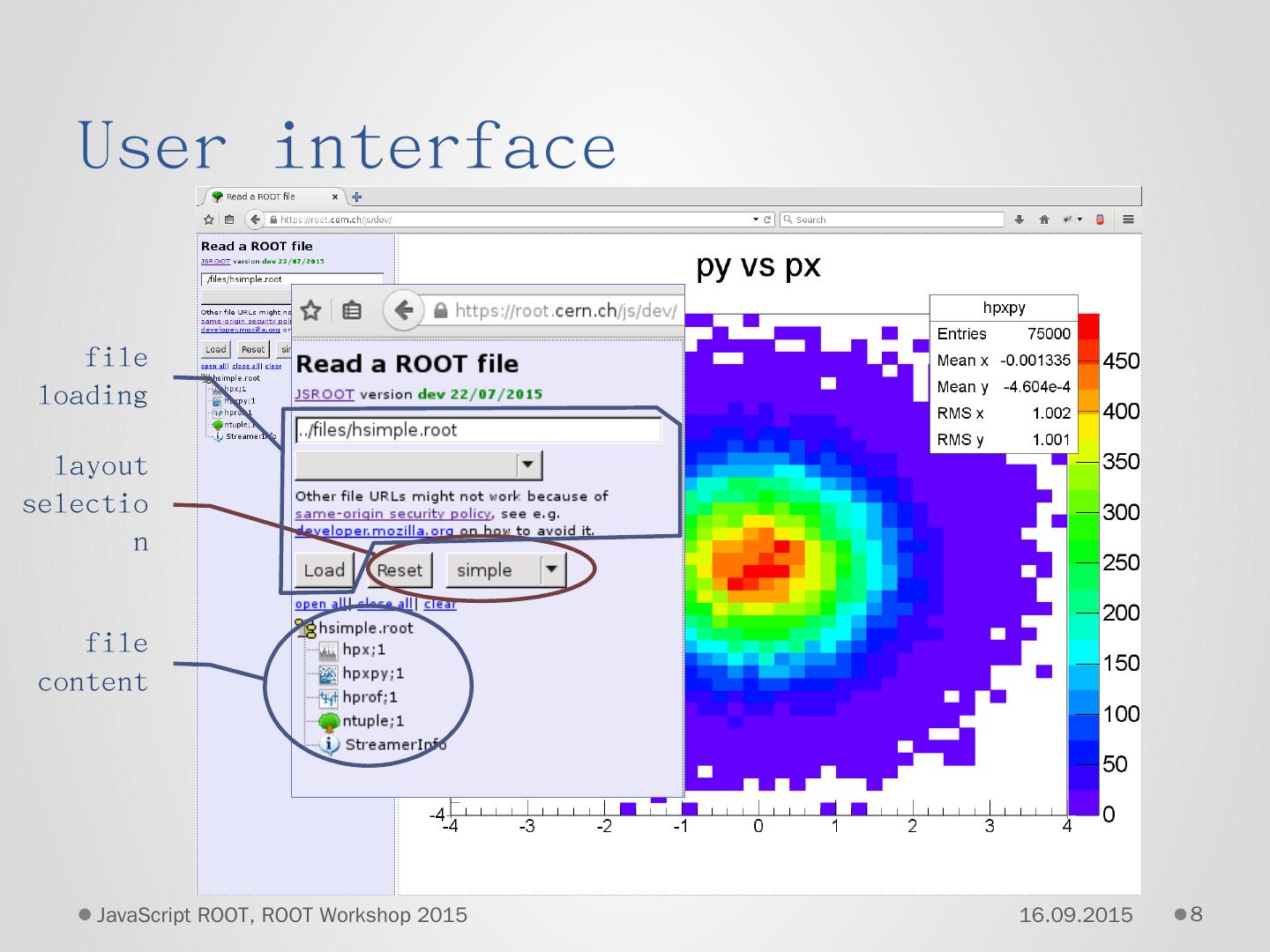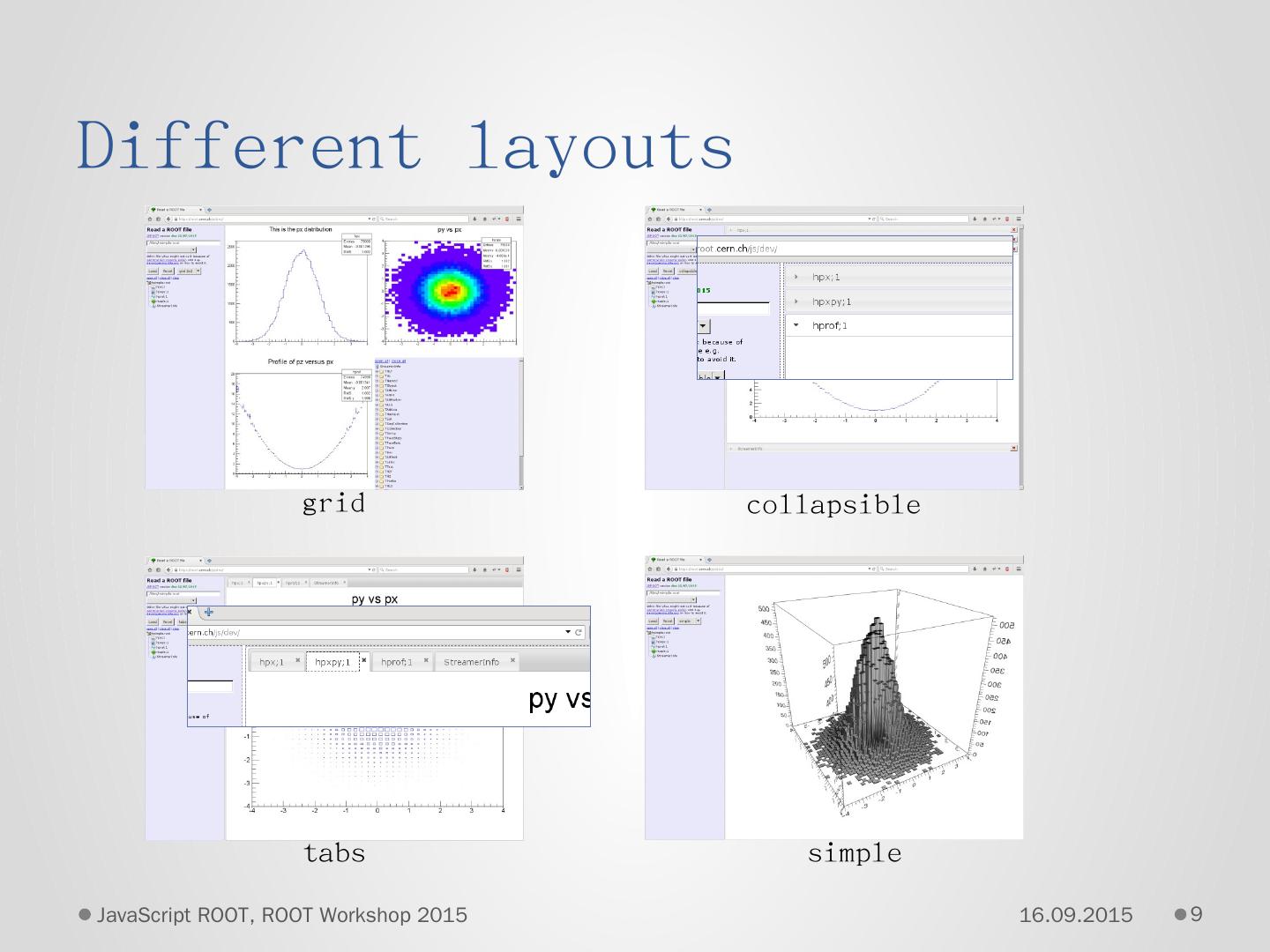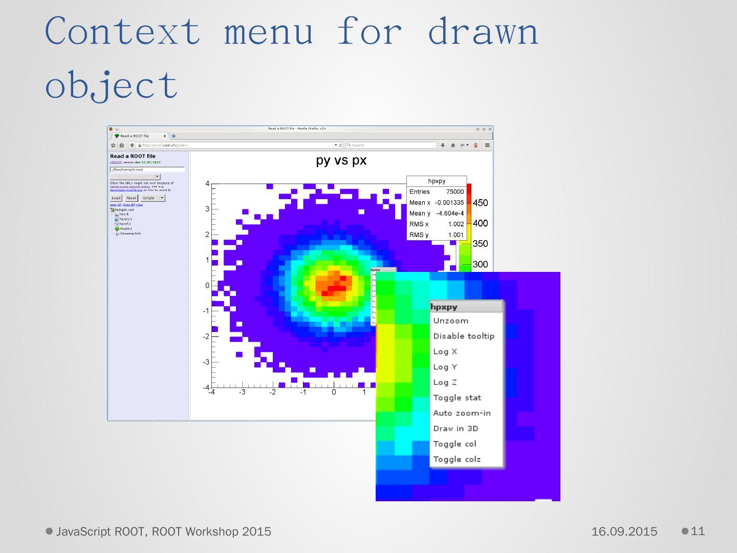 Graphic with d3.js, three.js and jQuery.js. Navigating the ROOT files content and displaying objects in modern web browsers. 16.09.2015. 2. JavaScript ROOT ...