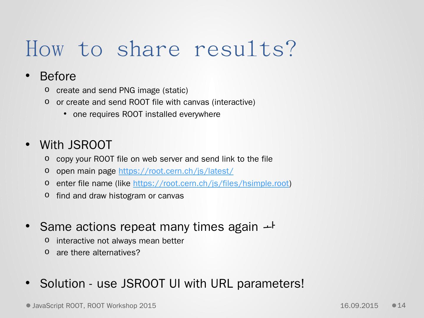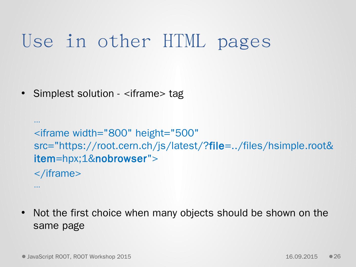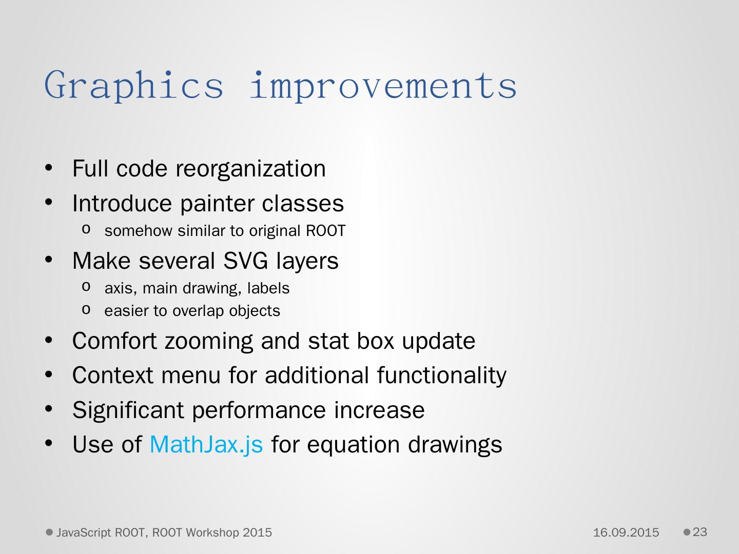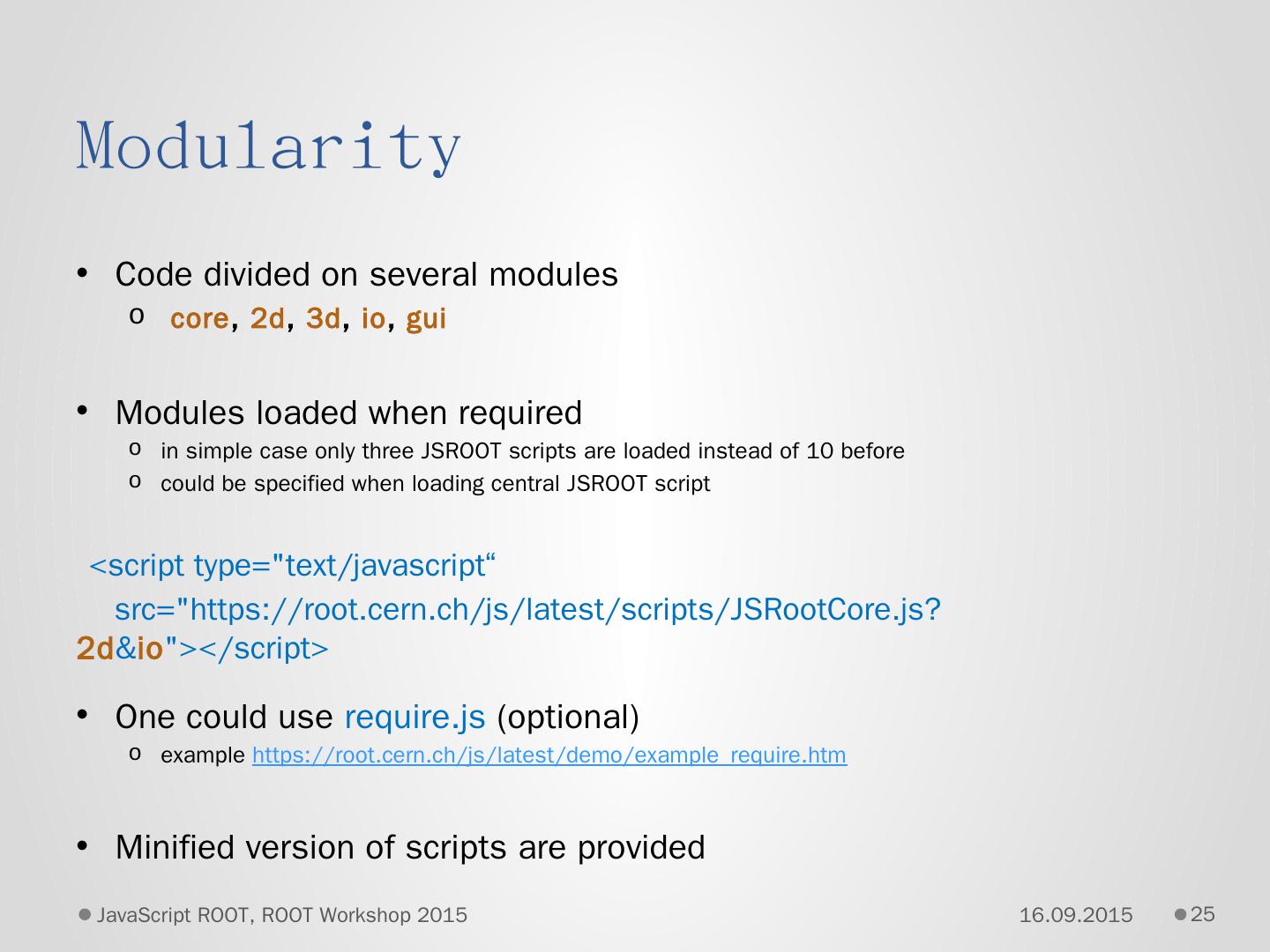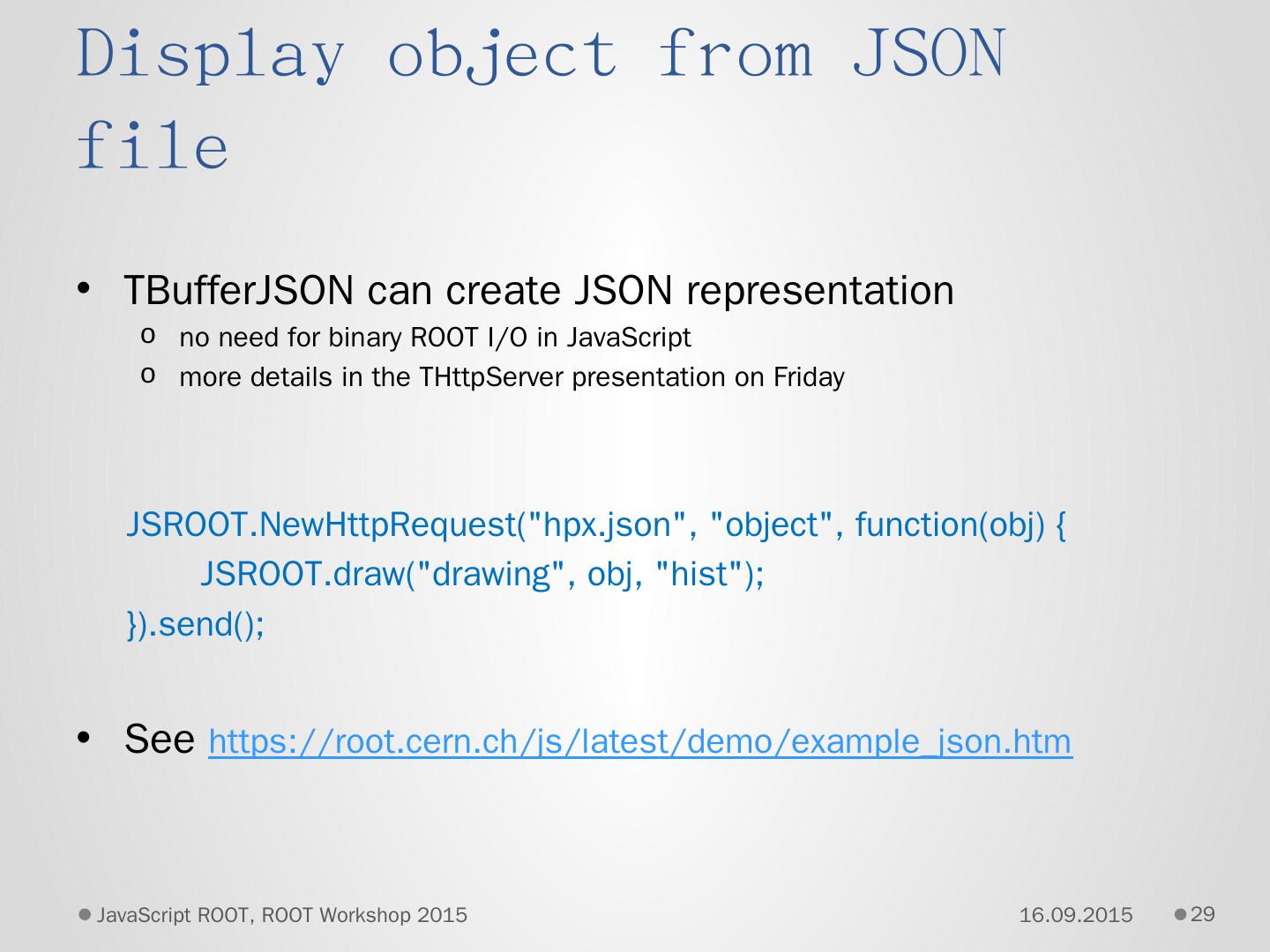 Graphic with d3.js, three.js and jQuery.js. Navigating the ROOT files content and displaying objects in modern web browsers. 16.09.2015. 2. JavaScript ROOT ...