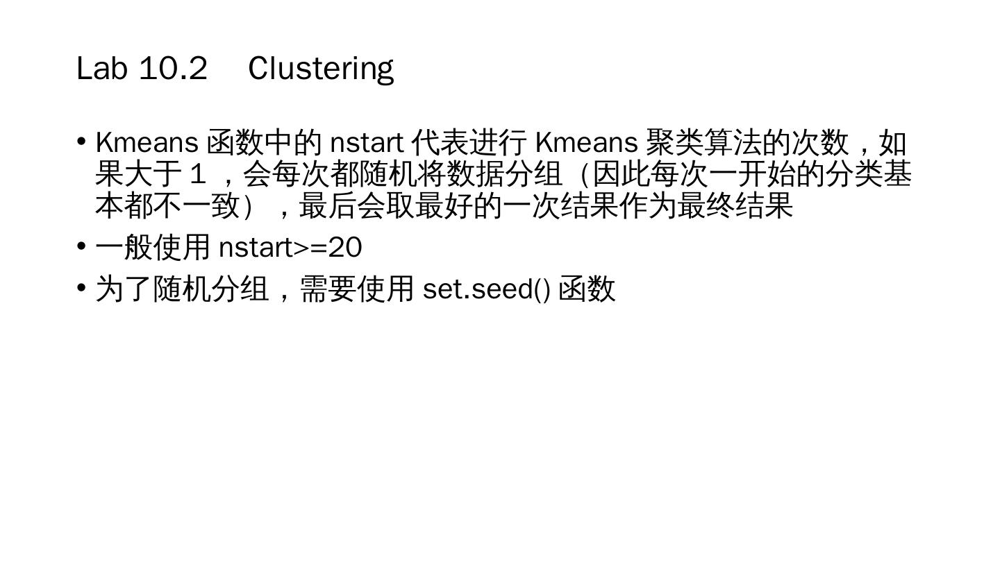 Kmeans函数中的nstart代表进行Kmeans聚类算法的次数,如果大于1,会每次都随机将数据分组(因此每次一开始的分类基本都不一致),最后会取最好的一次结果 ...
