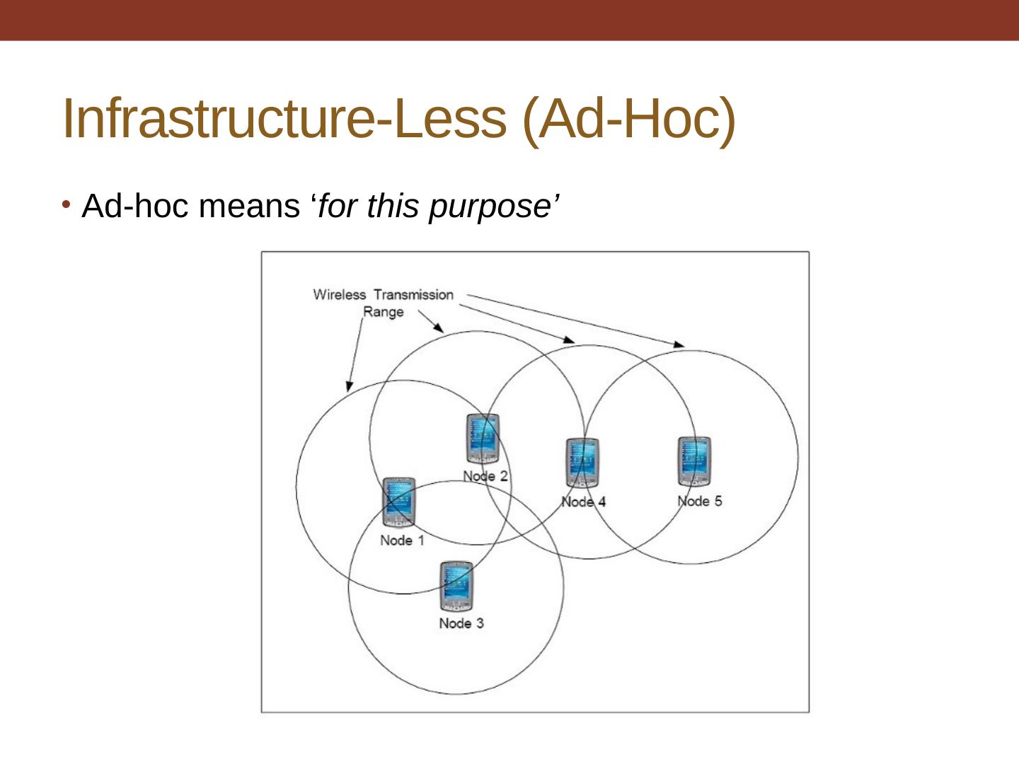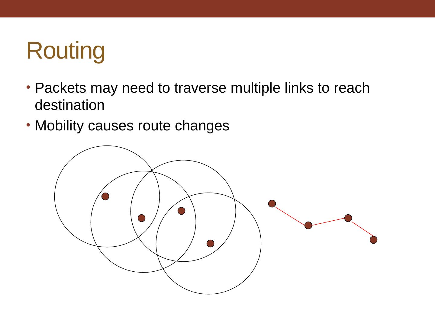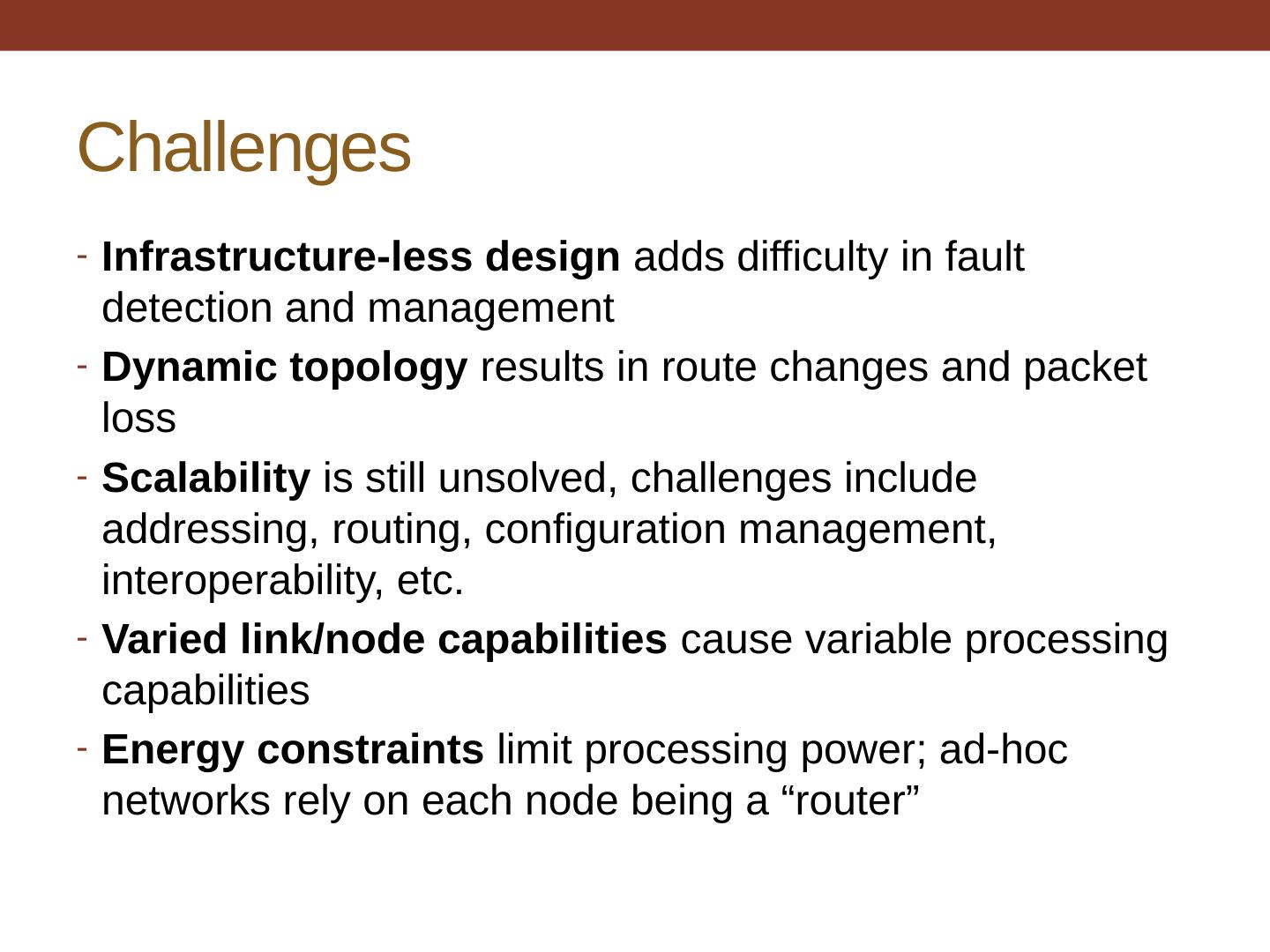 Energy constraints limit processing power; ad-hoc networks rely on each node being a “router”