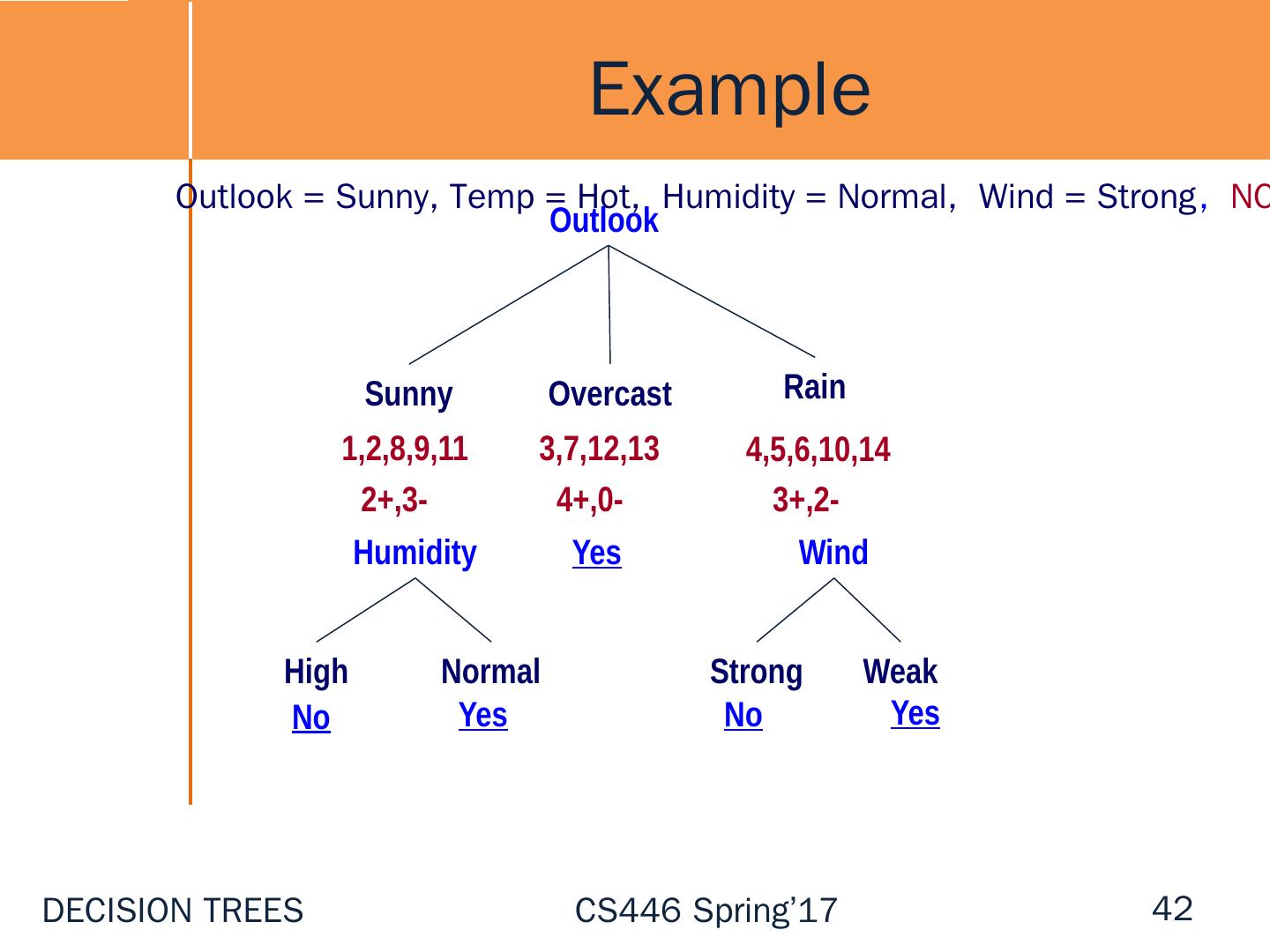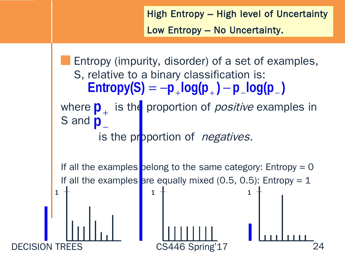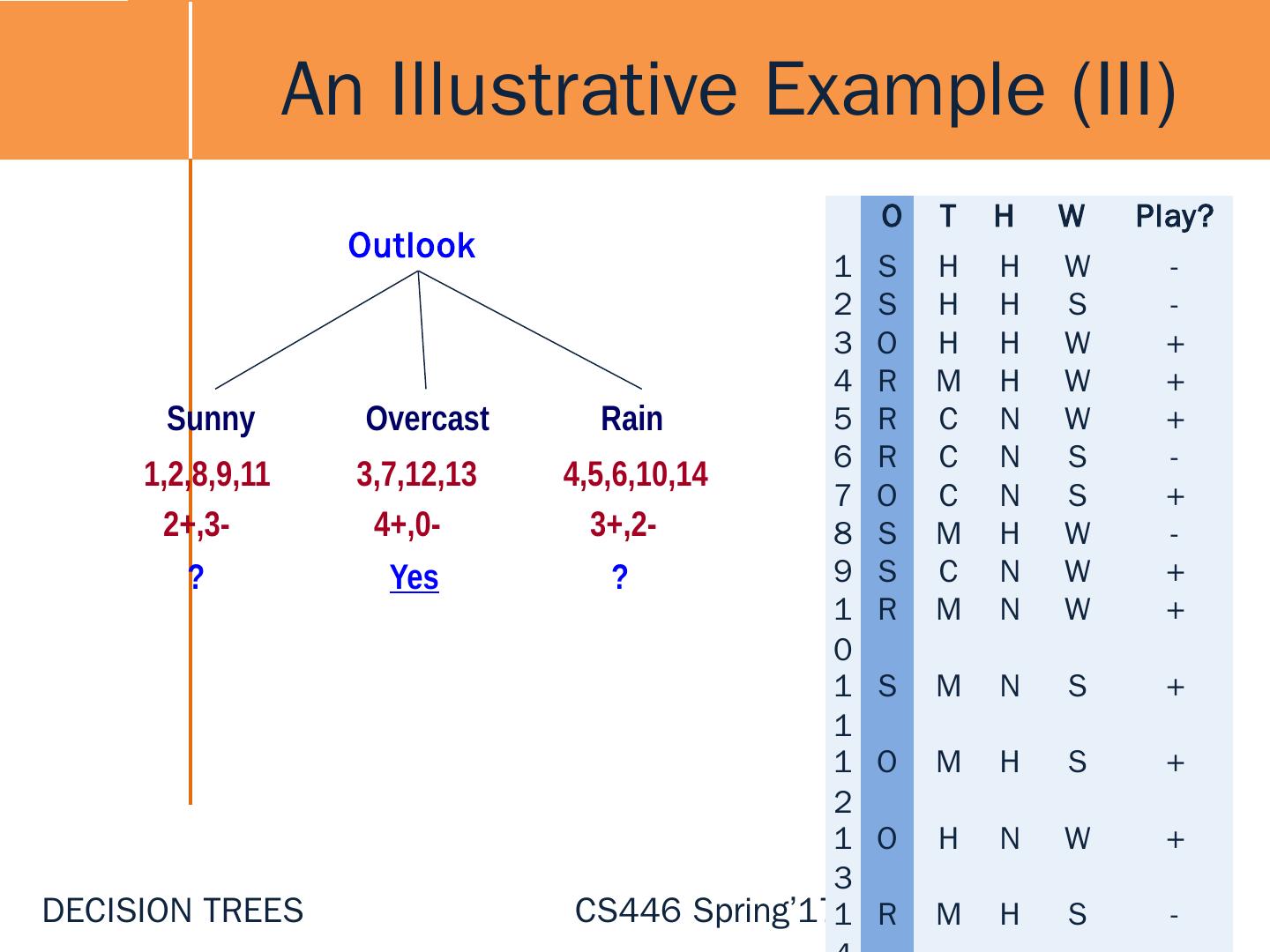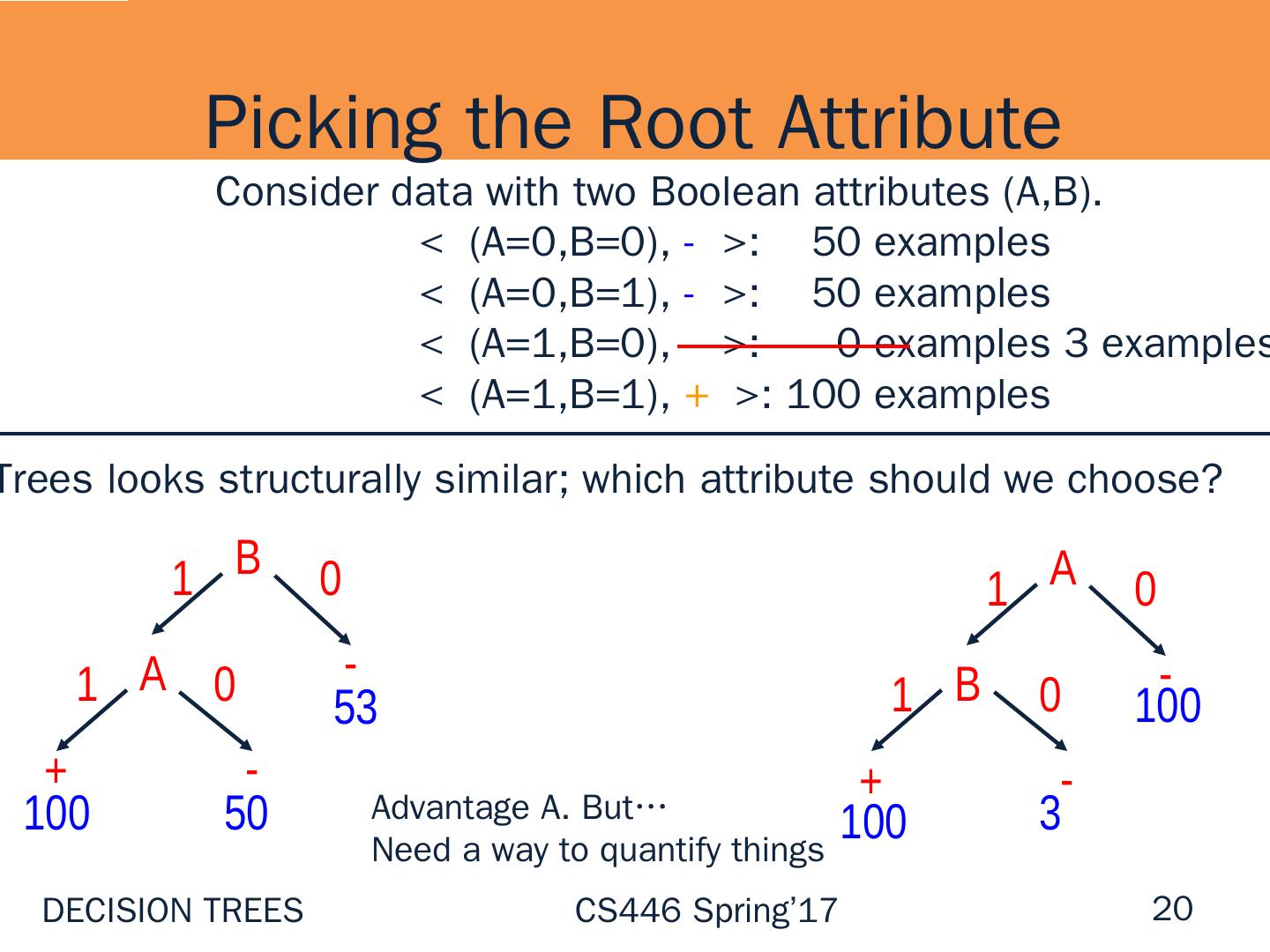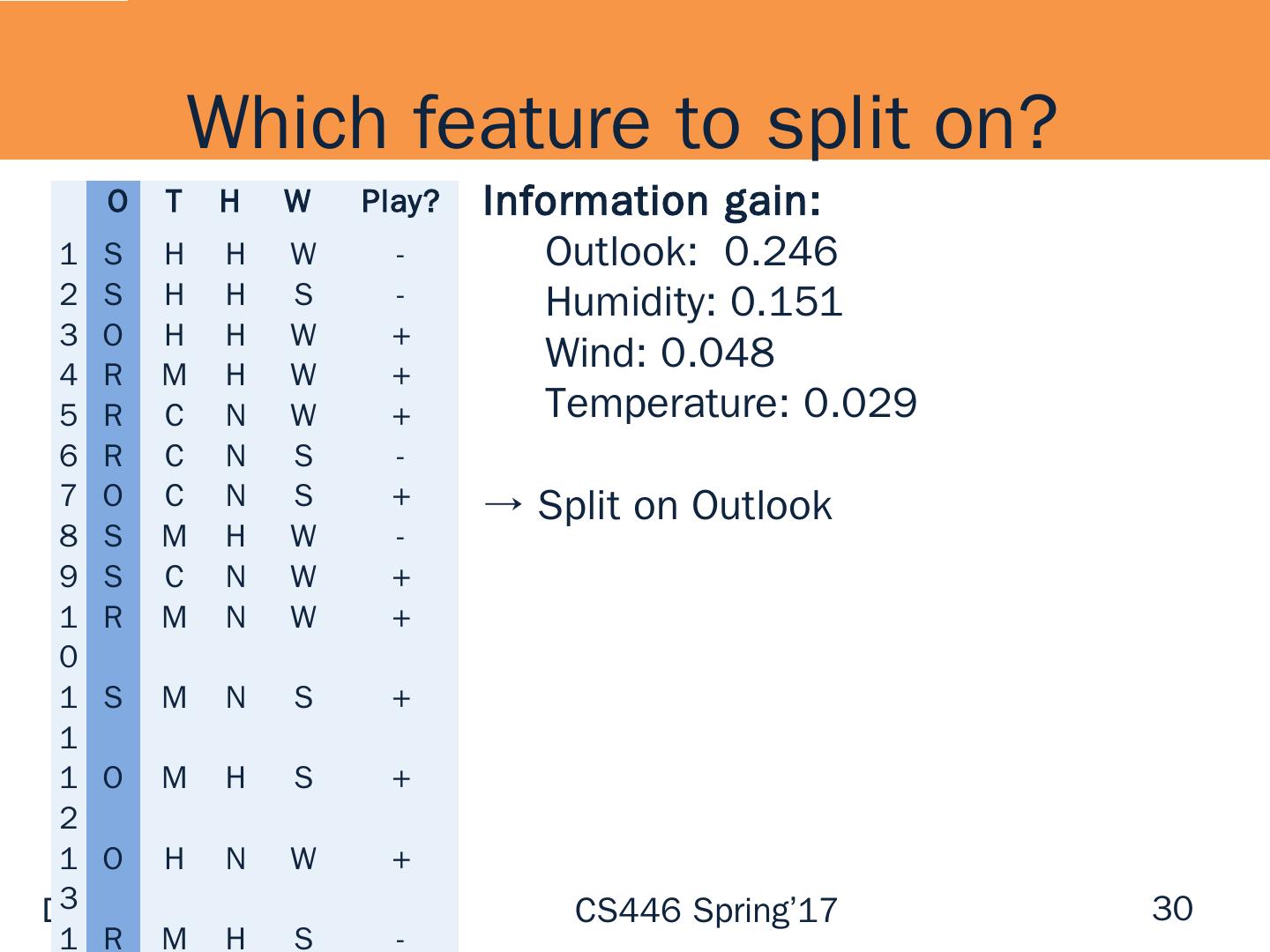 DECISION TREES CS446 Spring'17. What Did We Learn? Learning problem: Find a function that. best separates the data. What function? What's best? How to ...