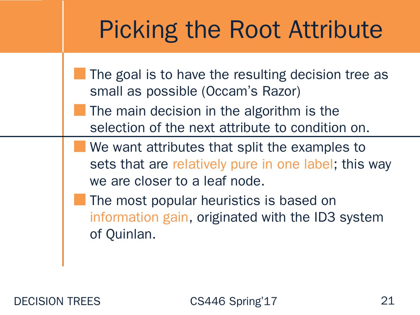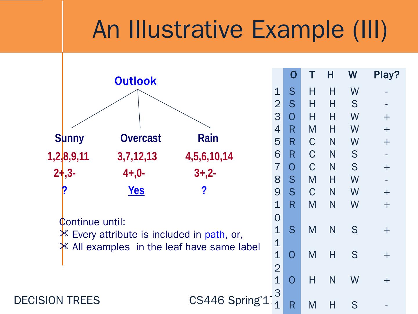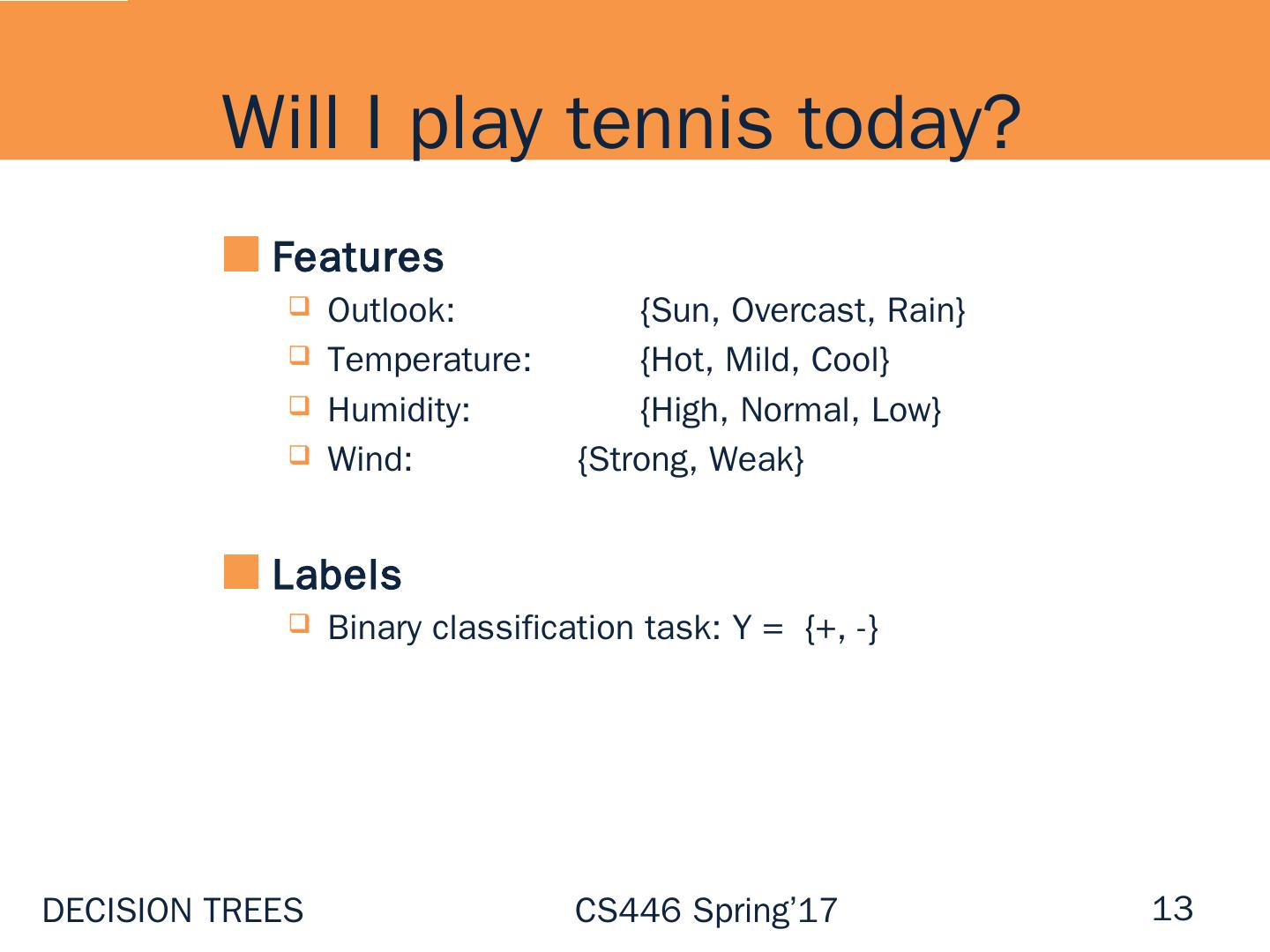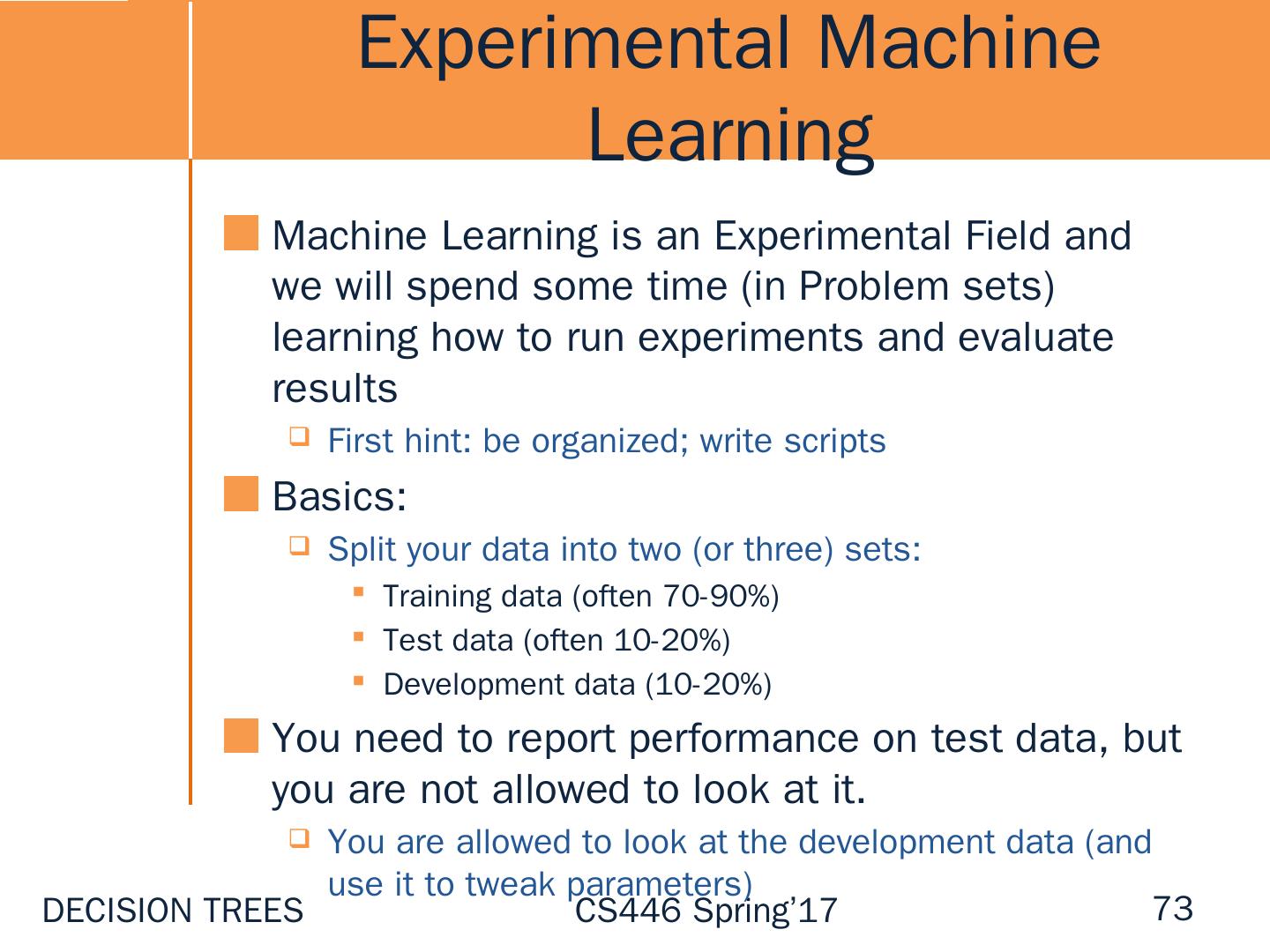 DECISION TREES CS446 Spring'17. What Did We Learn? Learning problem: Find a function that. best separates the data. What function? What's best? How to ...