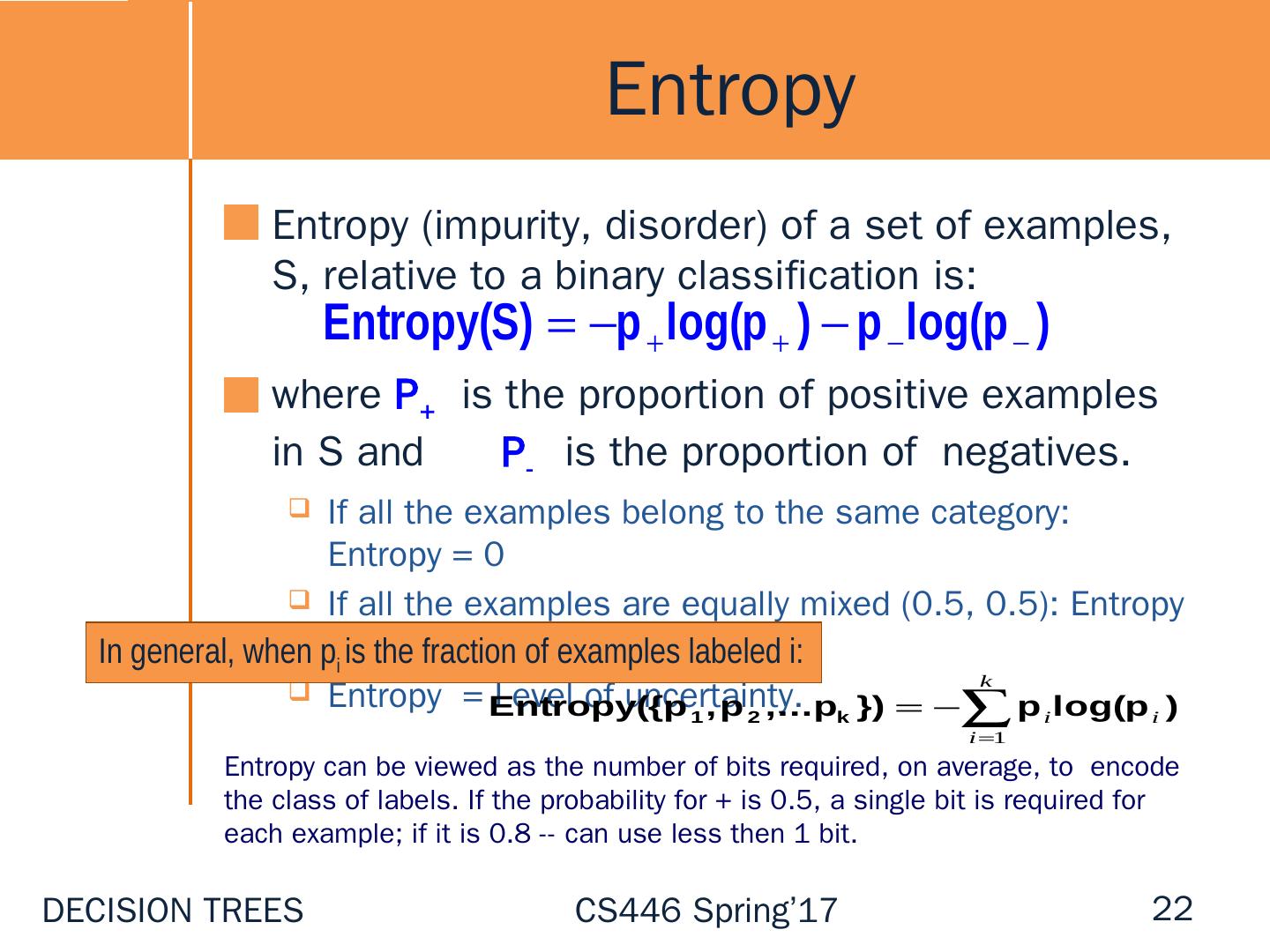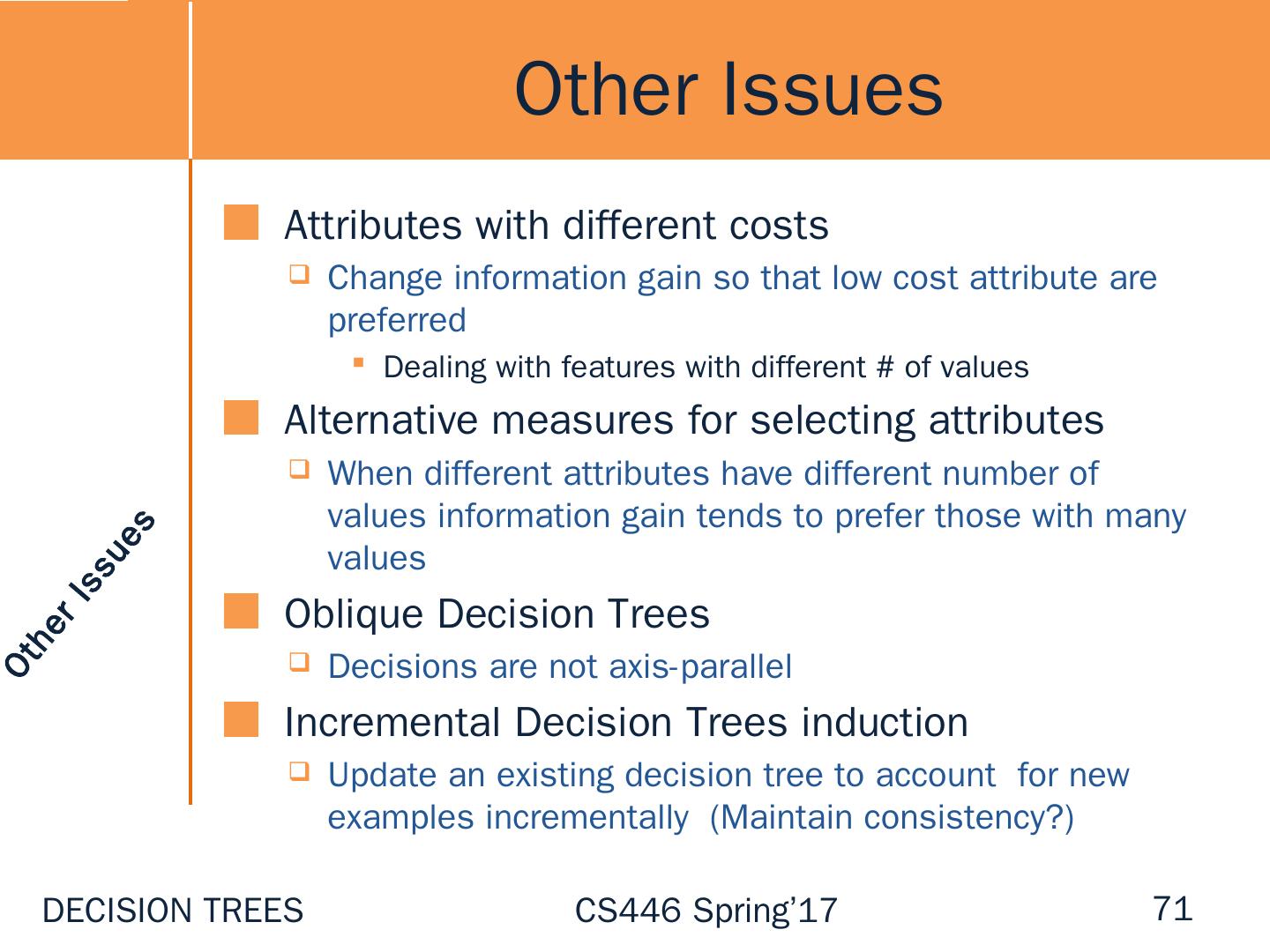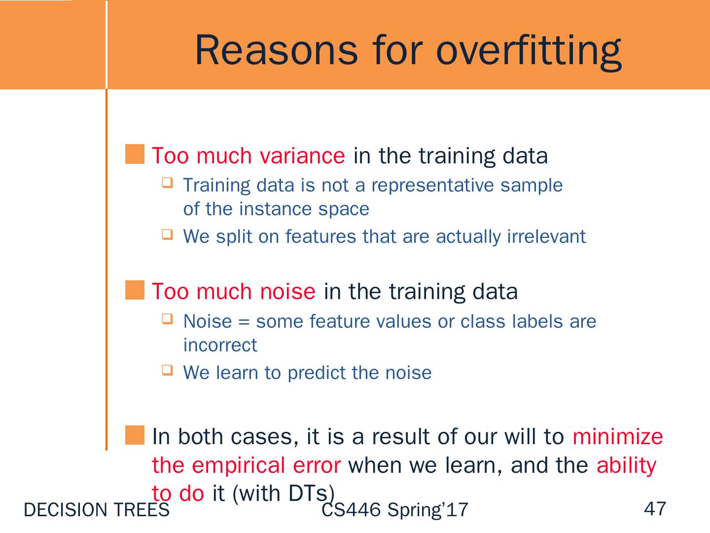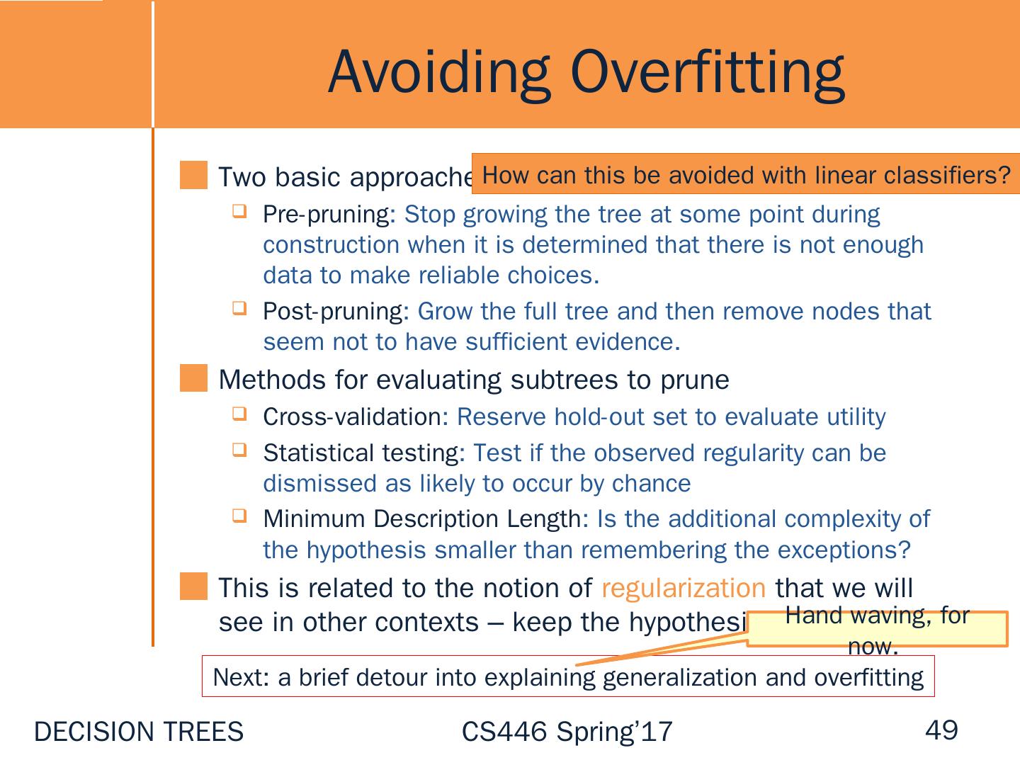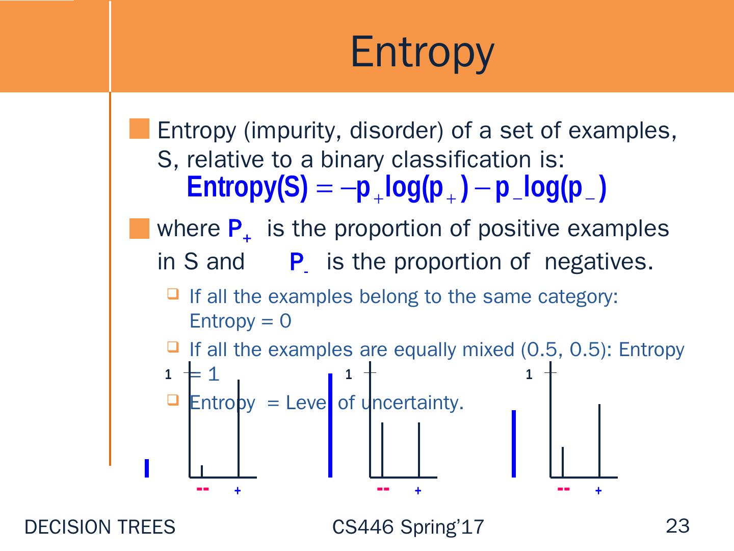 DECISION TREES CS446 Spring'17. What Did We Learn? Learning problem: Find a function that. best separates the data. What function? What's best? How to ...