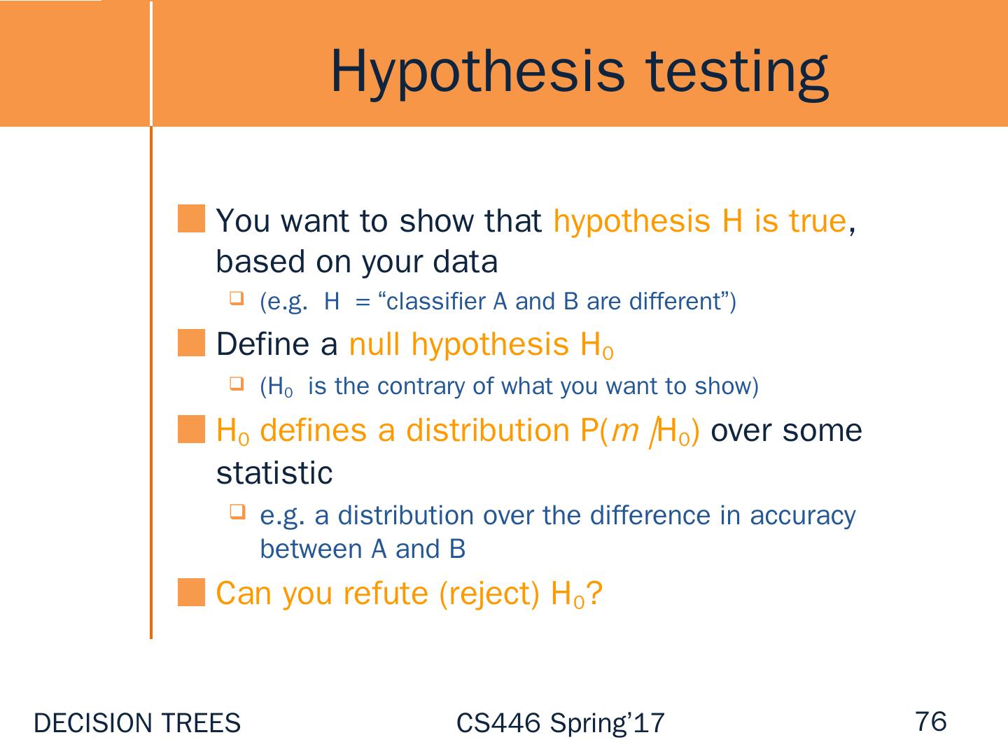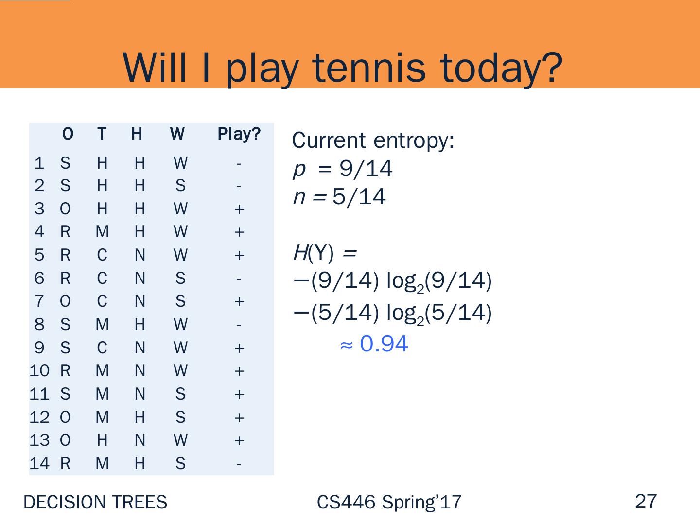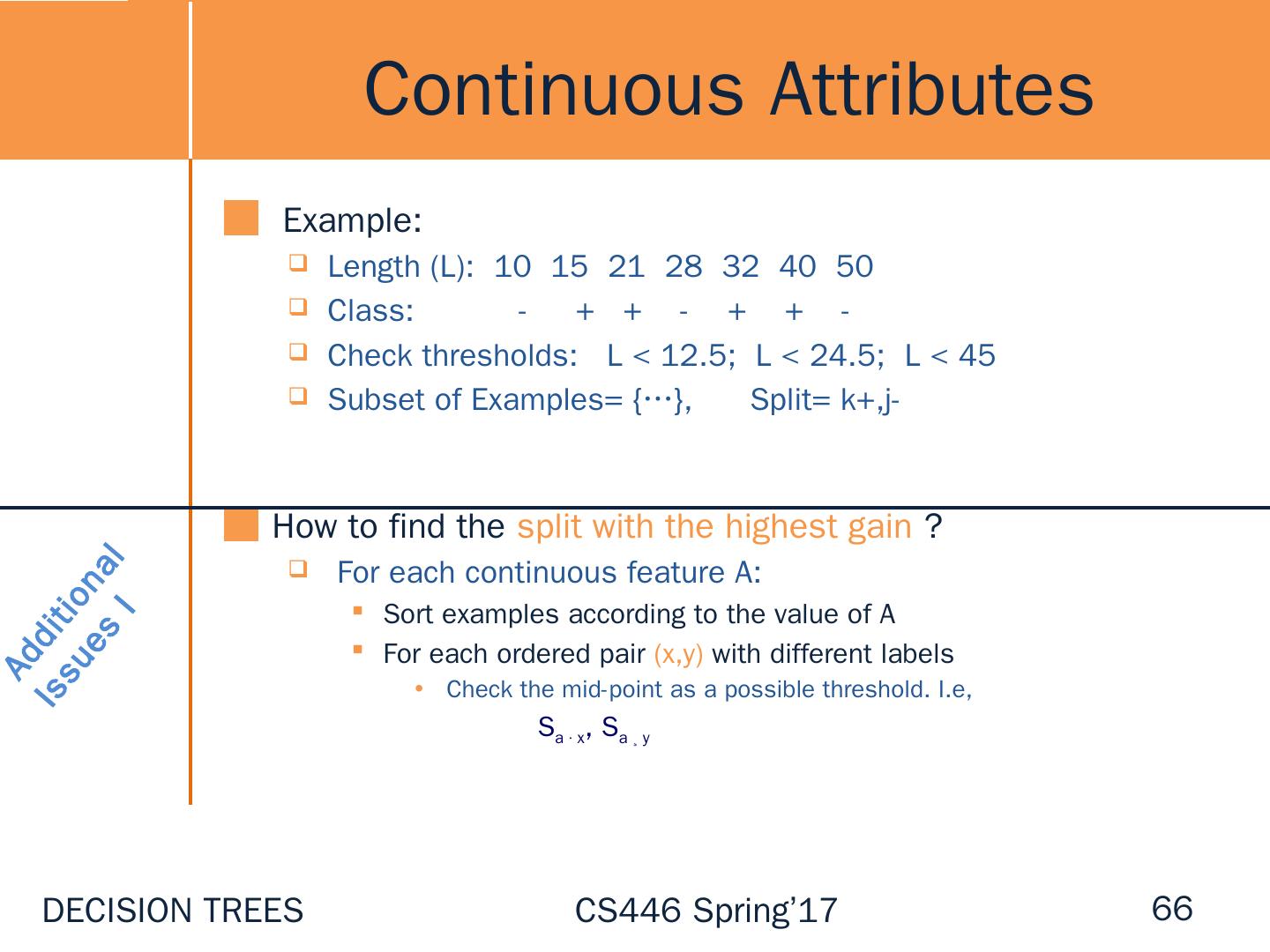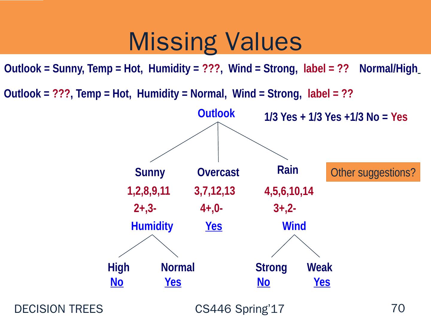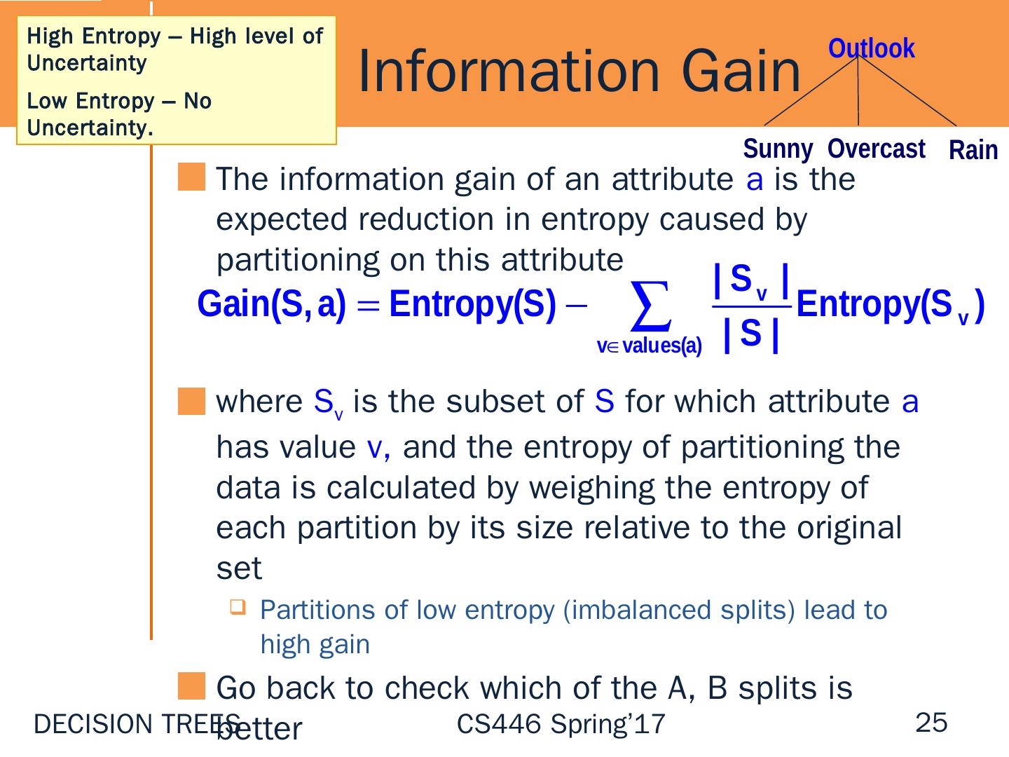 DECISION TREES CS446 Spring'17. What Did We Learn? Learning problem: Find a function that. best separates the data. What function? What's best? How to ...
