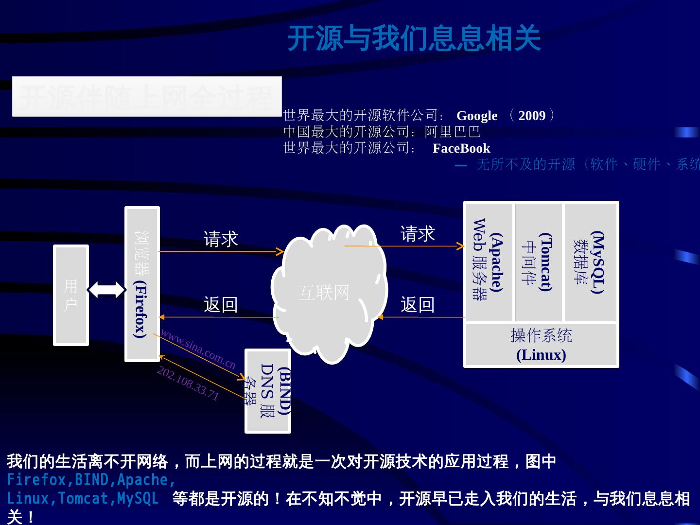 Linux,Tomcat,MySQL 等都是开源的! ... 软件定义一切,开源成为驱动力量! ... 阿里巴巴为例采用完全开源和自主开发的方式建立了全球最大的电子商务平台淘宝 ...