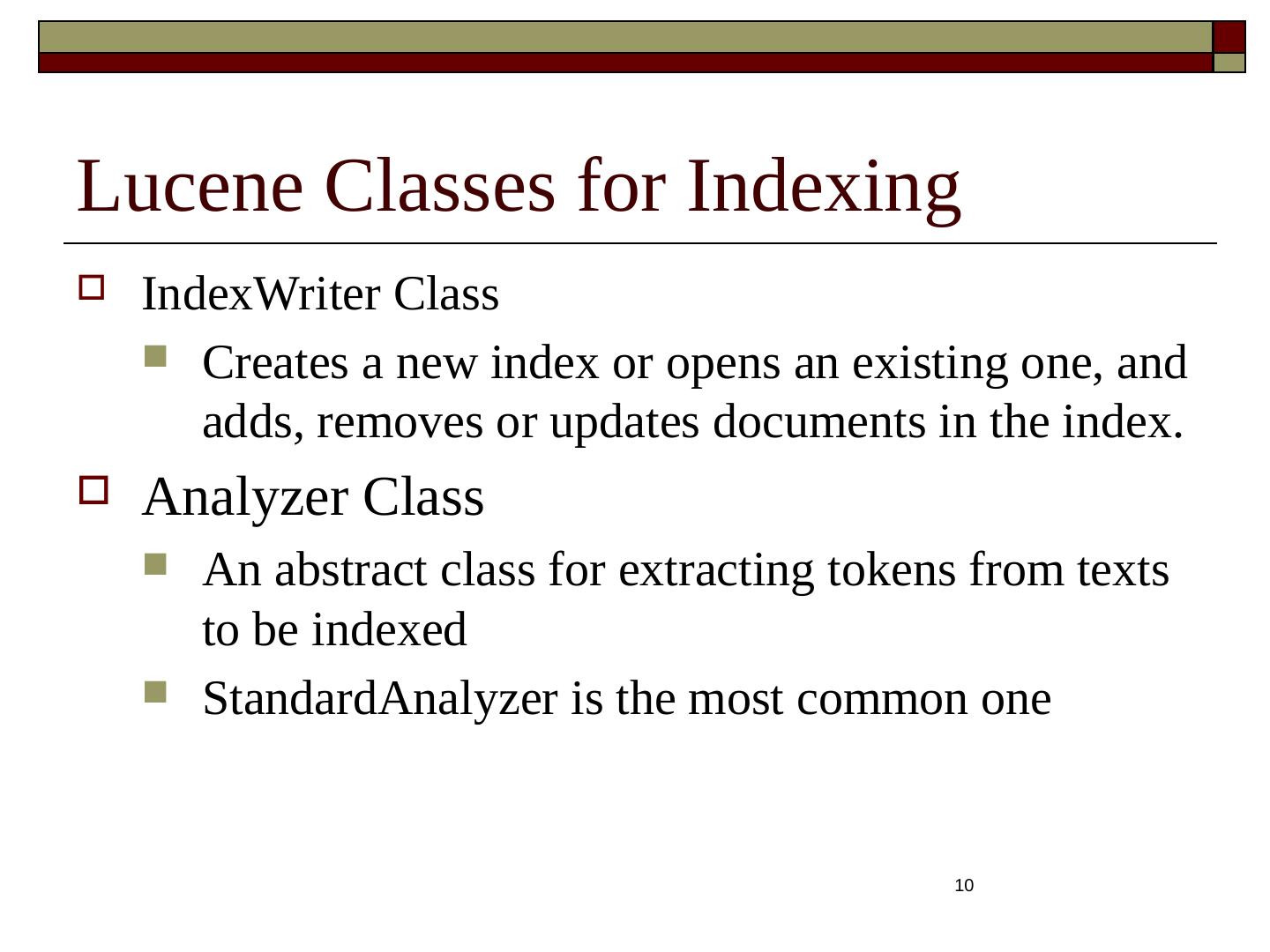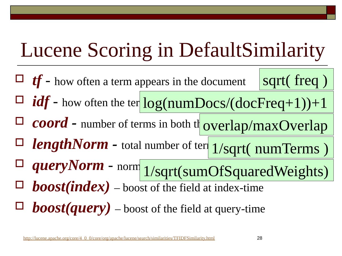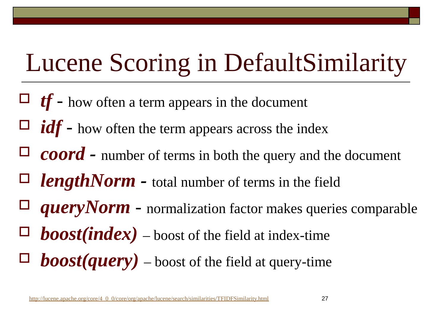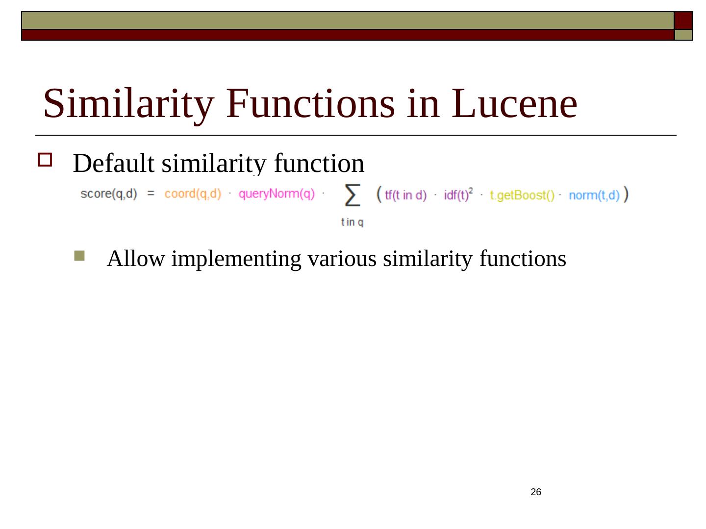 Lucene & Apache Lucene & Java Lucene: IR library; Nutch: Hadoop-loving crawler, indexer, searcher for web-scale SE; Solr: Search server; Droids: Standalone ...
