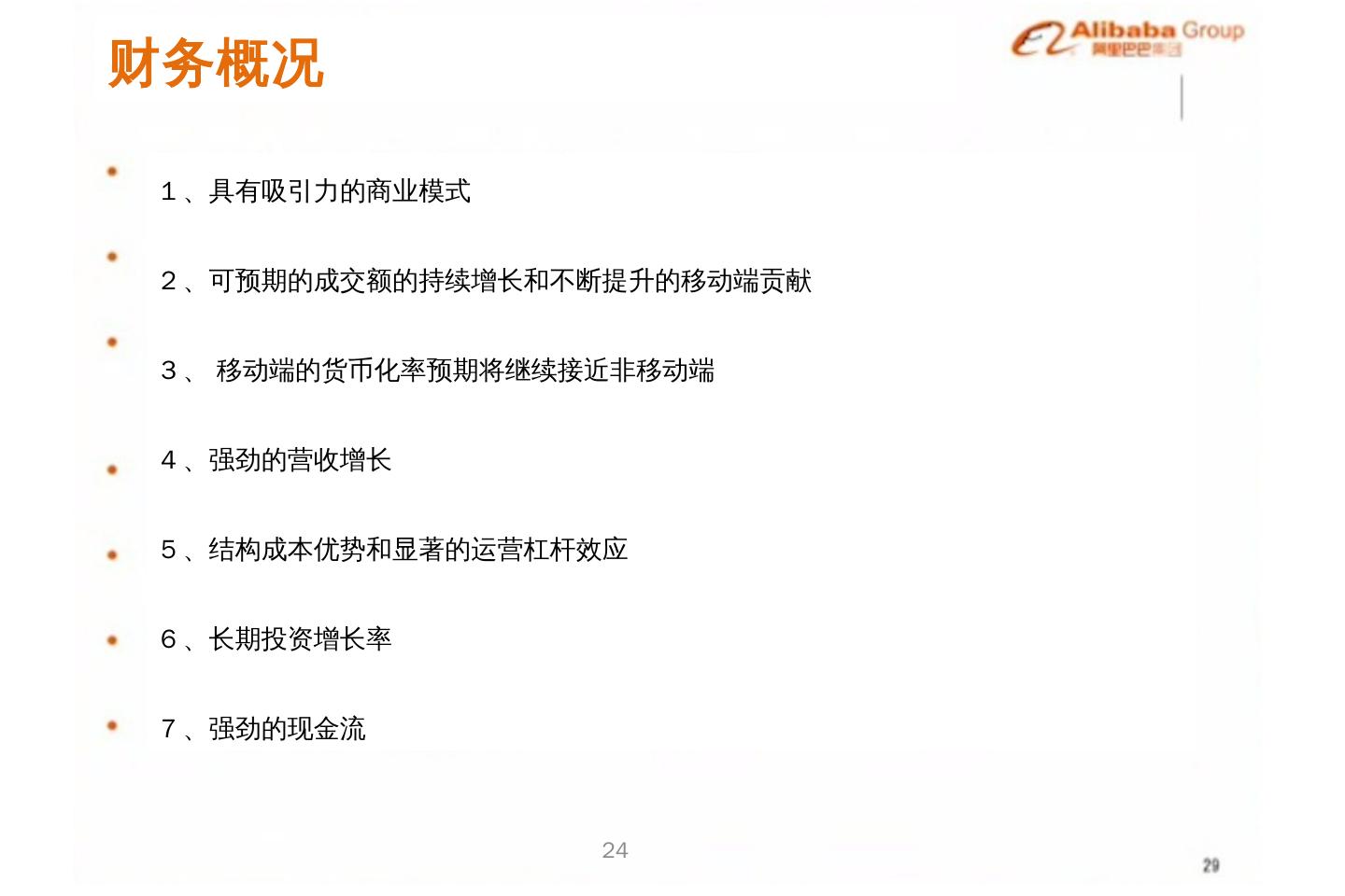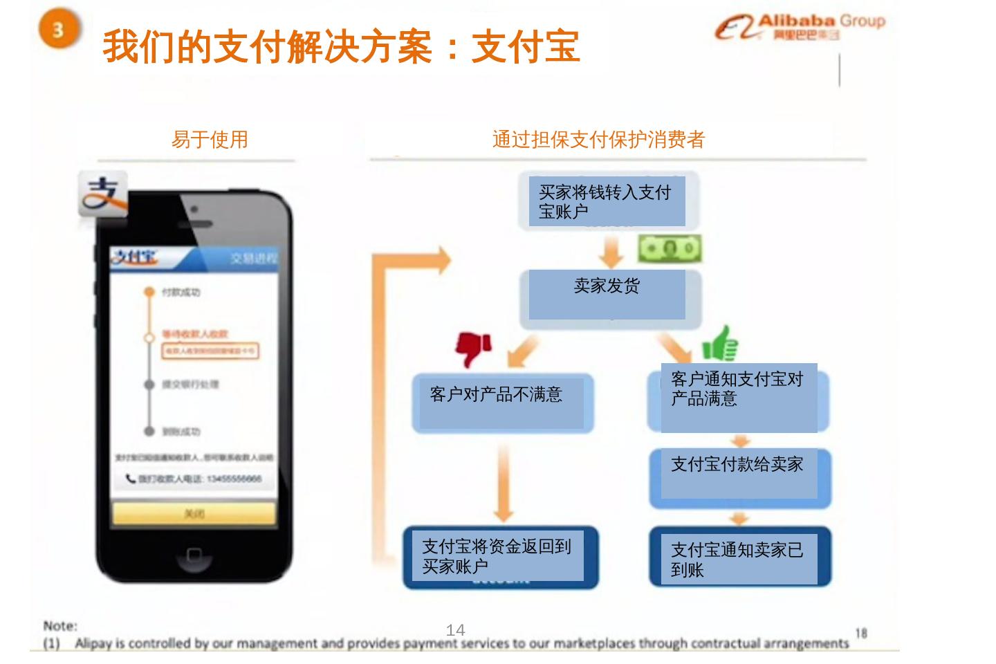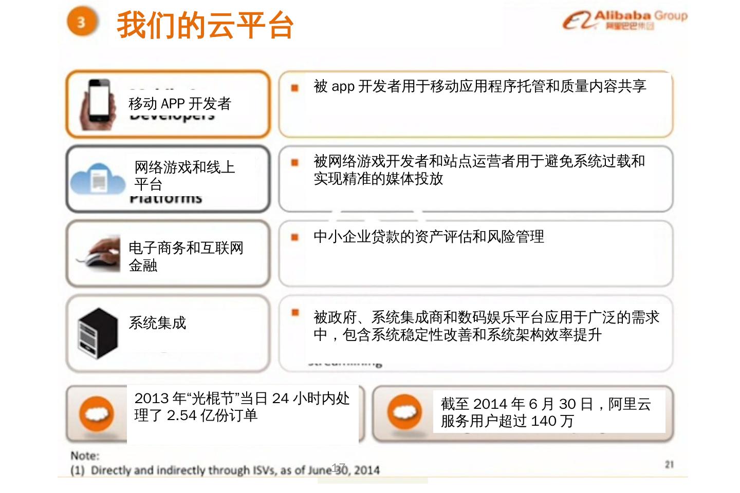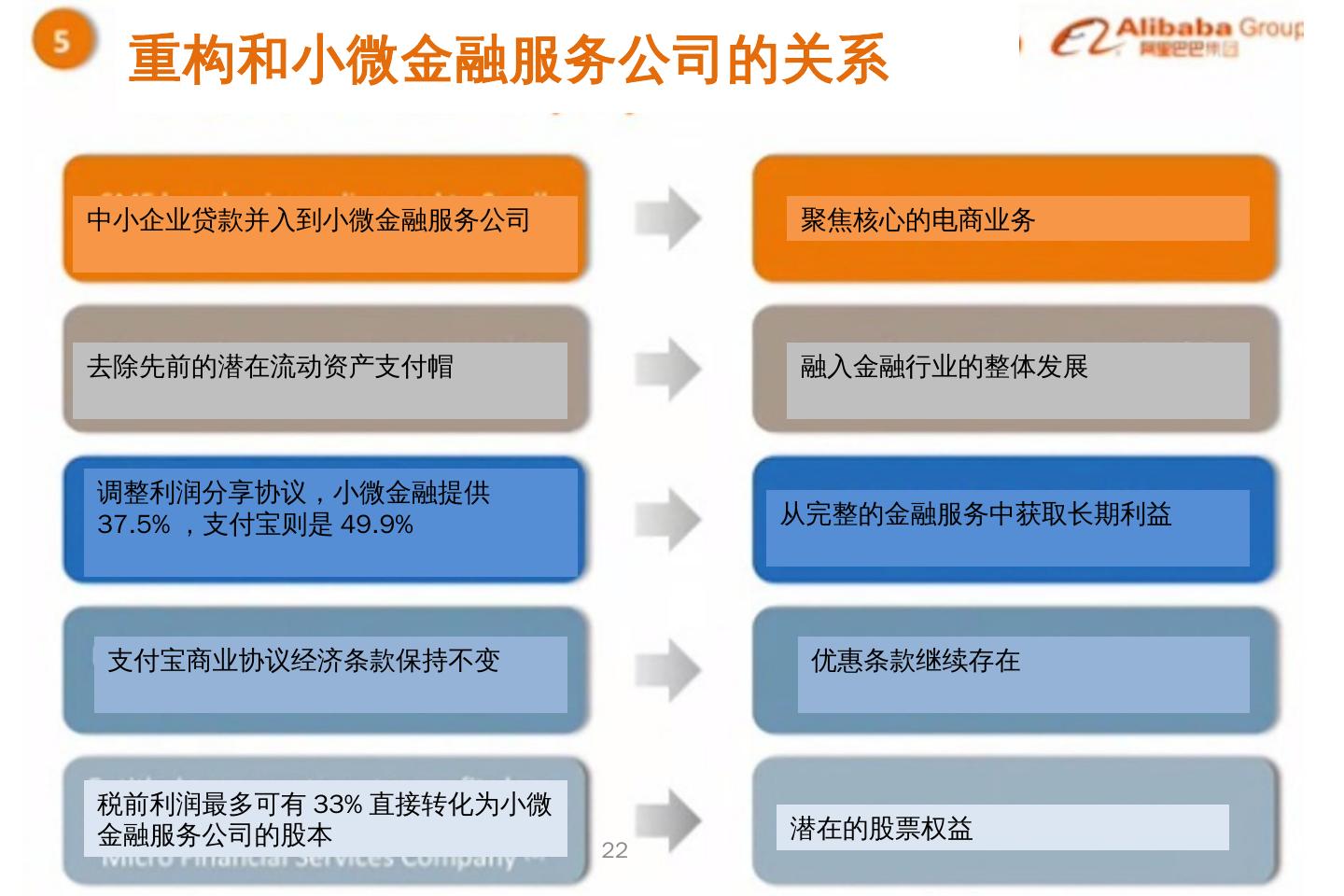 22.7Bn成交额(通过支付宝). 中国最大的网络 ... 被app开发者用于移动应用程序托管和质量内容共享 ... 调整利润分享协议,小微金融提供37.5%,支付宝则是49.9%.