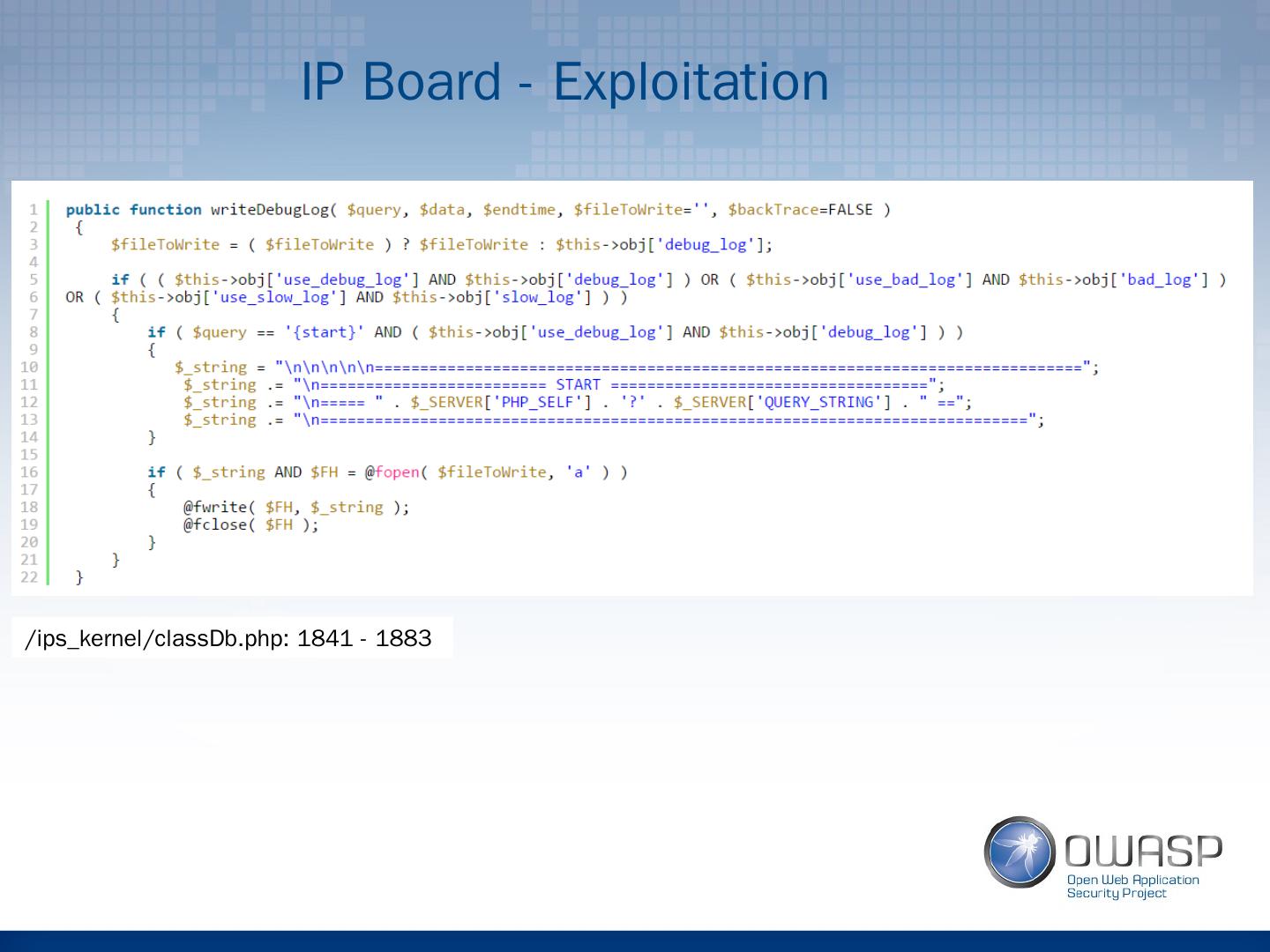 25 .IP Board - Exploitation / ips_kernel / classDb.php : 1841 - 1883