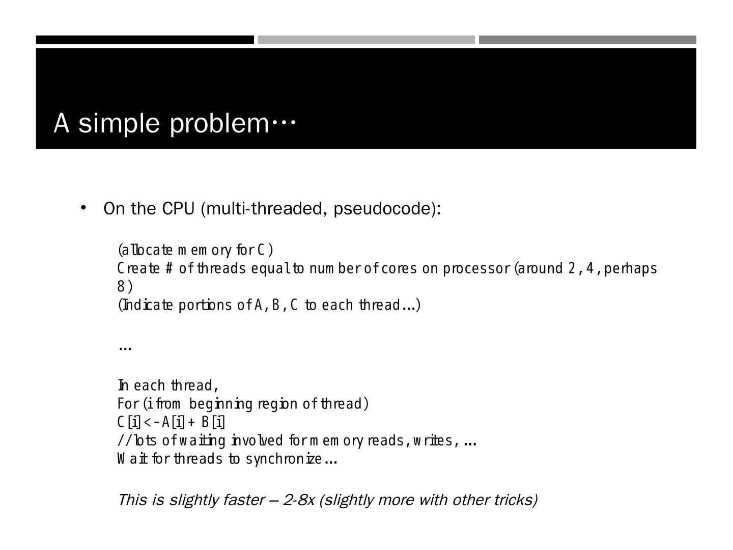 General heterogenous computing framework. Both are accessible as extensions to various languages. If you're into python, checkout theano.