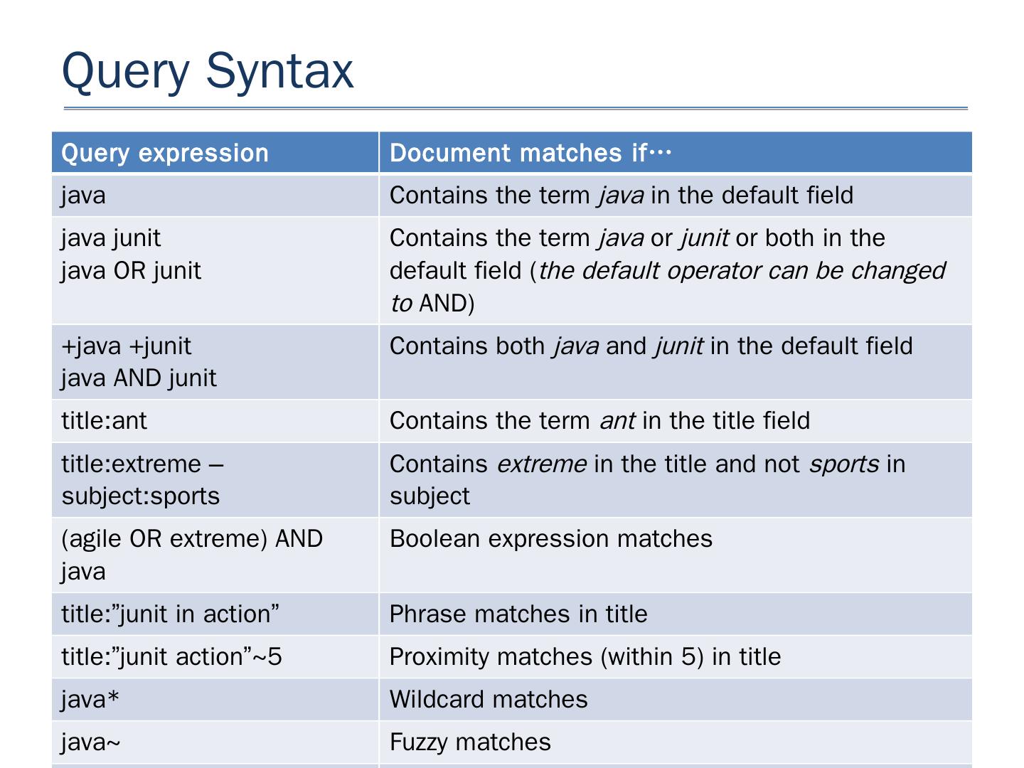Lucene; Apache license, legally easier for commercial use. Lucene. Java search engine library, with many features; Ports/integration to other languages ...