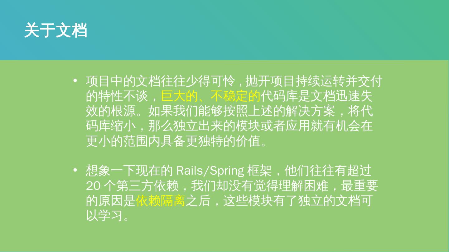 老板一大早就来找你,要你务必在三个星期内完成这样一个程序:从键盘读入字符,并输出到打印机。 ... 从第一次改进开始,无论何时老板要求一种 新的输入设备,你都能以不 ... 从Microsoft ASP/LAMP(Linux、Apache、MySQL、PHP)年代开始,各种企业 ... Rails (Ruby on Rails 是一个用于开发数据库驱动的网络应用程序的完整框架).