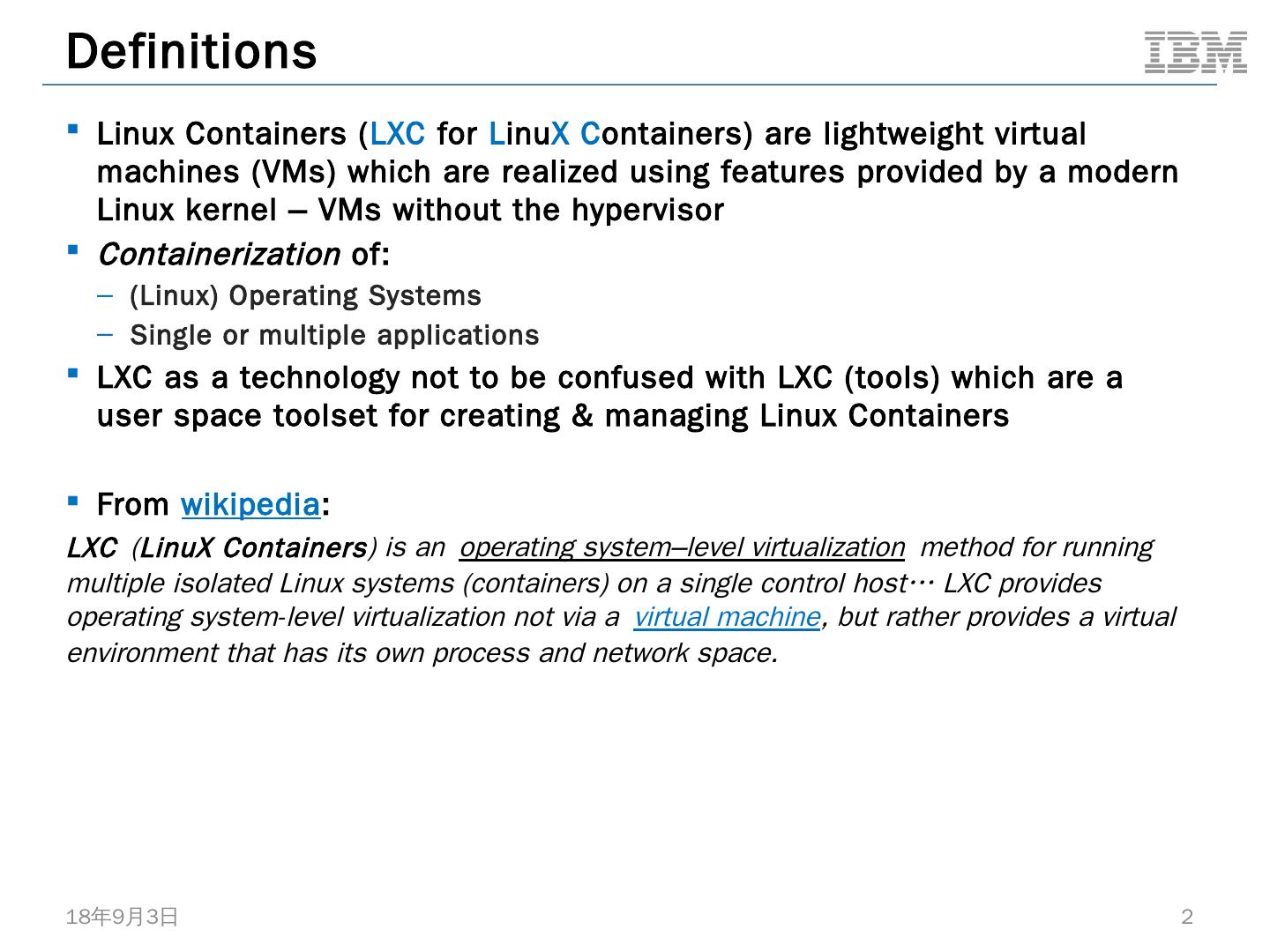 Linux Containers (LXC for LinuX Containers) are lightweight virtual machines (VMs) which are realized using features provided by a modern Linux kernel – VMs ...