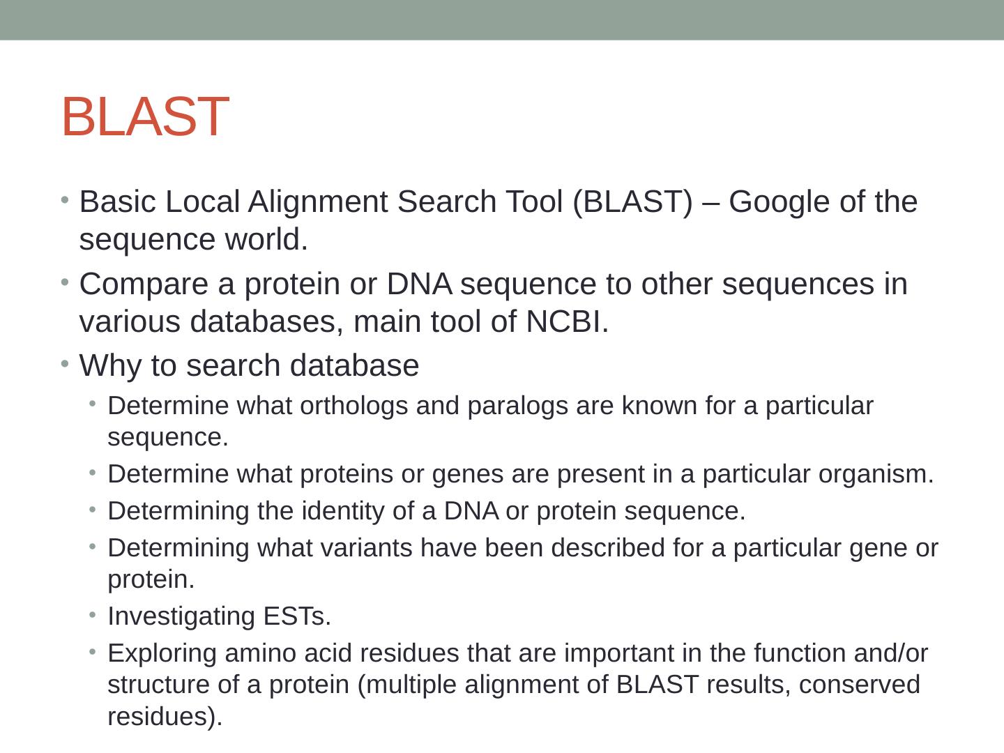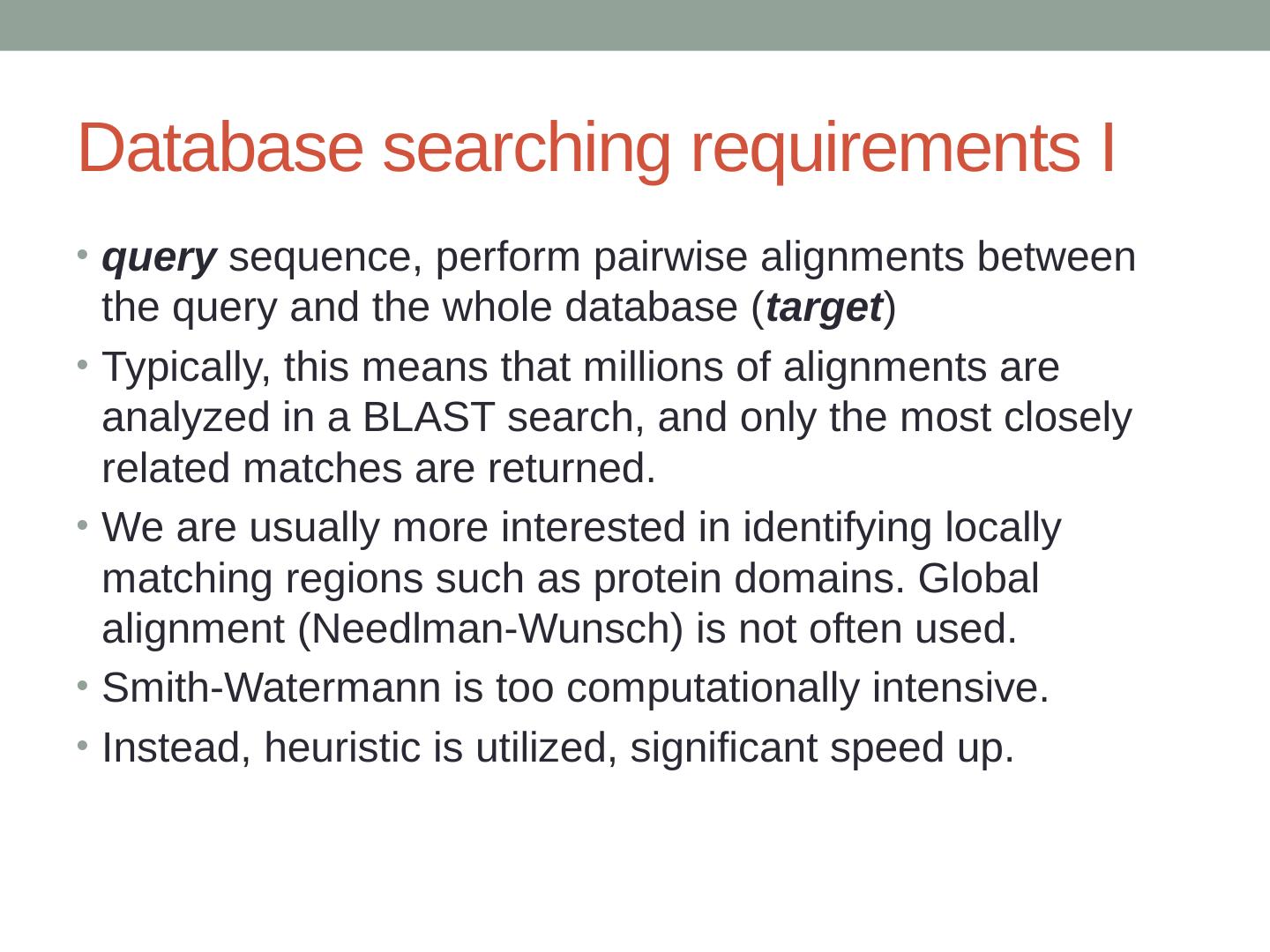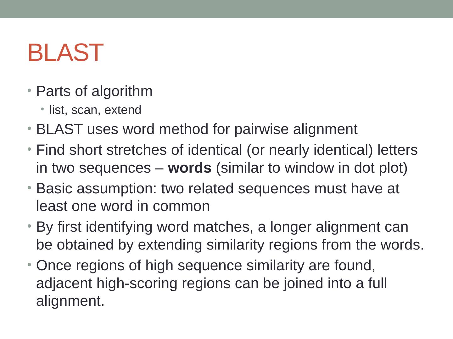 uses a rigorous algorithm to find the exact solution for a particular problem by ... pairs at or above threshold T, the BLAST algorithm scans a database for hits.