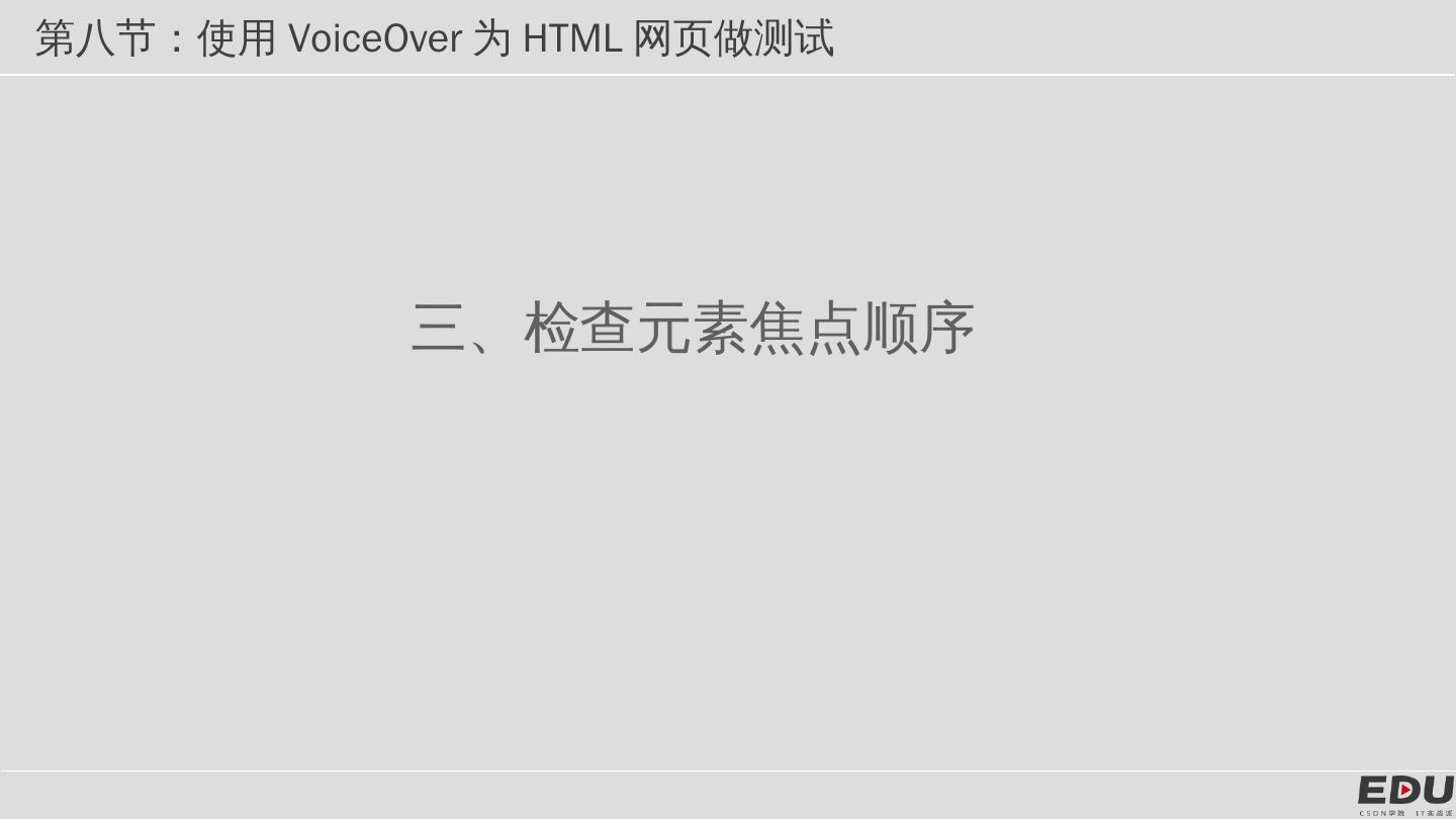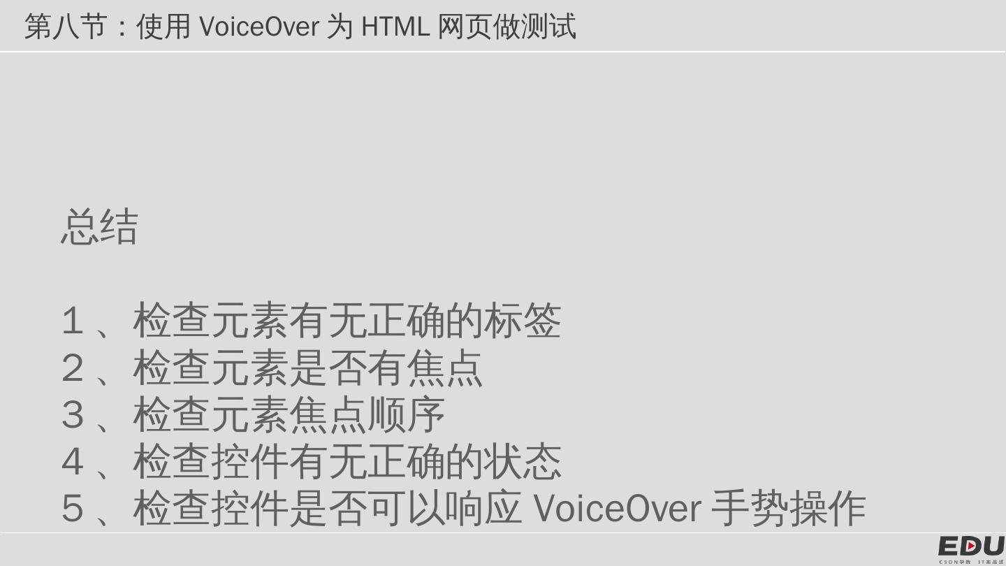 第七节:使用VoiceOver为APP做无障碍测试. 第八节:使用VoiceOver为HTML网页做测试。 第九节:简单谈谈个人对朗读文案的设置. 第八节:使用VoiceOver为HTML ...