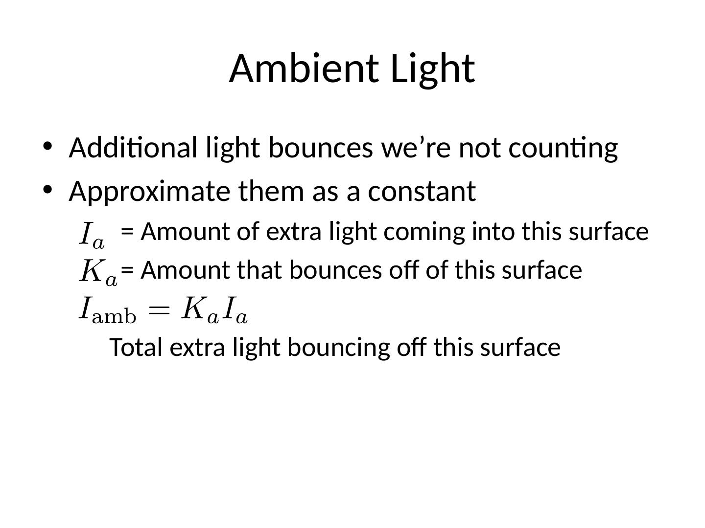 20 .Ambient Light Additional light bounces we’re not counting Approximate them as a constant = Amount of extra light coming into this surface = Amount that bounces off of this surface Total extra light bouncing off this surface