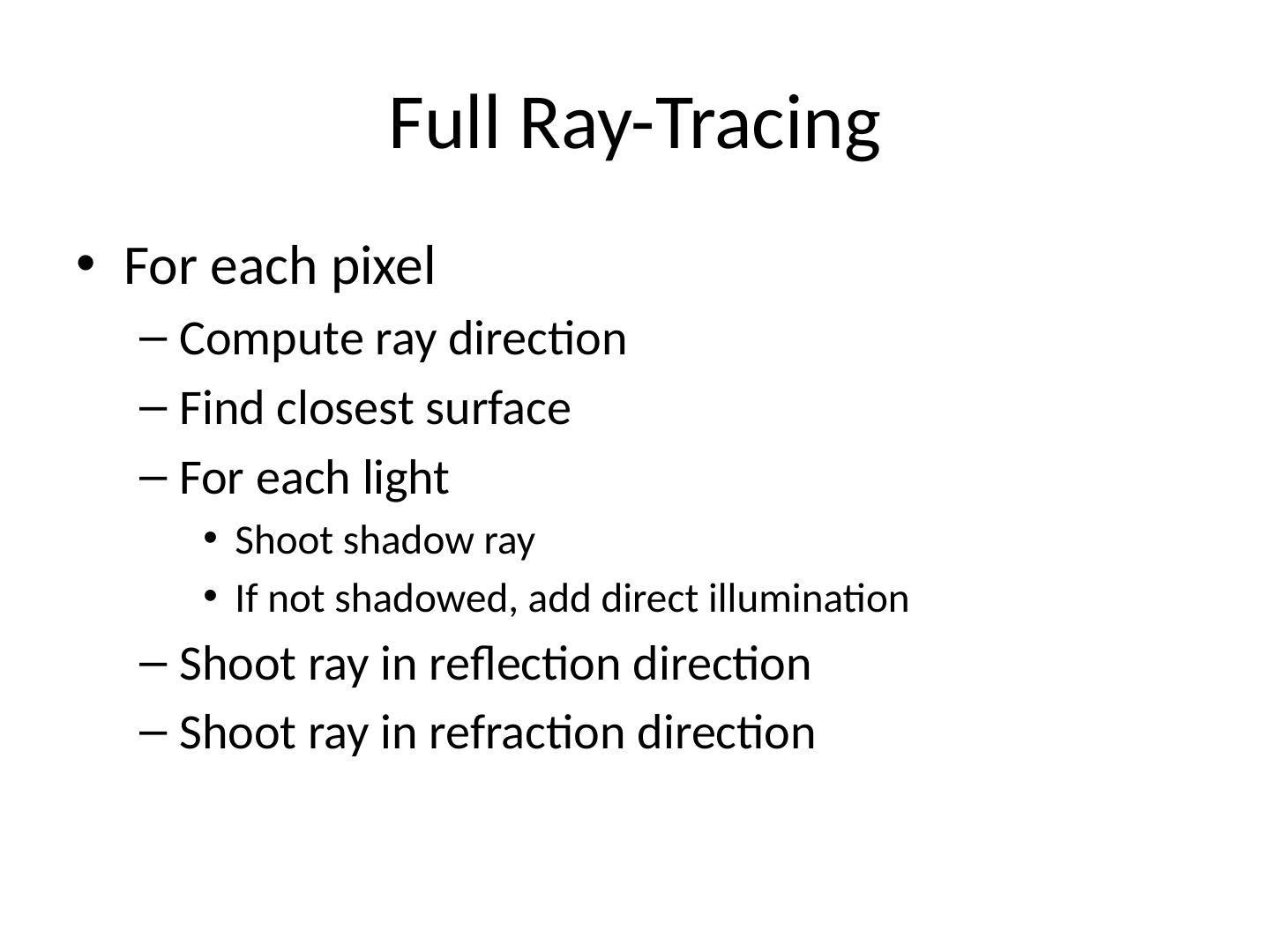 27 .Ray Traced Reflection Avoid looping forever Stop after n bounces Stop when contribution to pixel gets too small