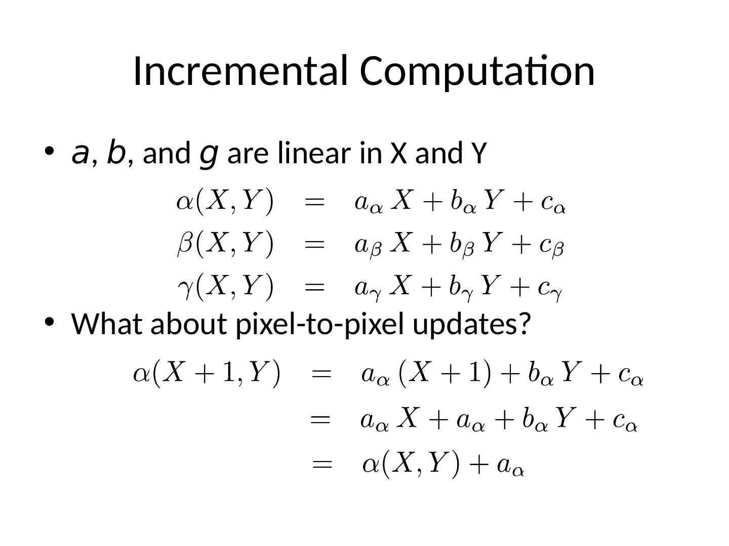 14 .Incremental Computation a , b , and g are linear in X and Y What about pixel-to-pixel updates?