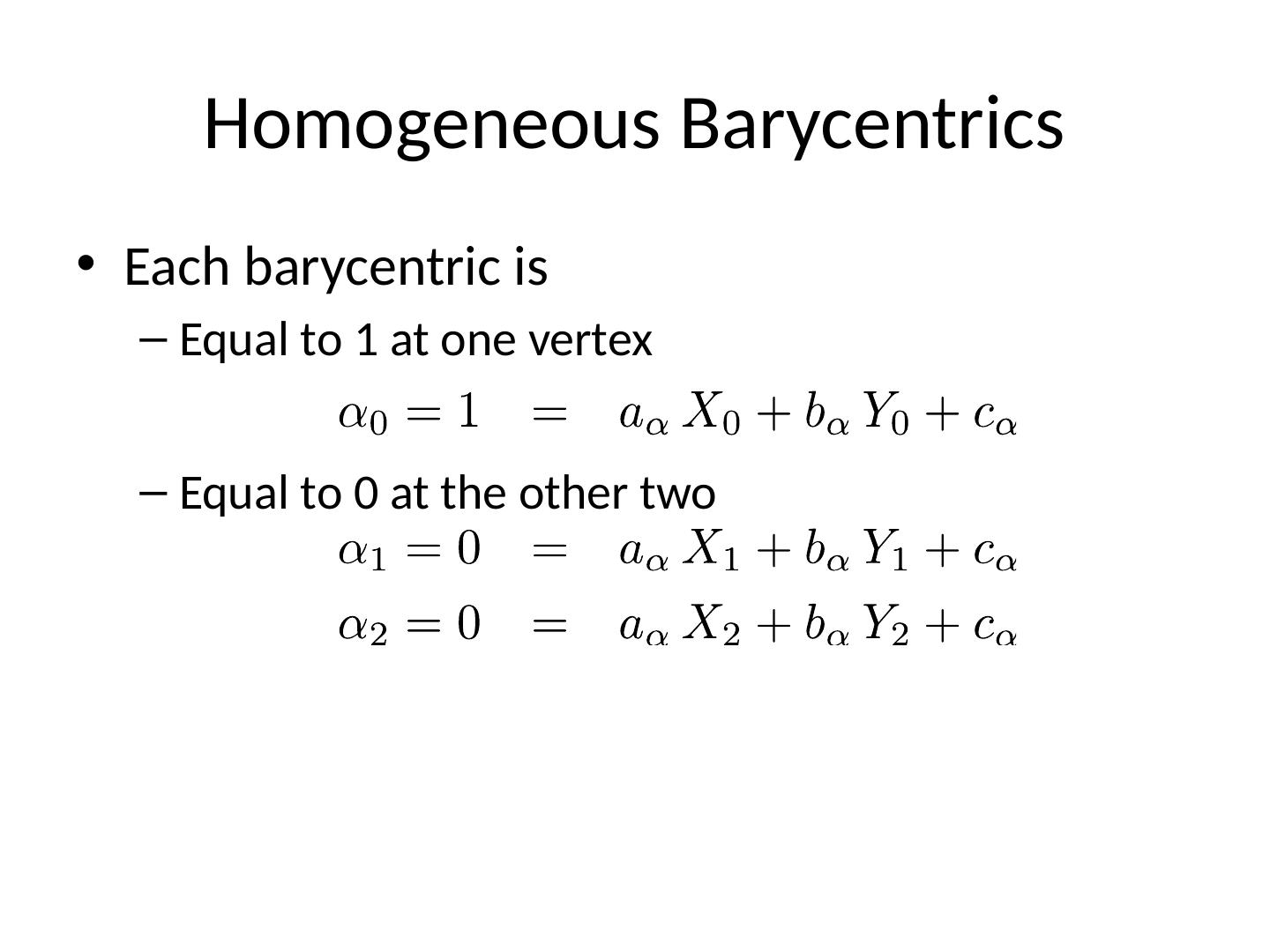 21 .Changes to Rasterization NONE! Coefficients computed with homogeneous coords But they’re the same coefficients!