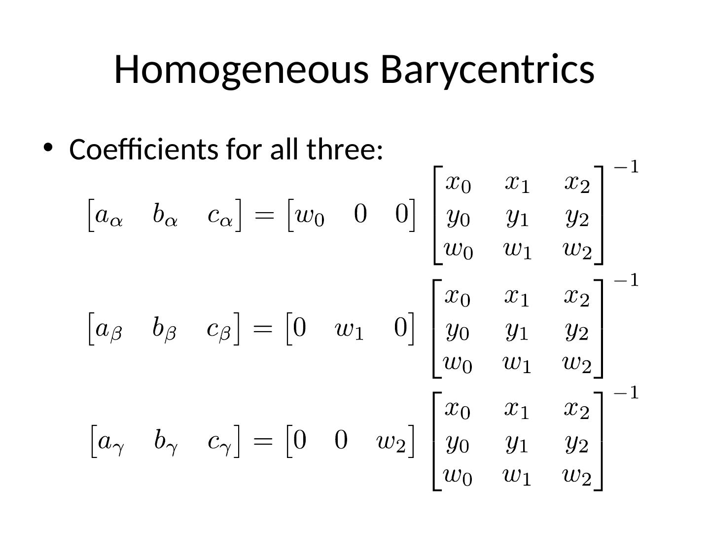 17 .Homogeneous Barycentrics Write formula for barycentric coordinate in homogeneous form
