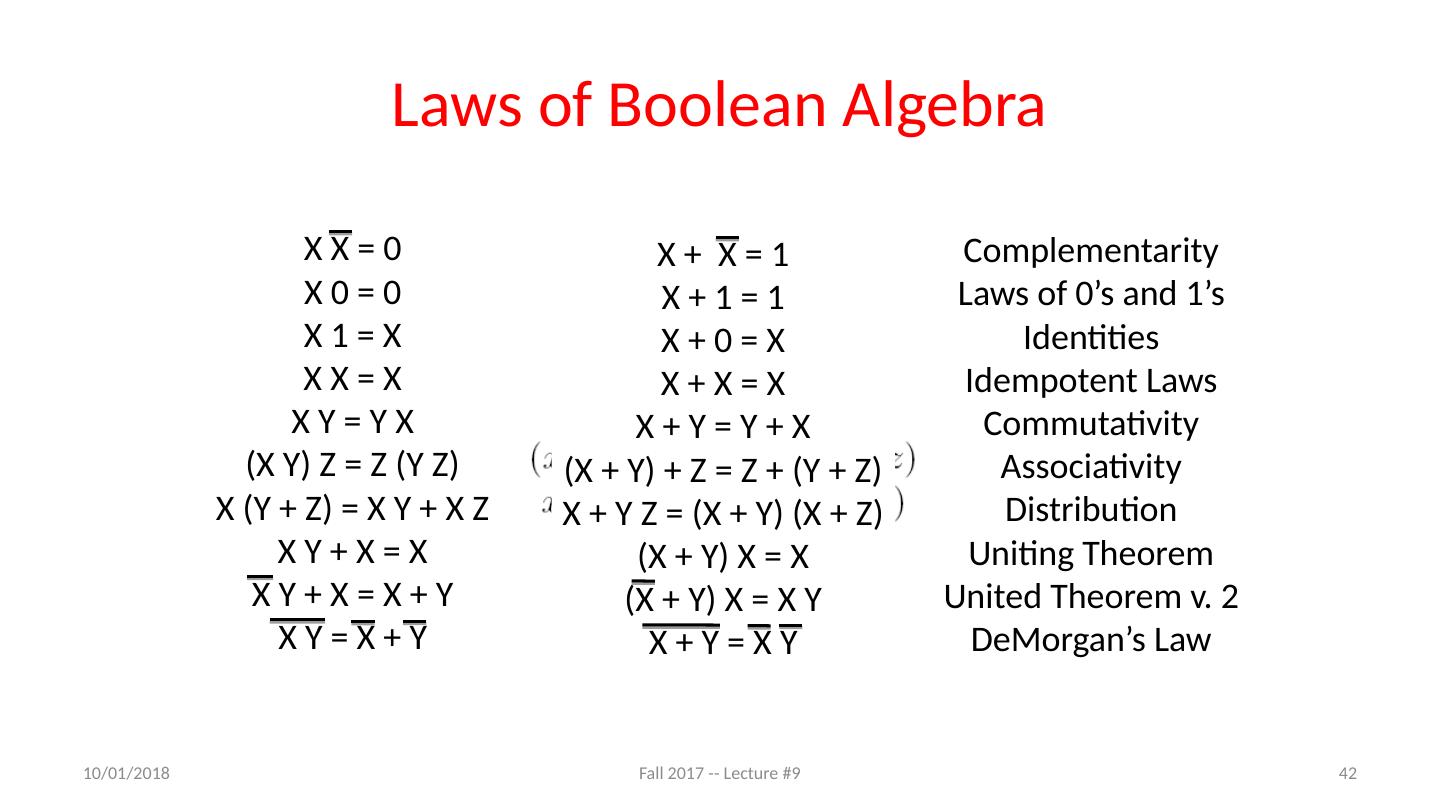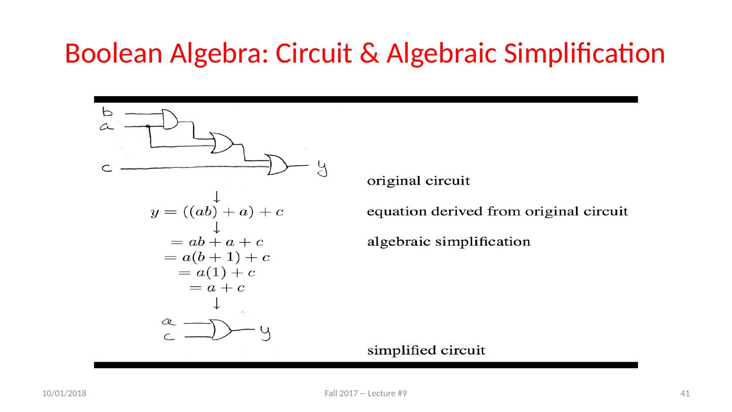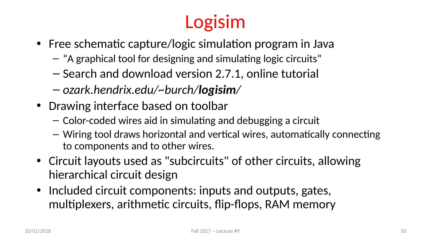 19 .Agenda Switching Networks, Transistors Gates and Truth Tables for Circuits Boolean Algebra Logisim And in Conclusion, … 9/20/17 19 Fall 2017 -- Lecture #9