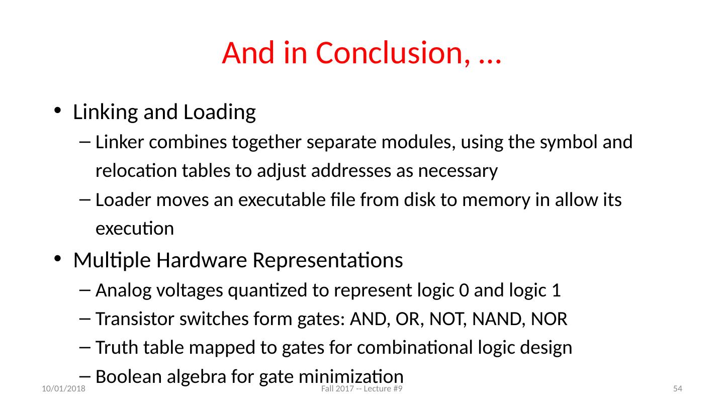 20 .Agenda Switching Networks, Transistors Gates and Truth Tables for Circuits Boolean Algebra Logisim And in Conclusion, … 9/20/17 20 Fall 2017 -- Lecture #9