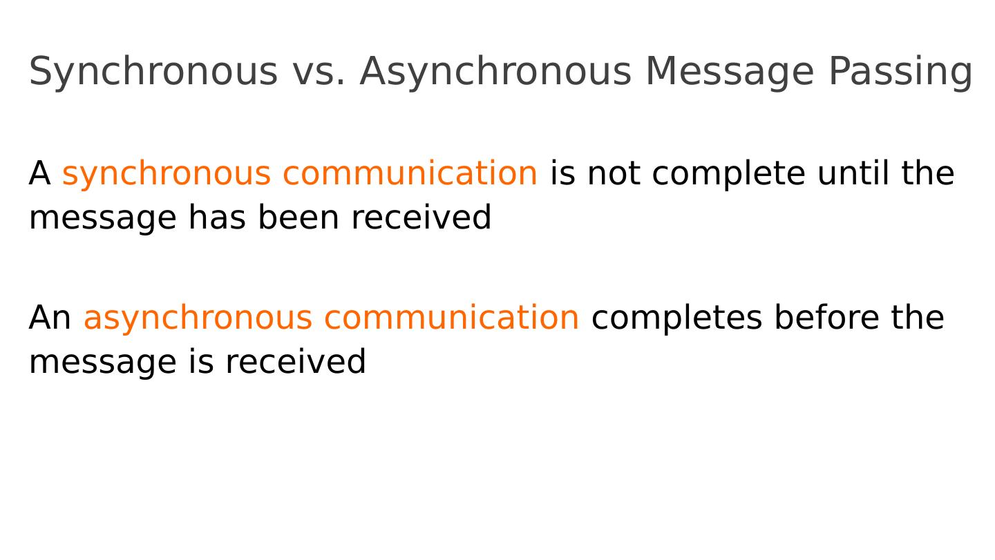 7 .Synchronous vs. Asynchronous Message Passing A synchronous communication is not complete until the message has been received An asynchronous communication completes before the message is received