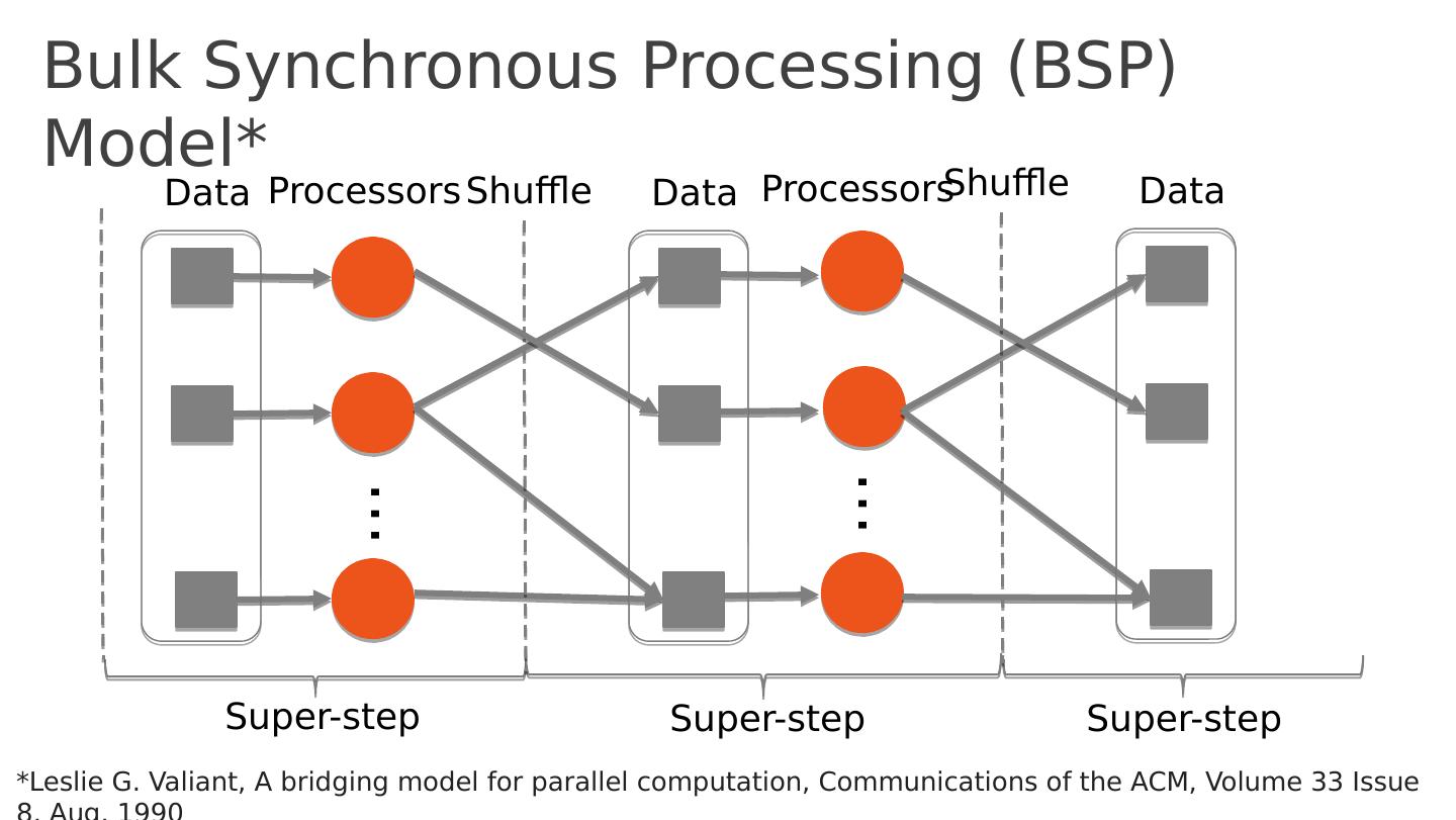 23 .Bulk Synchronous Processing (BSP) Model* S uper-step Processors … Super-step Processors … Data Data Shuffle Data Super-step Shuffle *Leslie G. Valiant, A bridging model for parallel computation, Communications of the ACM, Volume 33 Issue 8, Aug. 1990