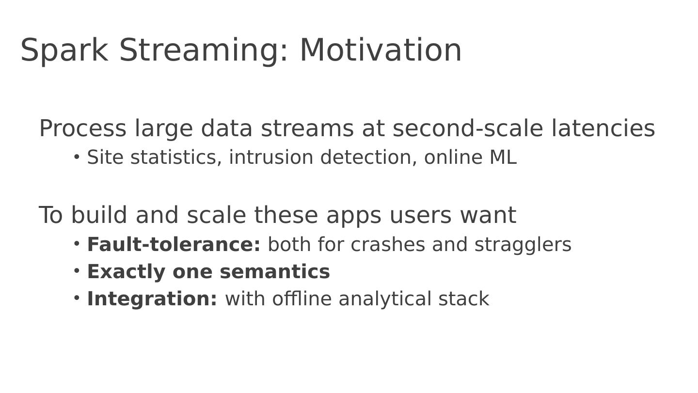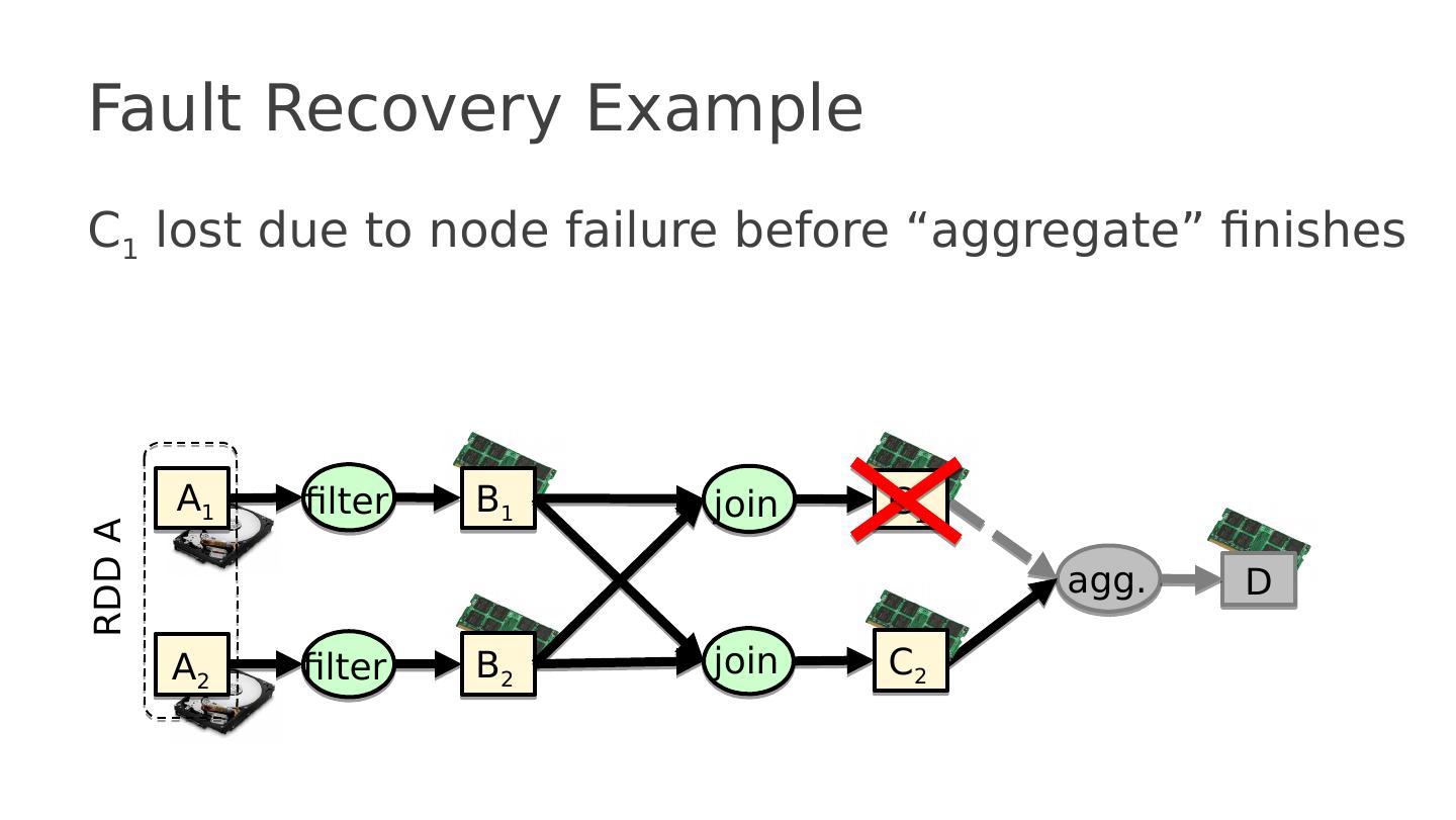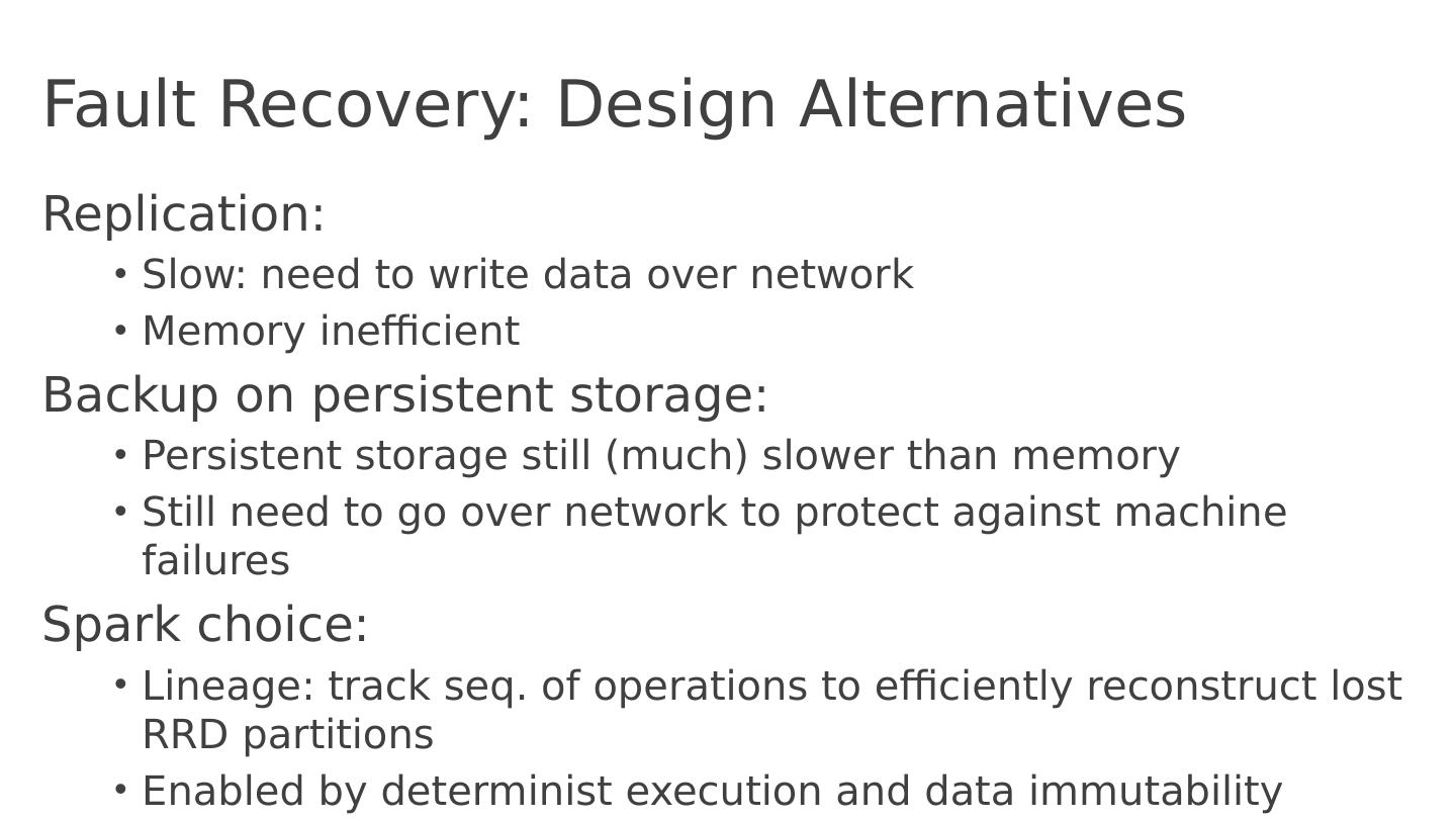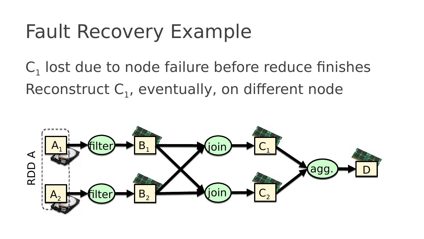 27 .Spark, as a BSP System s tage (super-step) t asks (processors) … s tage (super-step) t asks (processors) … RDD RDD Shuffle a ll tasks in same stage impl . same operations, single-threaded, deterministic execution Immutable dataset Barrier implicit by data dependency