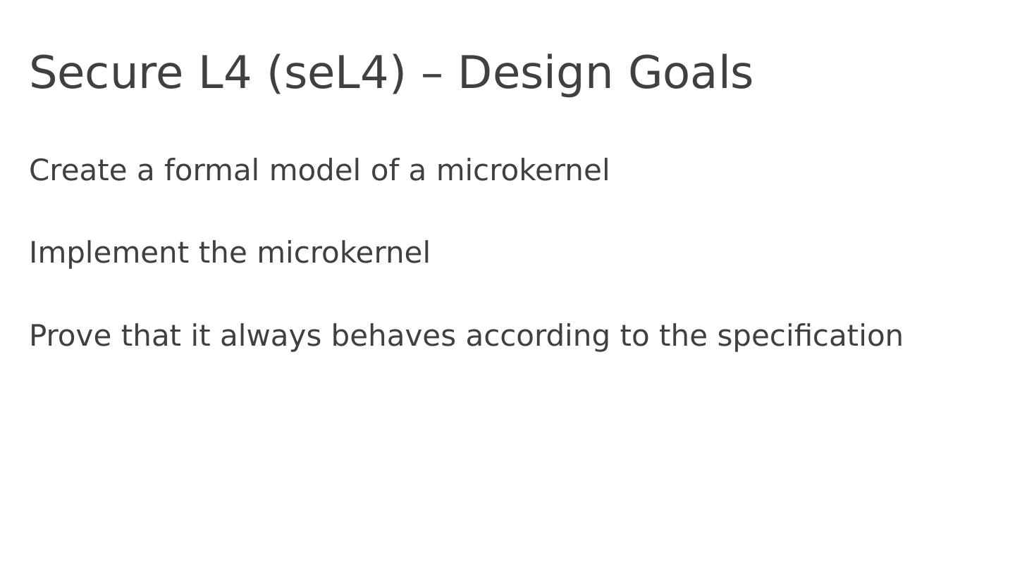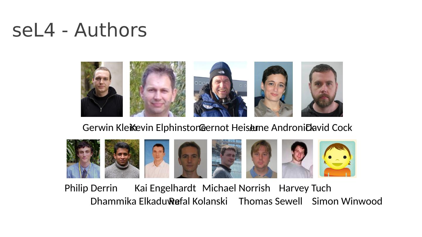 2 .Papers “Microkernel Operating System Architecure and Mach”, D . Black, D. Golub , D. Julin , R. Rashid, R. Draves , R. Dean, A. Forin , J. Barrera, H. Tokuda , G. Malan, and D. Bohman ( https://amplab.github.io/cs262a-fall2016/notes/ Mach.pdf ) “seL4 : Formal Verification of an OS Kernel ”, Gerwin Klein , Kevin Elphinstone, Gernot Heiser , June Andronick , David Cock, Philip Derrin , Dhammika Elkaduwe , Kai Engelhardt , Rafal Kolanski , Michael Norrish, Thomas Sewell, Harvey Tuch , Simon Winwood , ( https:// www.sigops.org/sosp/sosp09/papers/klein-sosp09.pdf )