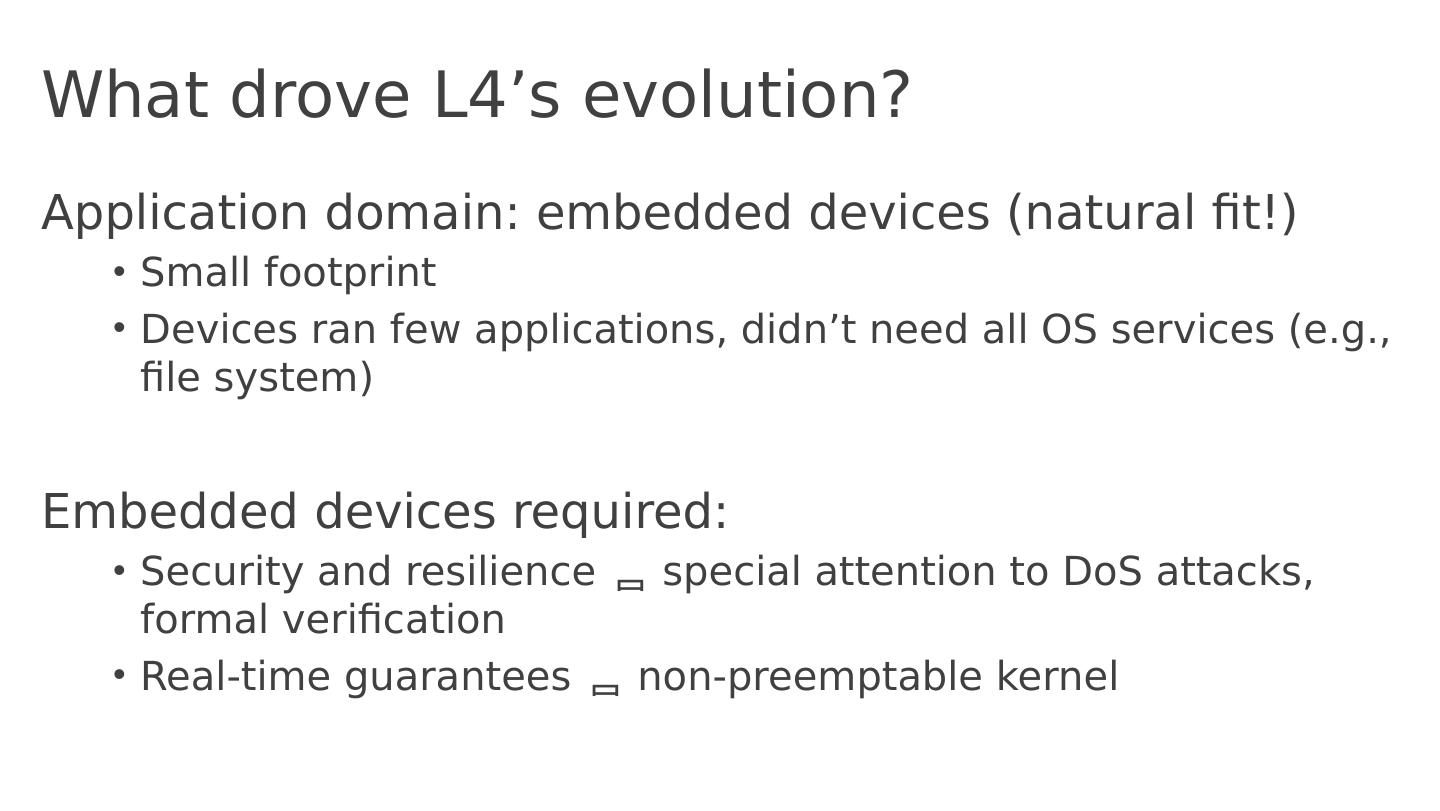 29 .L4 family tree “The Secure Enclave runs an Apple-customized version of the L4 microkernel family ” - iOS Security, Apple Inc , 2015 ( www.apple.com/business/docs/ iOS_Security_Guide.pdf )