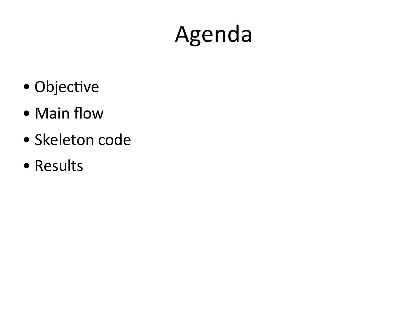 2 . Agenda • Objec1ve • Main flow • Skeleton code • Results