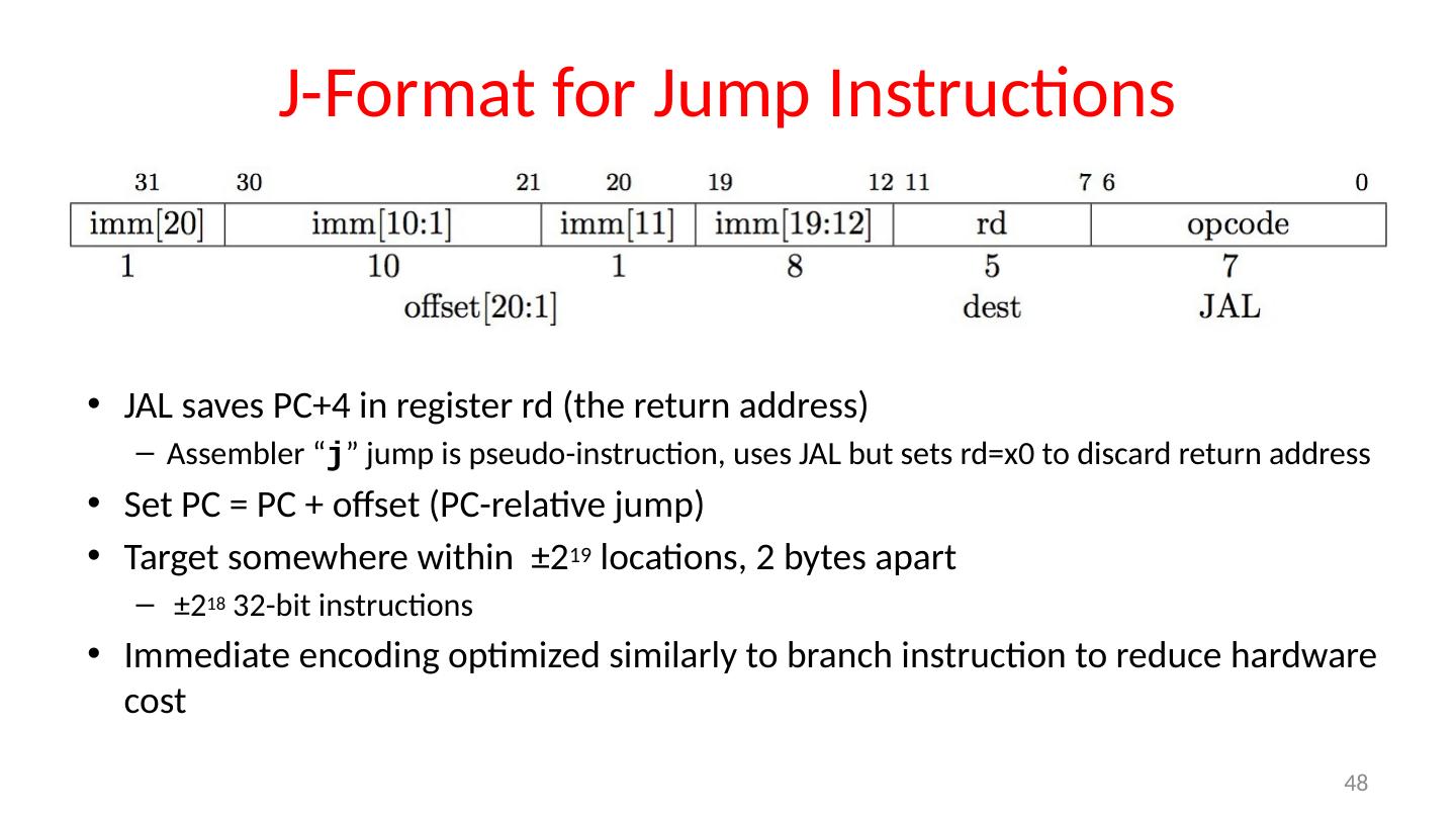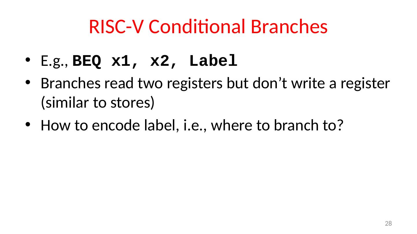 28 .RISC-V Conditional Branches E.g., BEQ x1, x2, L abel Branches read two registers but don’t write a register ( similar to stores) How to encode label, i.e., where to branch to? 28