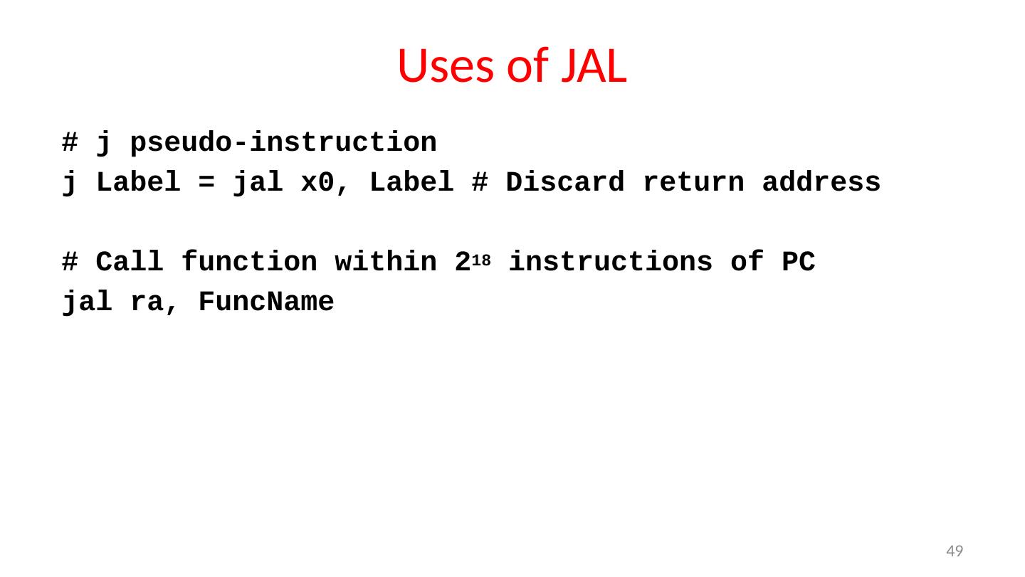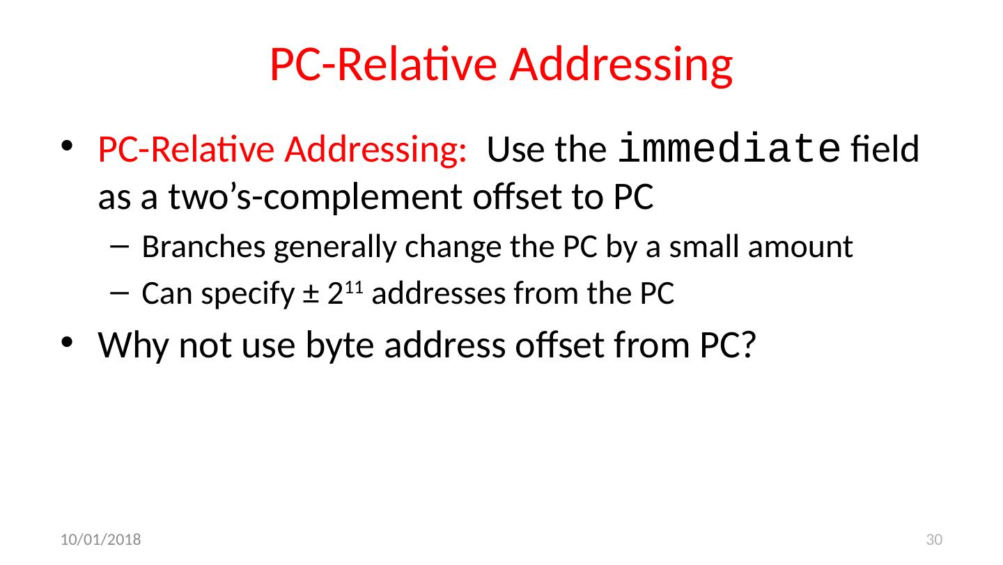 29 .Branching Instruction Usage Branches typically used for loops ( if-else , while , for ) Loops are generally small (< 50 instructions) Function calls and unconditional jumps handled with jump instructions (J-Format) Recall: Instructions stored in a localized area of memory (Code/Text) Largest branch distance limited by size of code Address of current instruction stored in the program counter (PC) 9/14/17 29