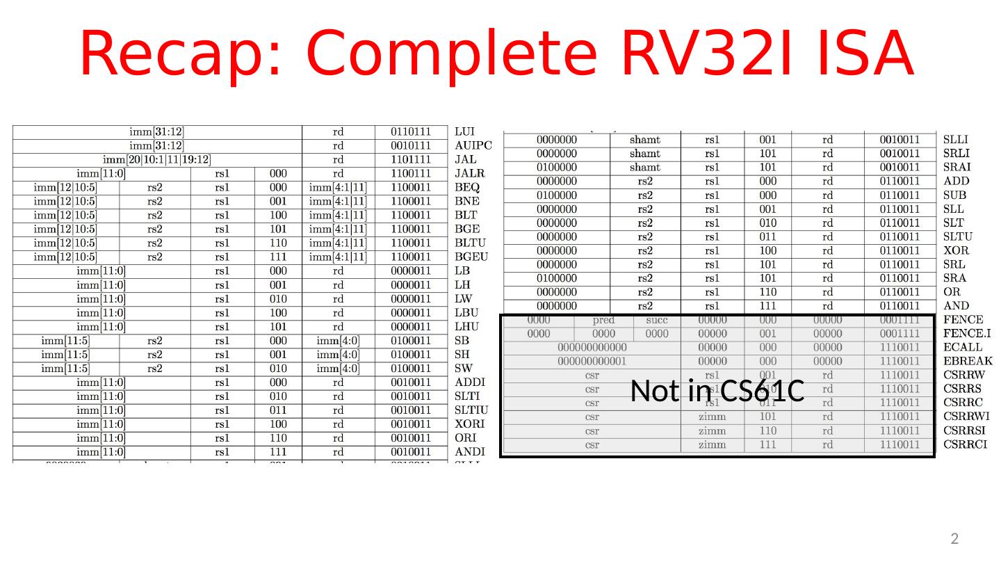 2 .Recap: Complete RV32I ISA 2 Not in CS61C